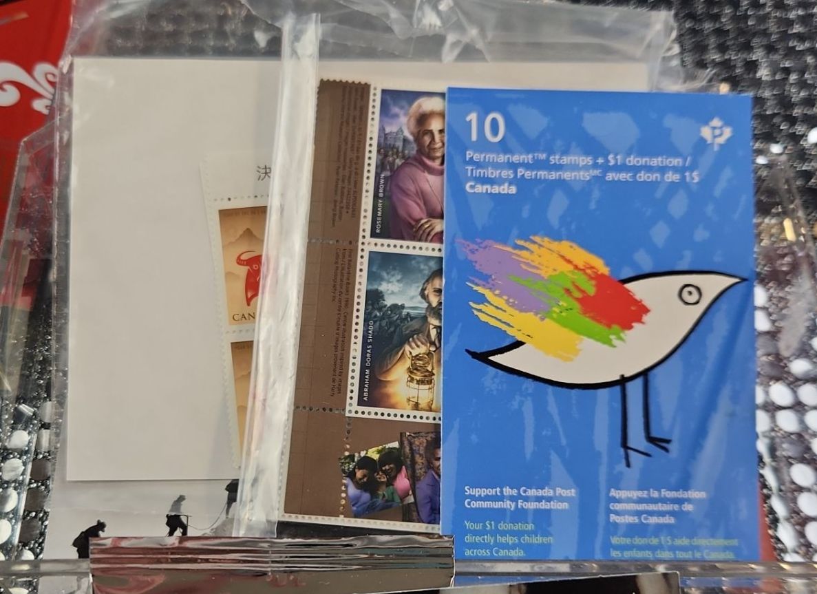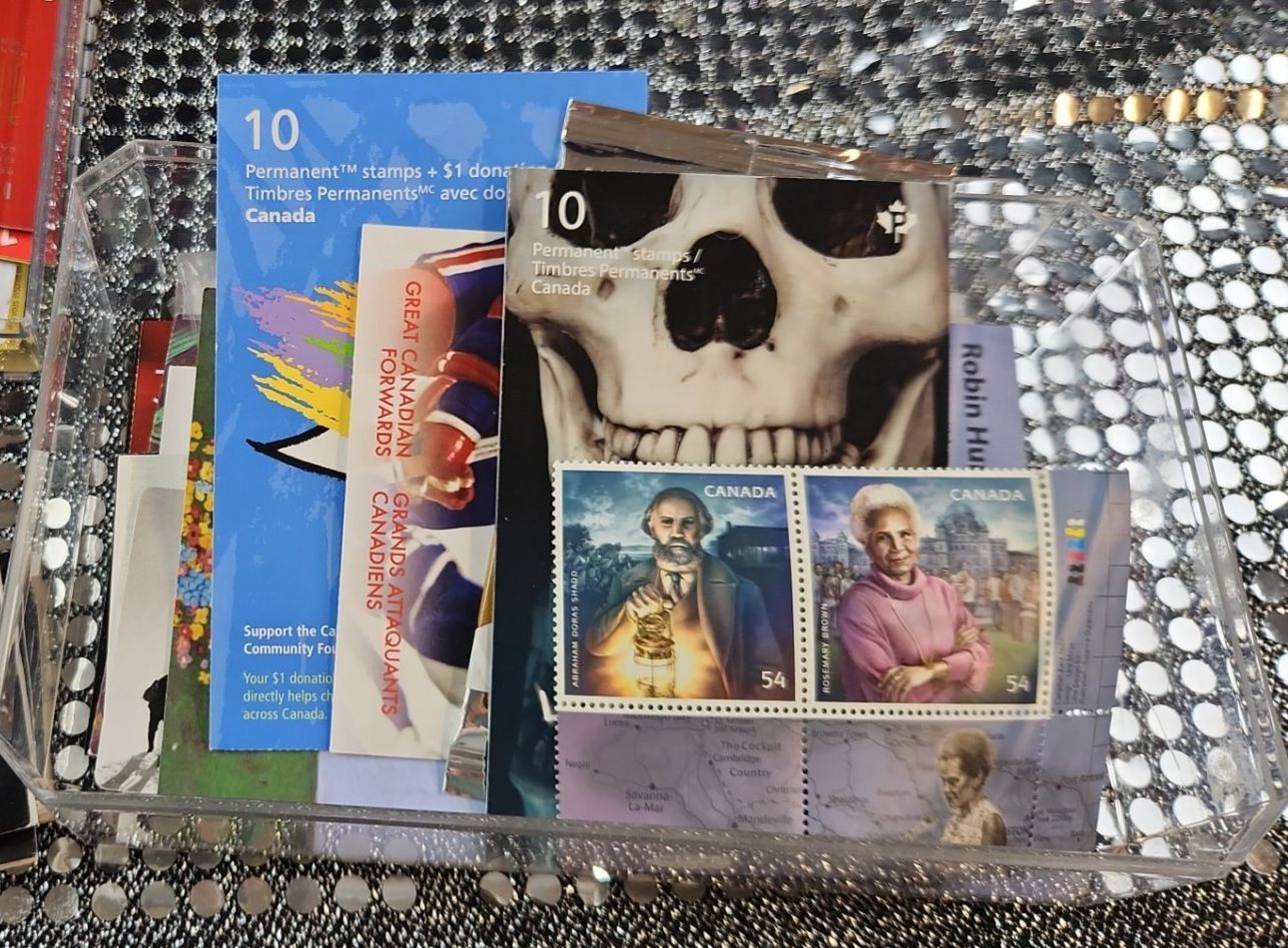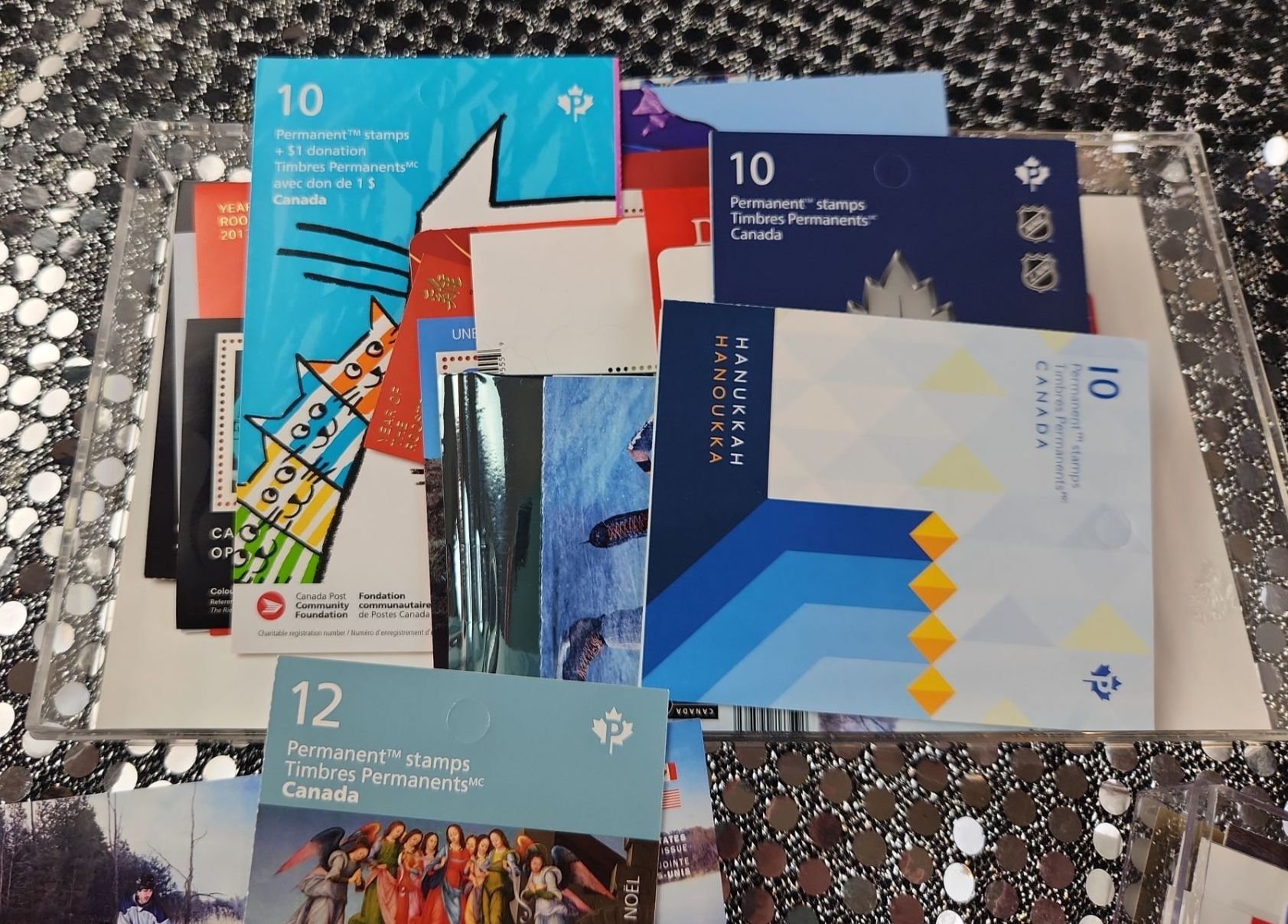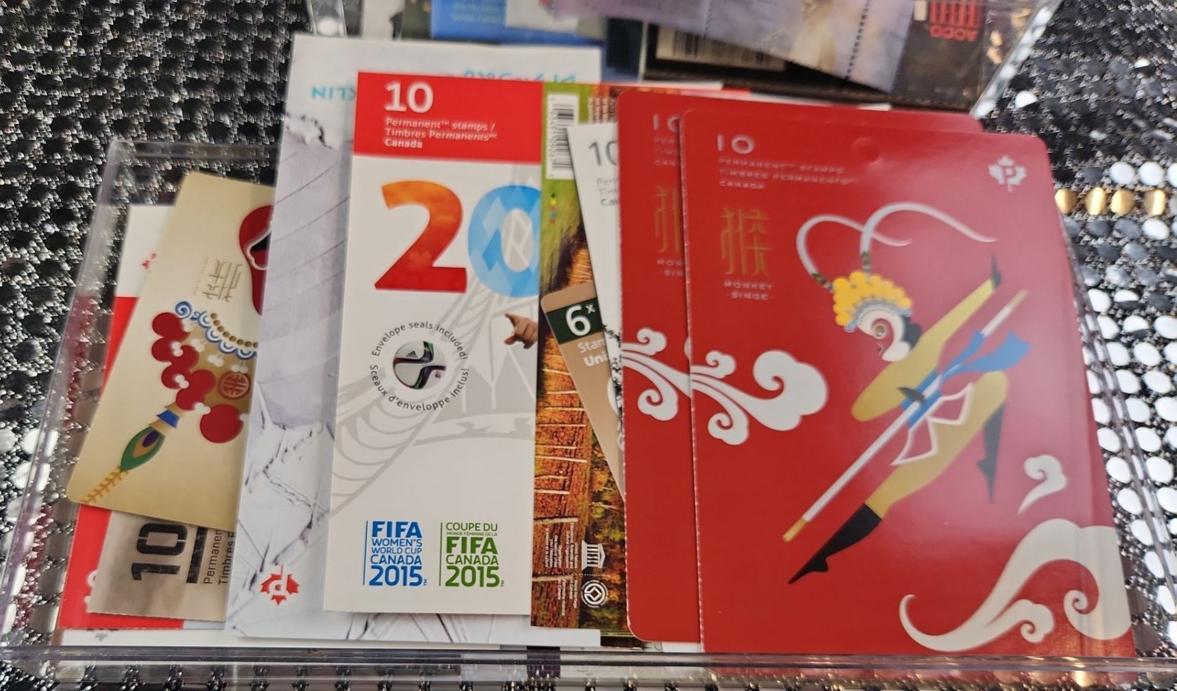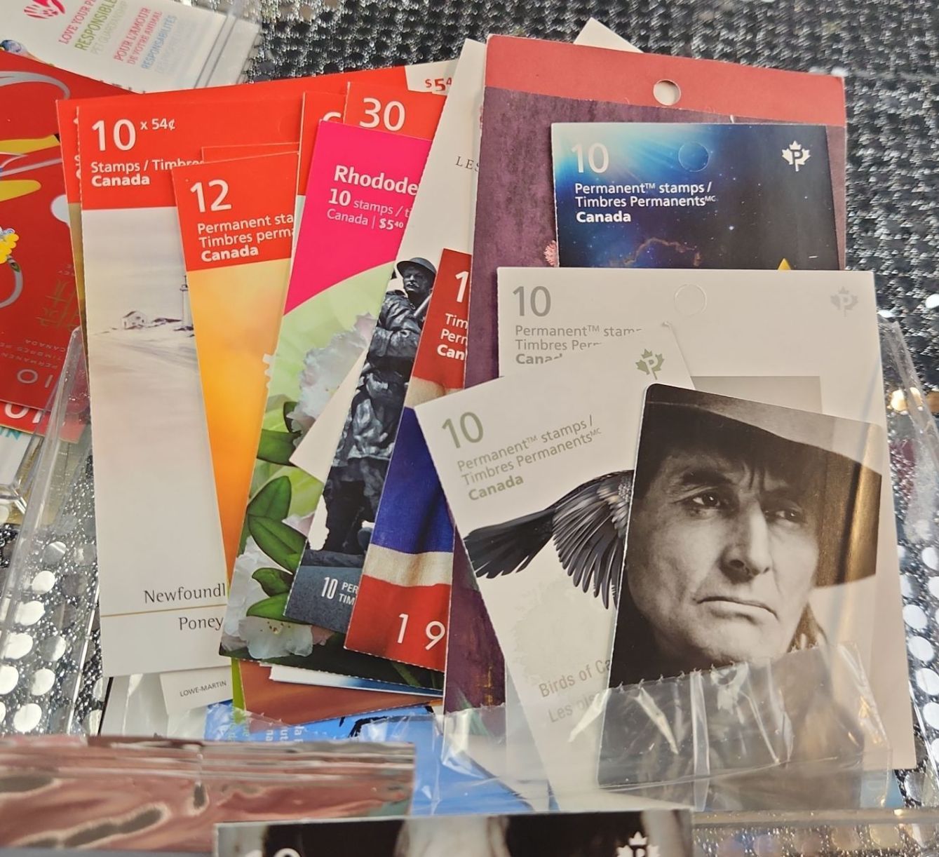 This collection includes various "Permanent" stamps. Many stamps feature Canadian themes, including UNESCO World Heritage Sites, Canadian forwards, historical moments like women's suffrage and Star Trek. They are stored in transparent trays, and original booklets.