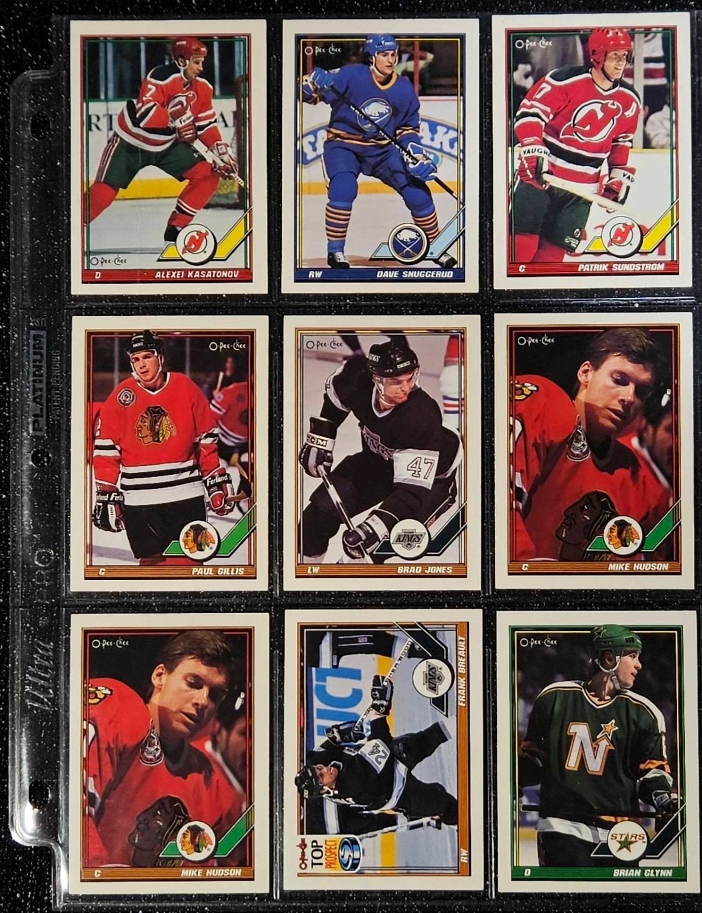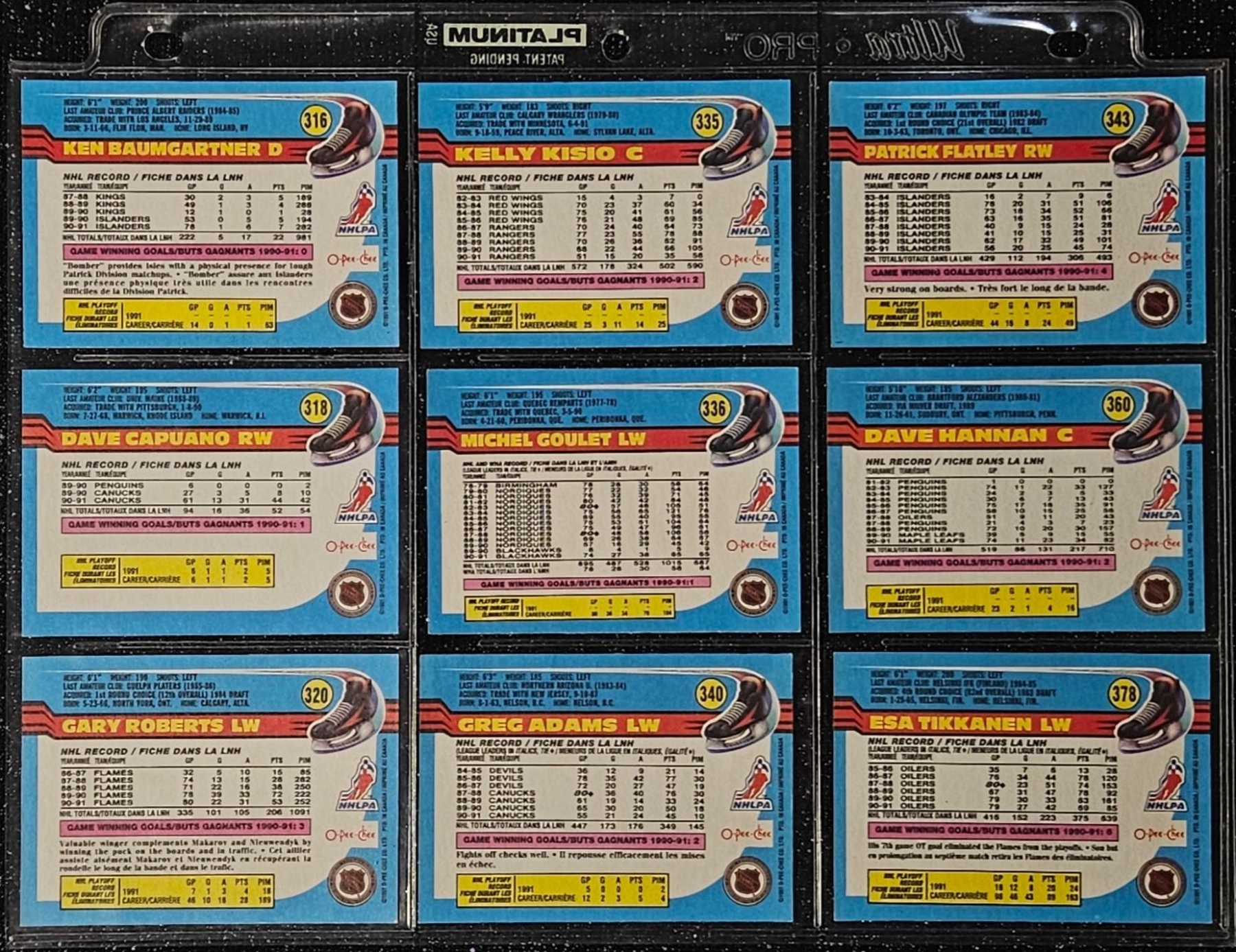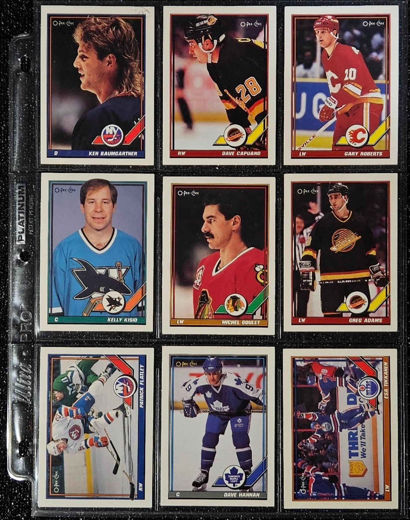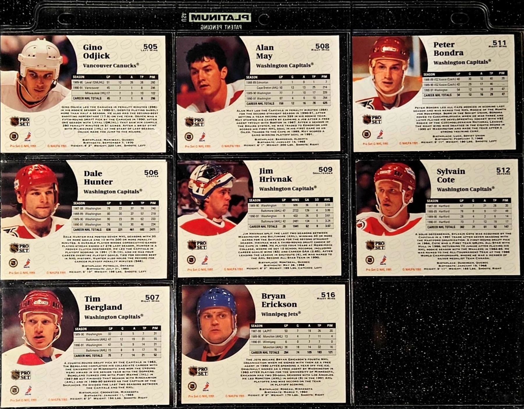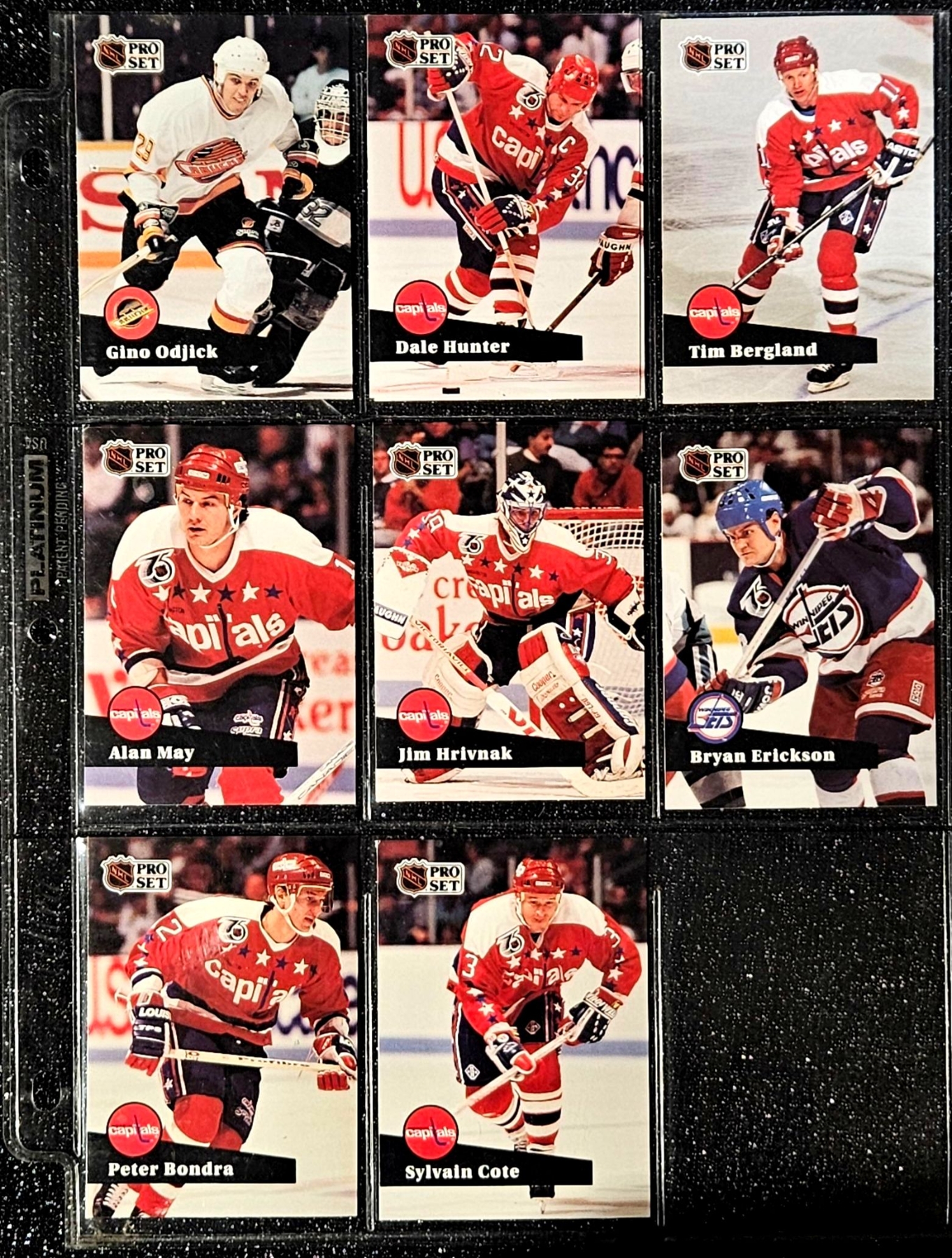 The Collection of Hockey Cards Display Several Notable Hockey Players, Including Gino Odjick, Dale Hunter, Peter Bondra, and Jim Hrivnak. In a Protective Plastic Binder Sheet (10 sheets in total)