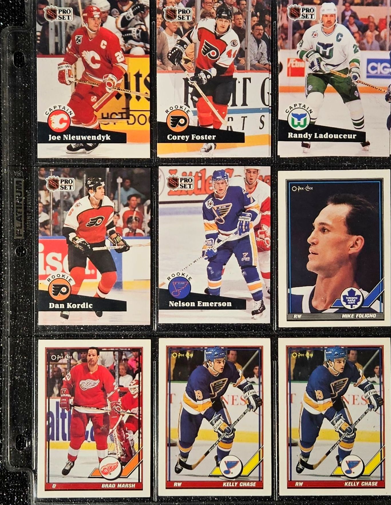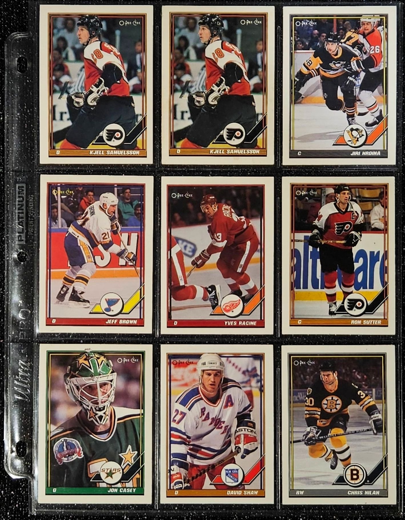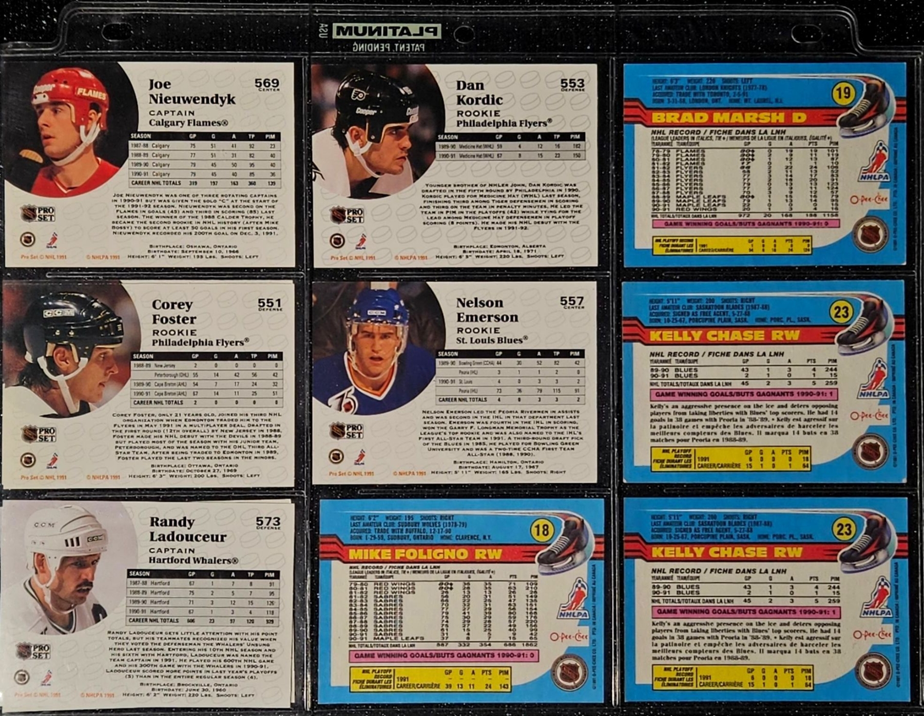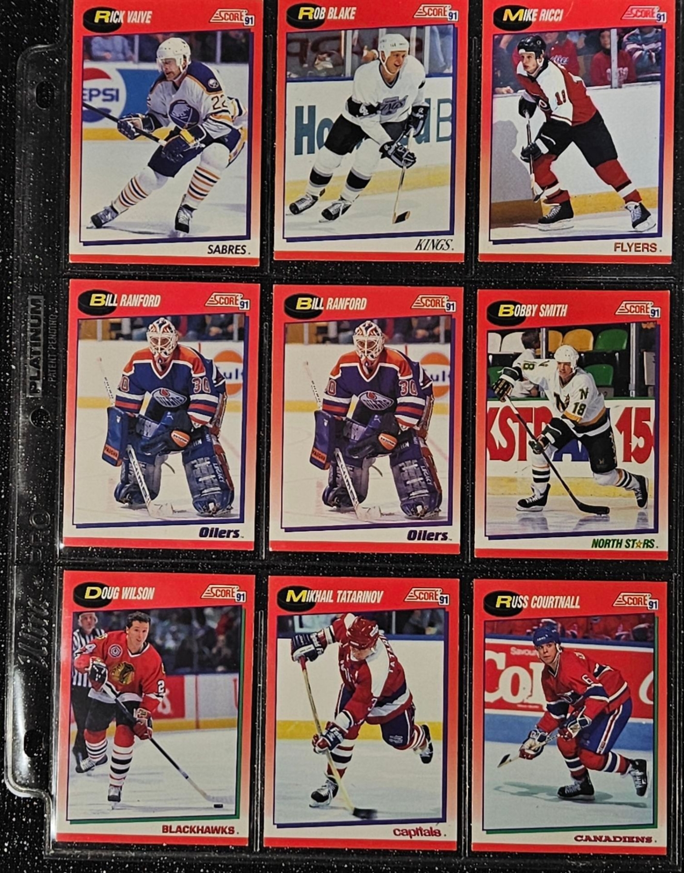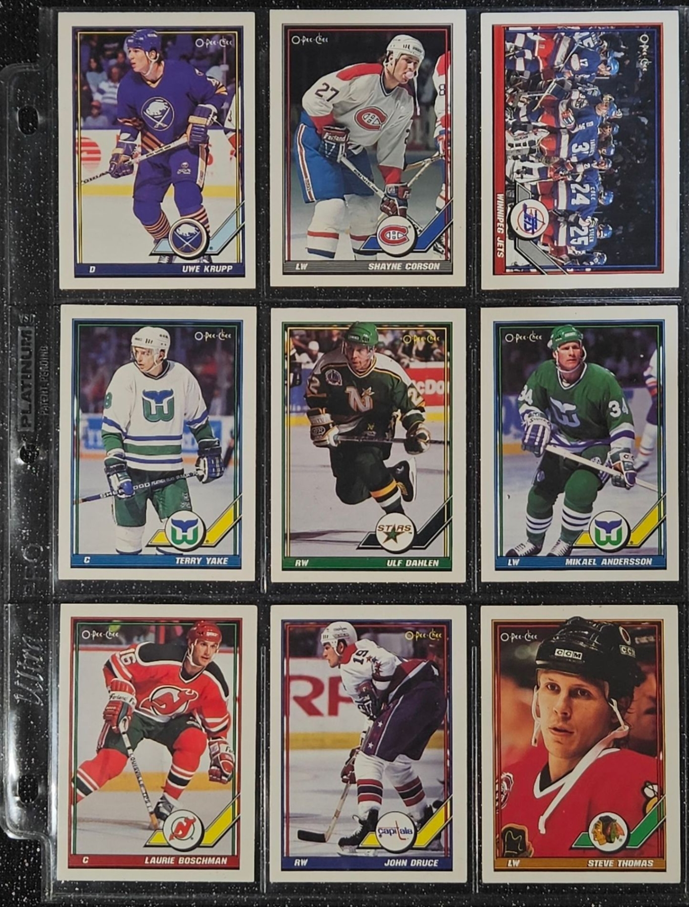 The Collection of Hockey Cards Display Several Notable Hockey Players, Including Gino Odjick, Dale Hunter, Peter Bondra, and Jim Hrivnak. In a Protective Plastic Binder Sheet (10 sheets in total)