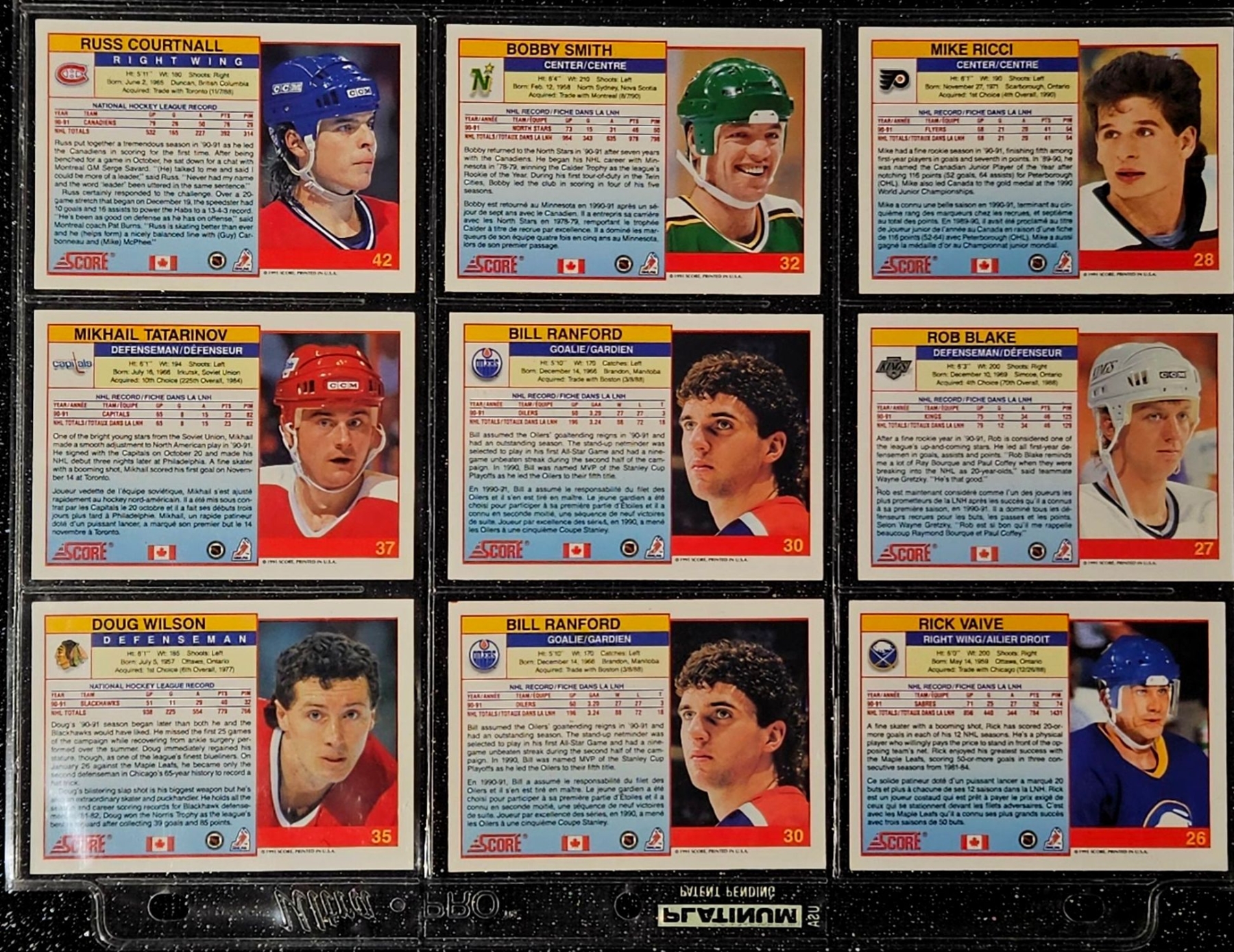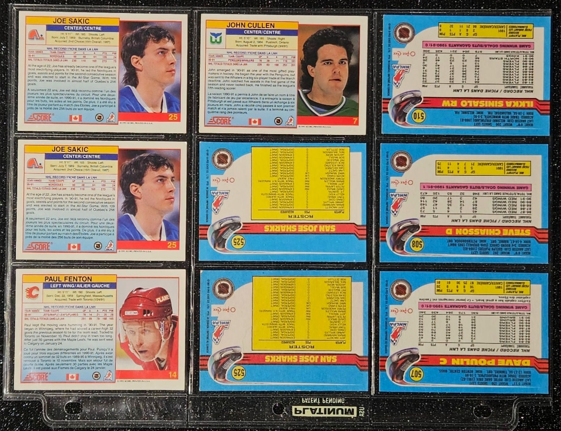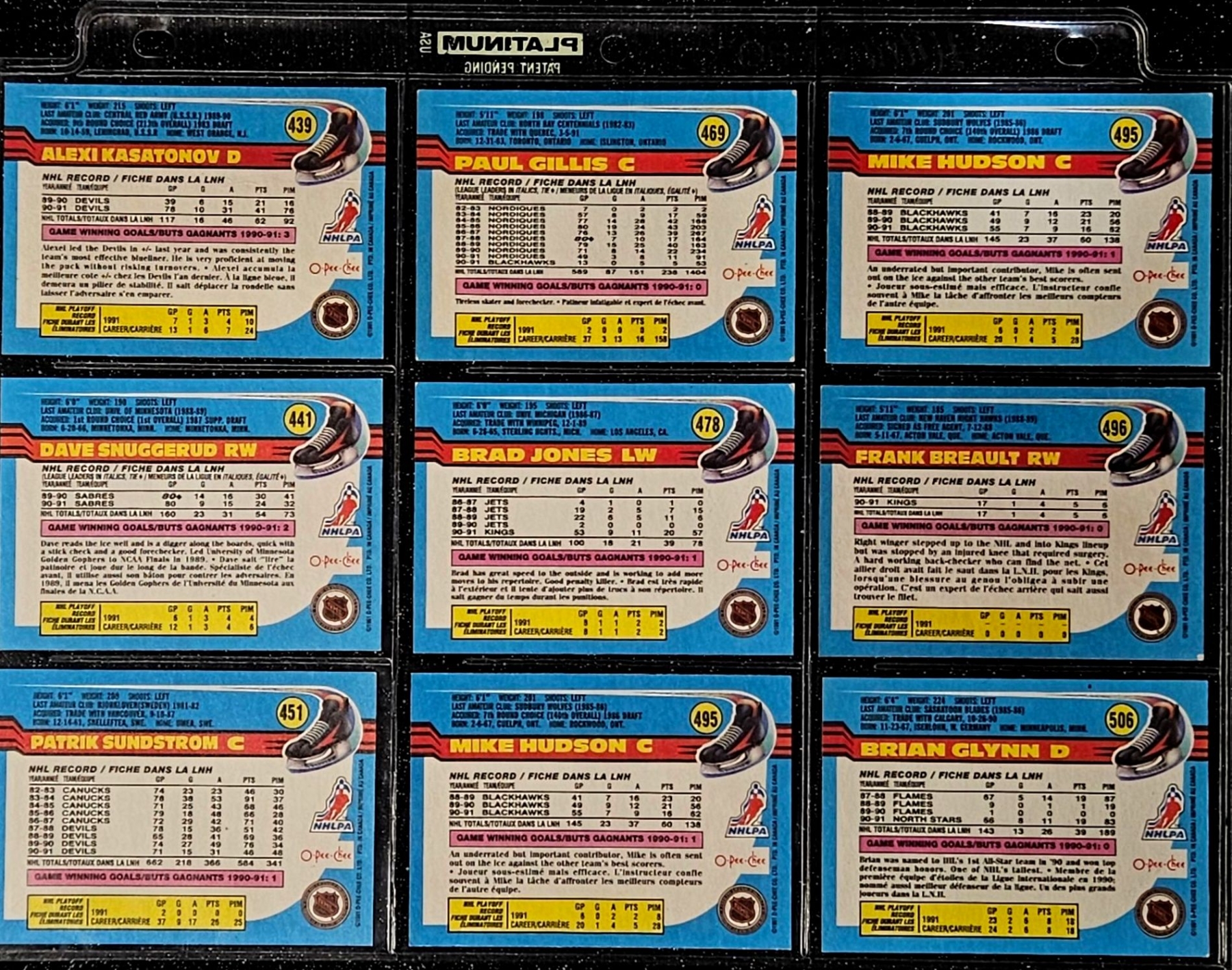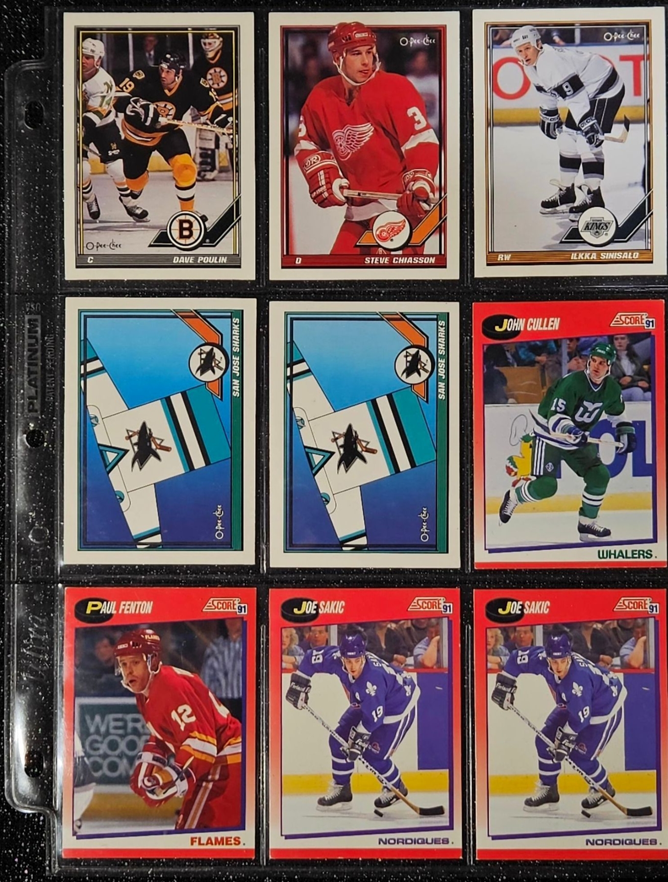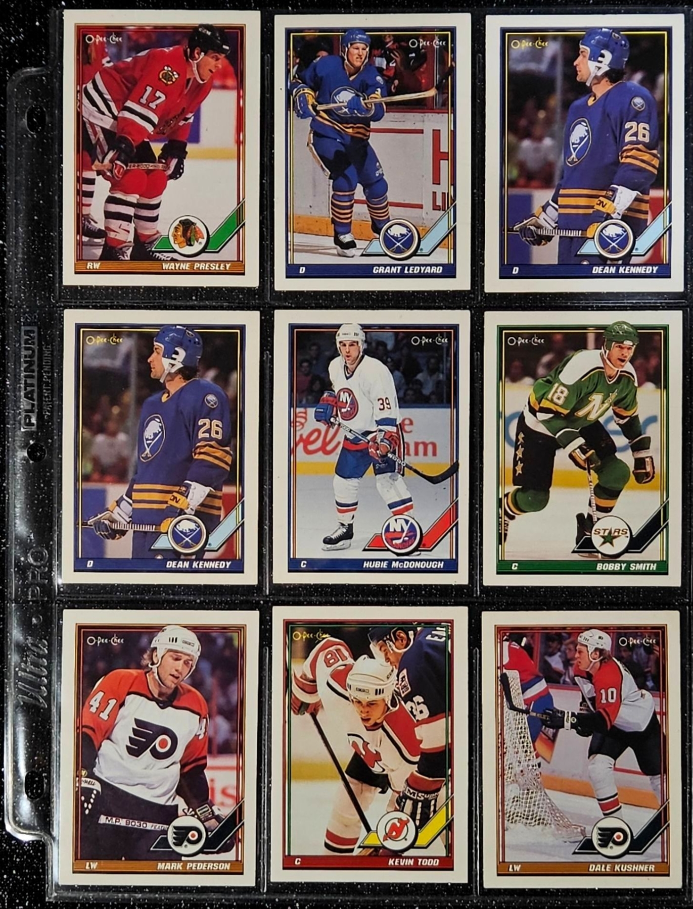 The Collection of Hockey Cards Display Several Notable Hockey Players, Including Gino Odjick, Dale Hunter, Peter Bondra, and Jim Hrivnak. In a Protective Plastic Binder Sheet (10 sheets in total)