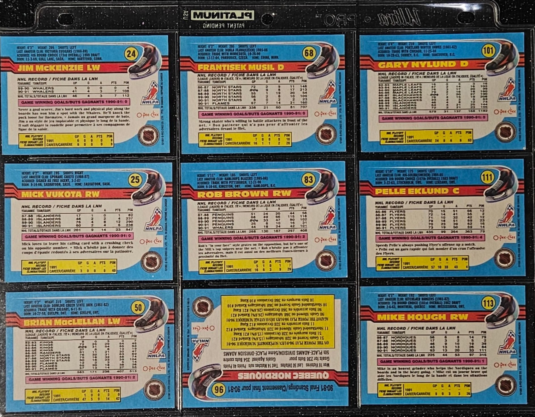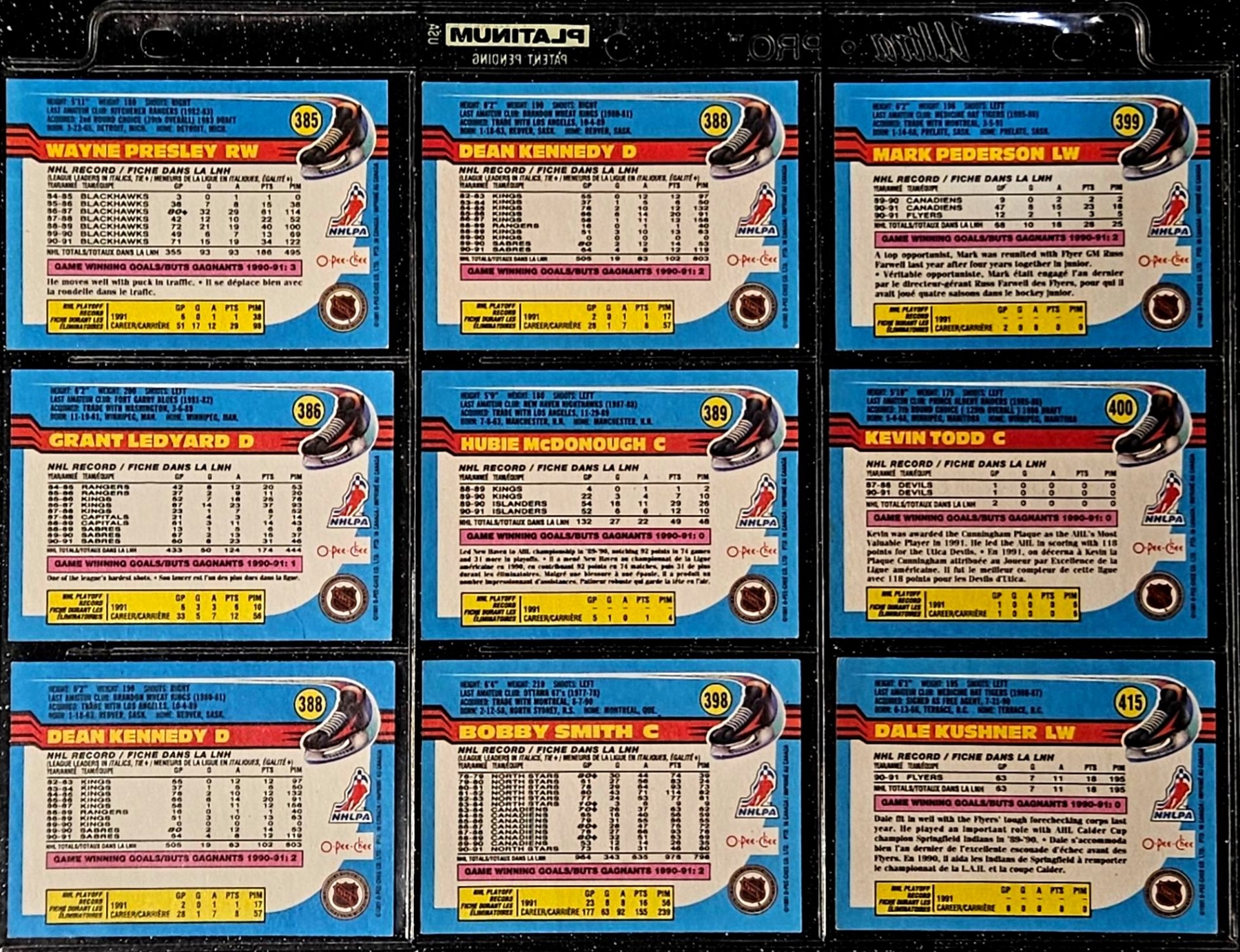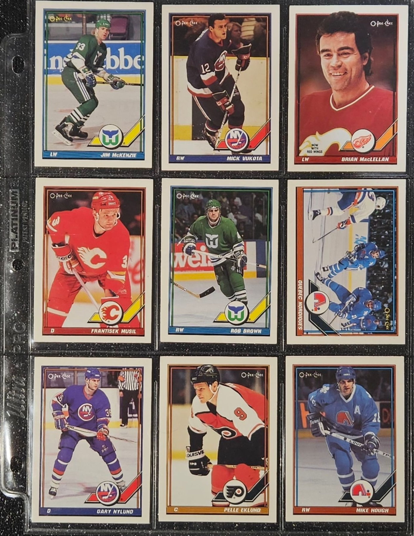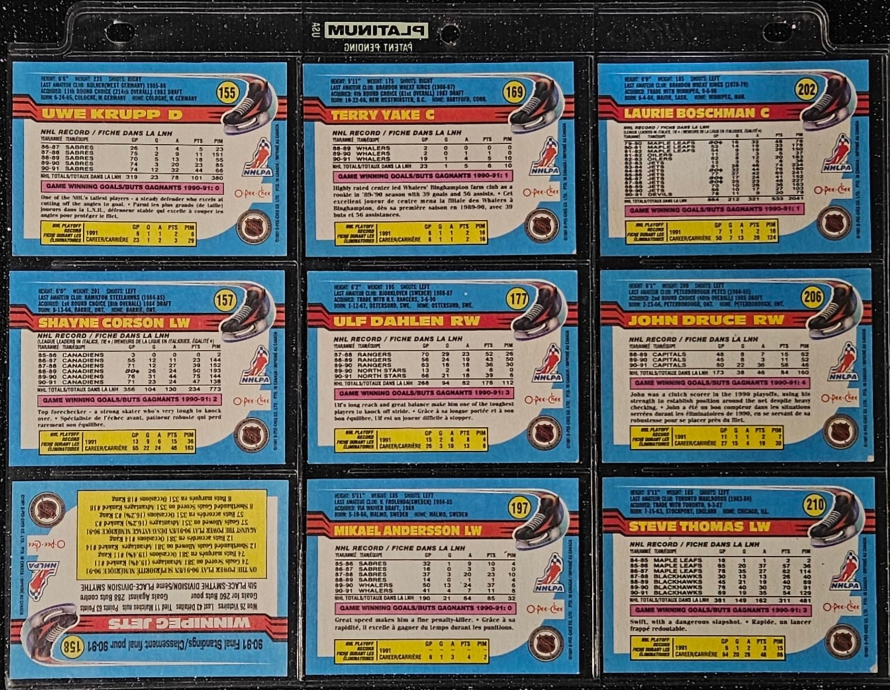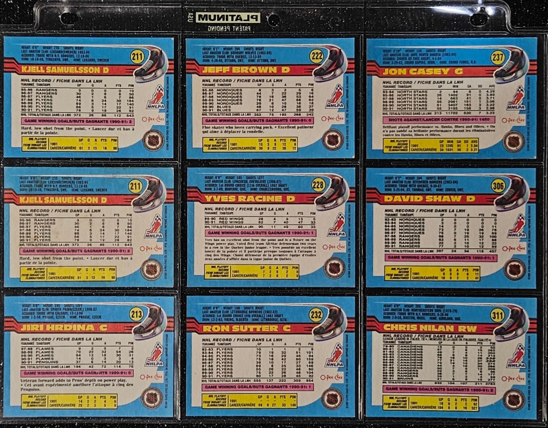 The Collection of Hockey Cards Display Several Notable Hockey Players, Including Gino Odjick, Dale Hunter, Peter Bondra, and Jim Hrivnak. In a Protective Plastic Binder Sheet (10 sheets in total)