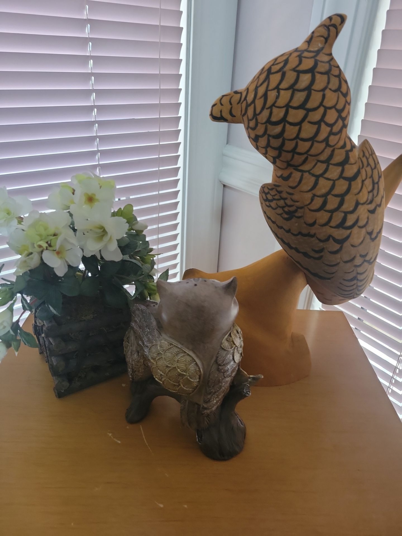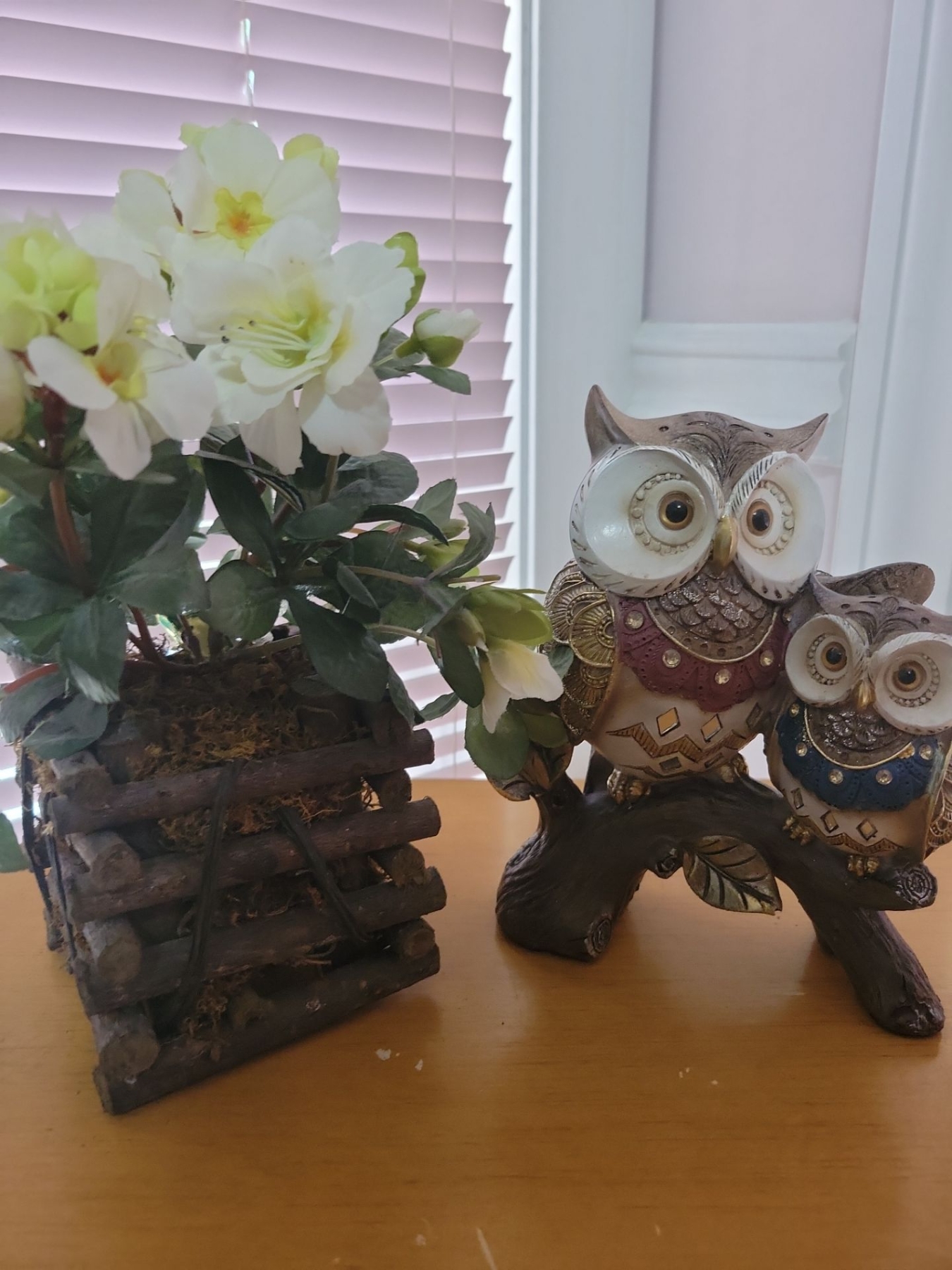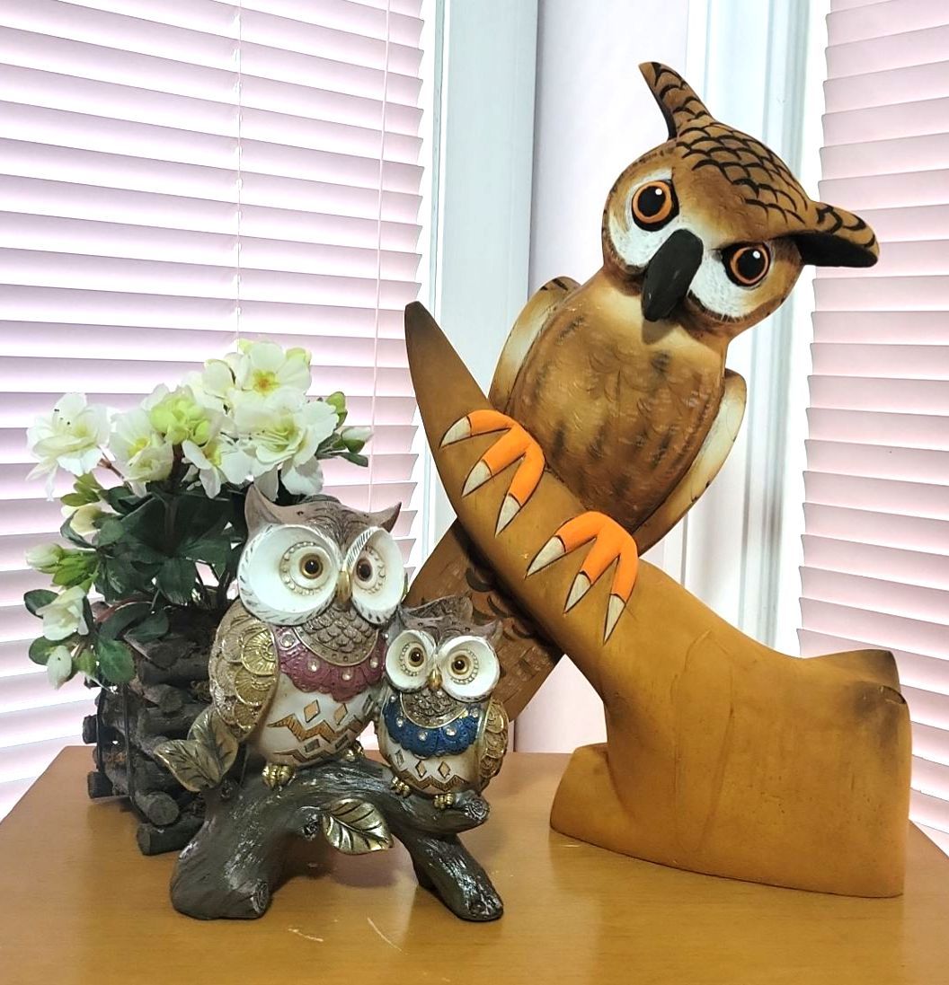 A Gang Of Perched Hooters 16T w/ Faux House Plant