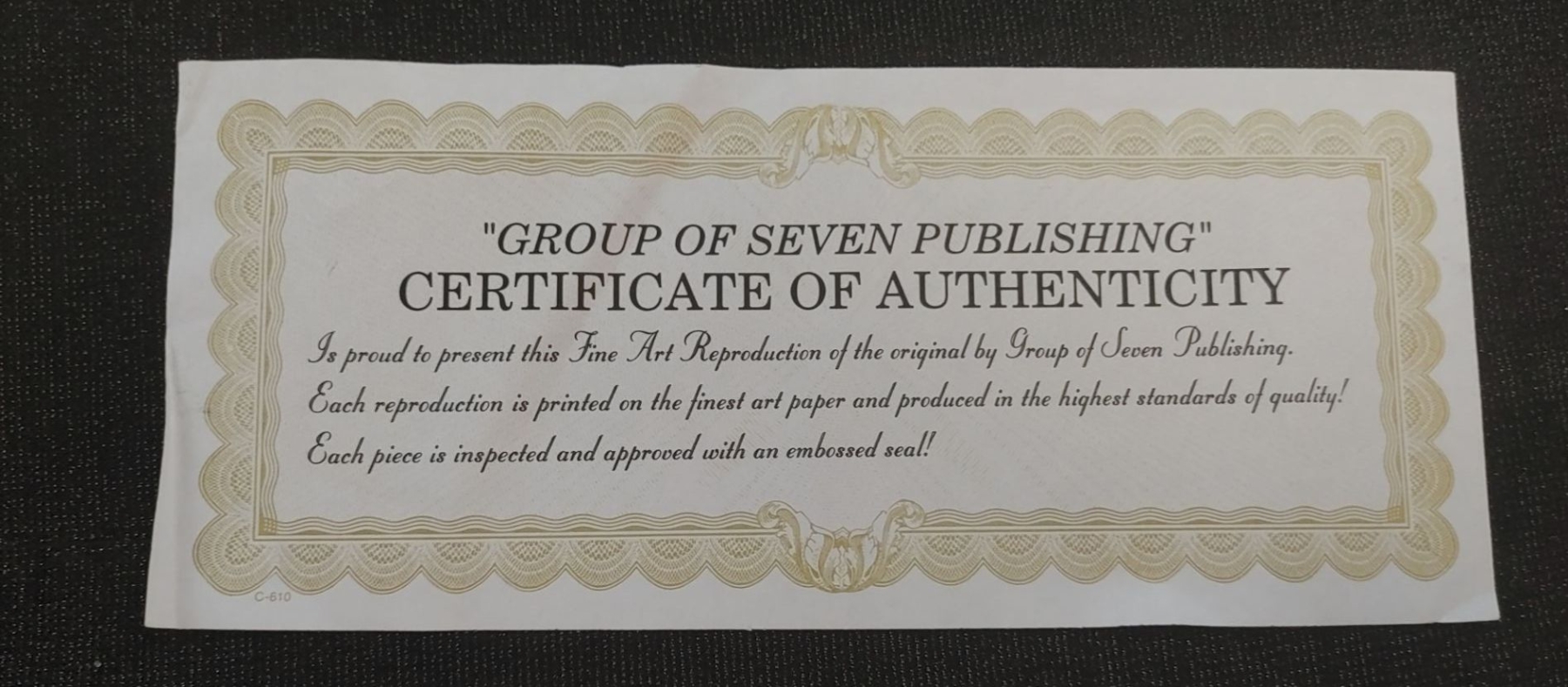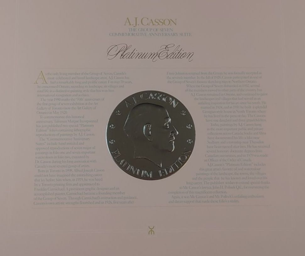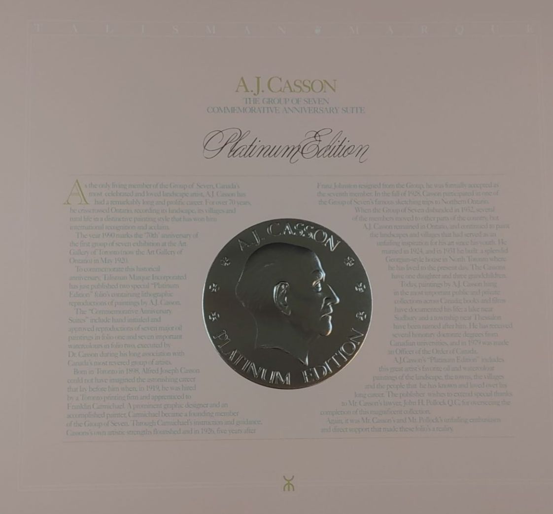 The Group of Seven Commemorative Anniversary Suite Prints (with Certificate of Authenticity) Platinum Edition. All are signed by the artist, stamped "approved" and are 200/700 prints. Included are the following prints: