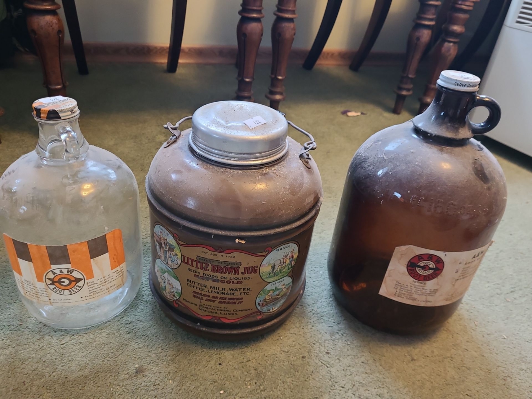 A&W Rootbeer Jugs X2 and an Original "Little Brown Jug" Thermos