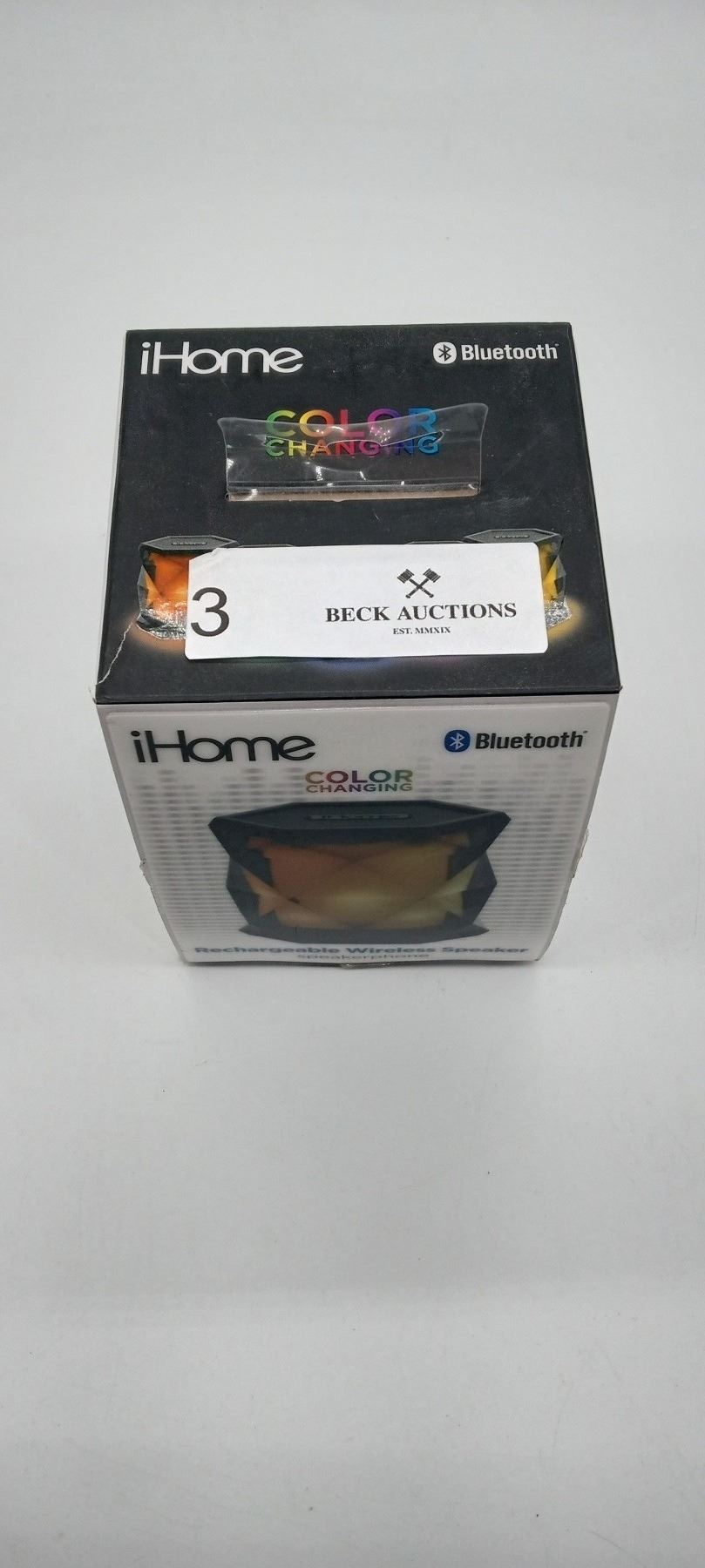 An iHome Rechargeable Wireless Speaker(BlueTooth); compatible with both Android and iPhone and features a rechargeable battery.