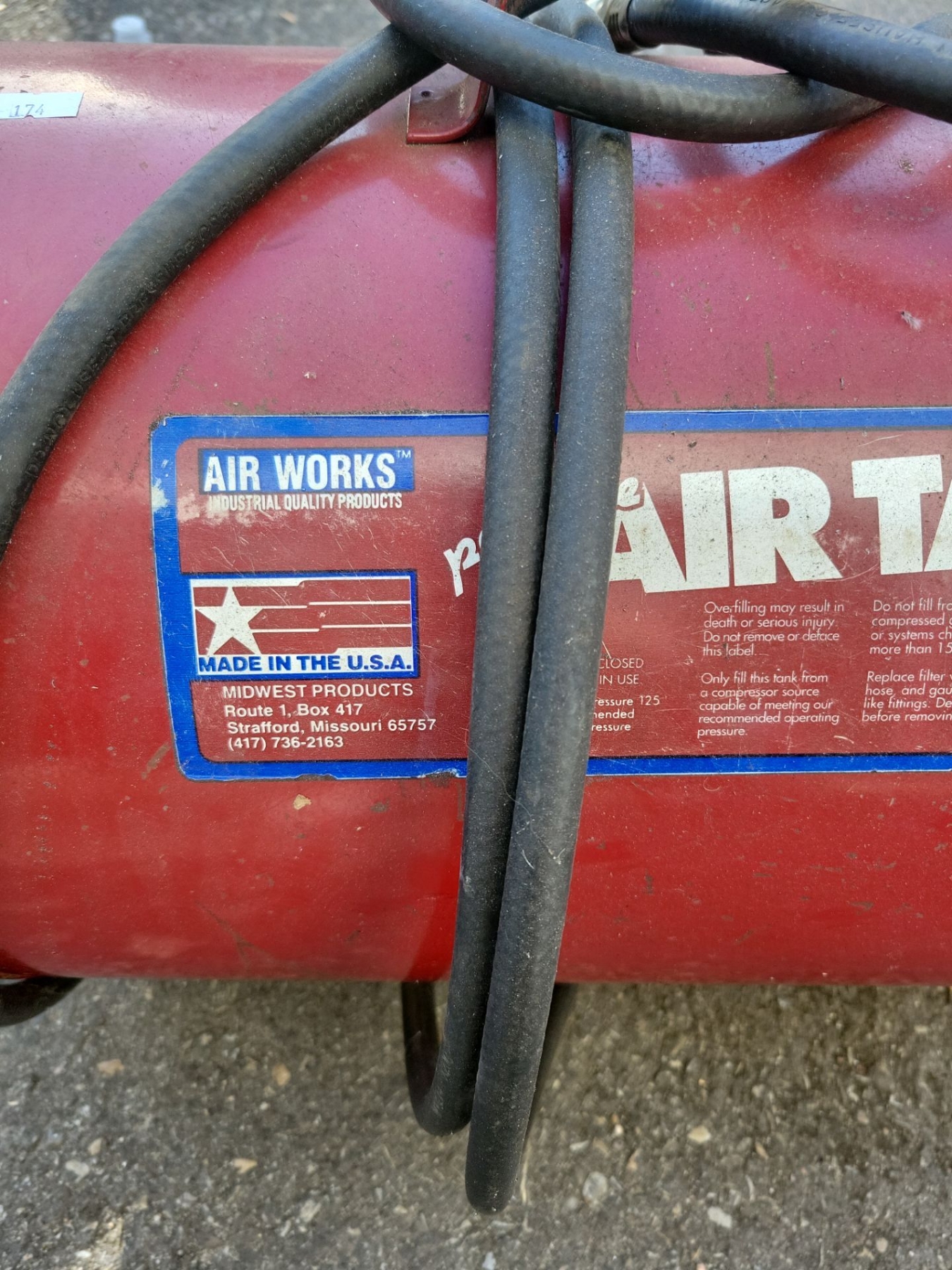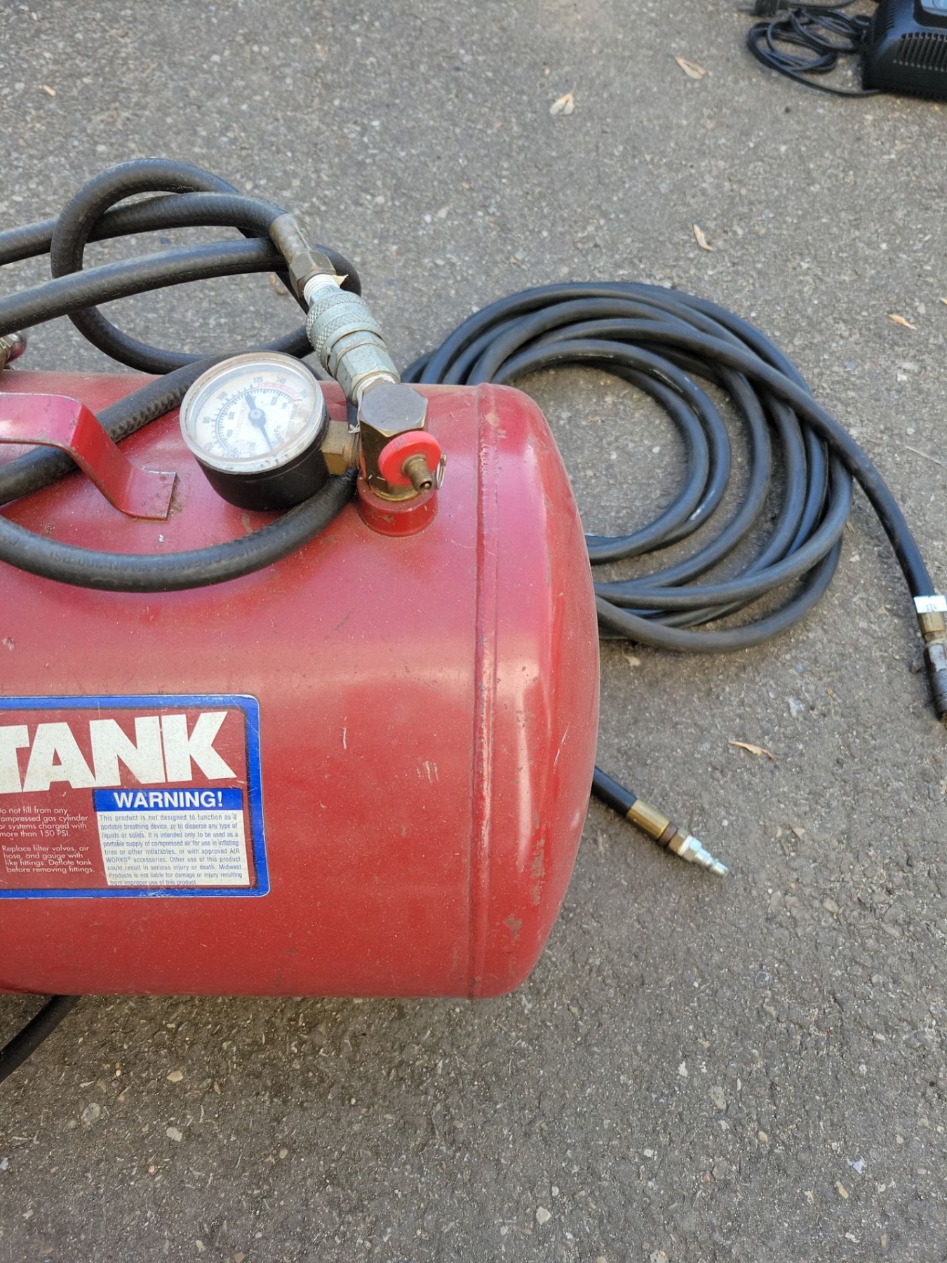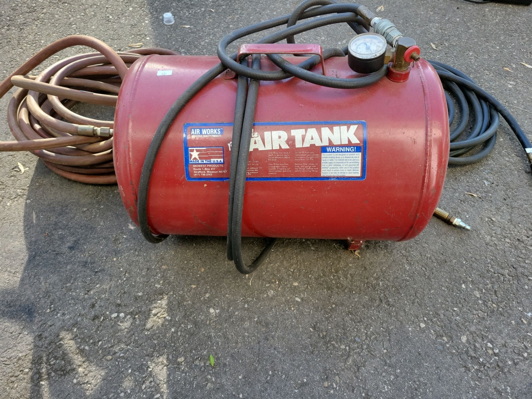 AIRWORKS Quality Industrial Portable Air Tank w/ Air Hoses - Max Pressure 125 PSI