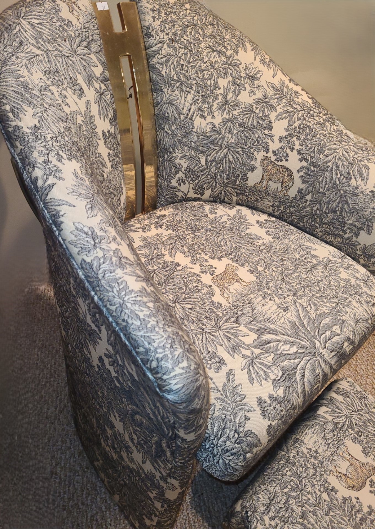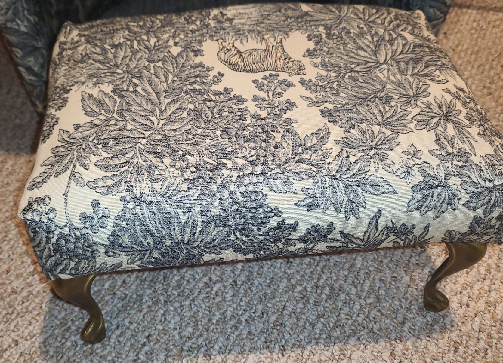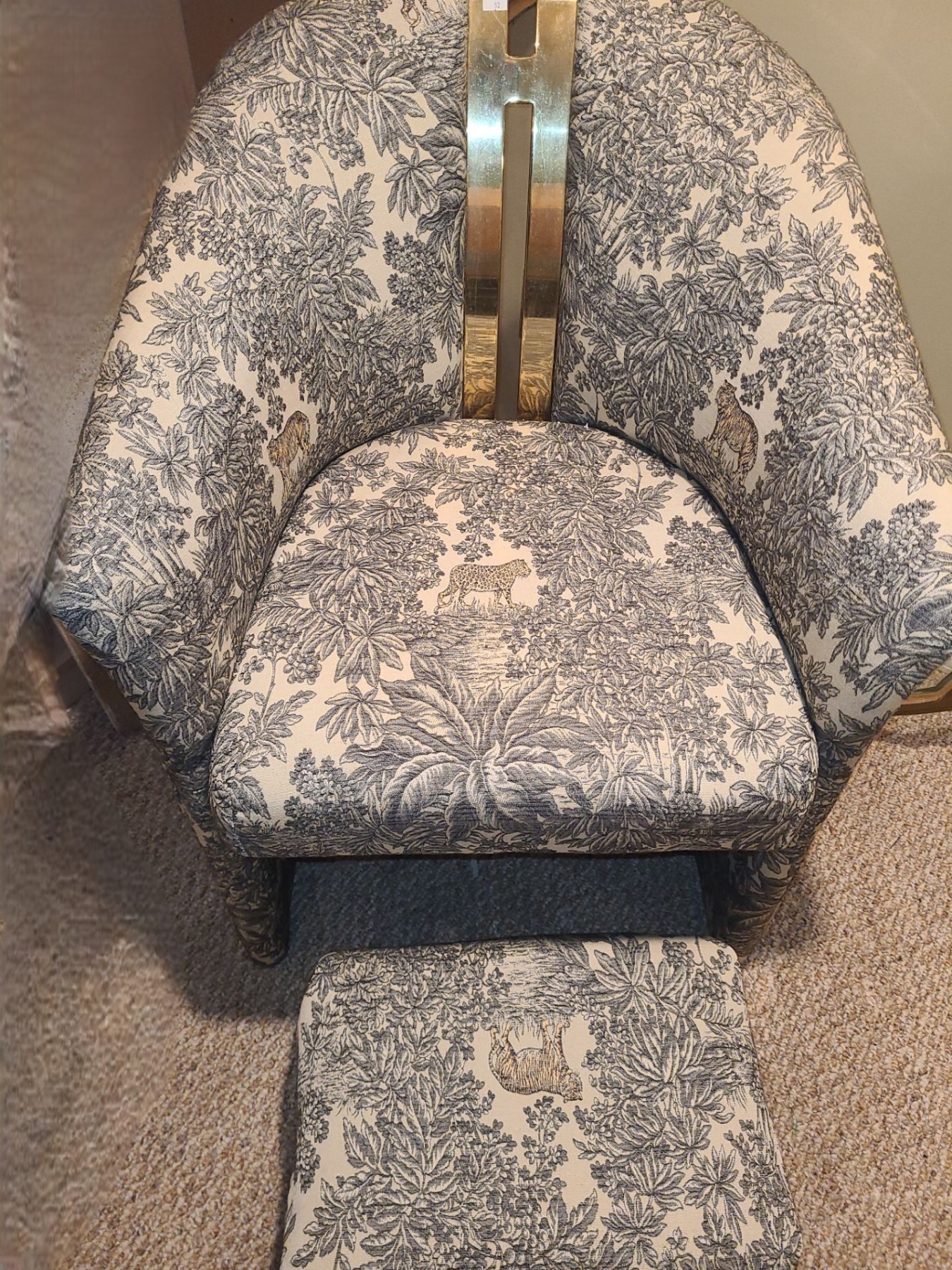 Accent Chair w/ "Jungle" Upholstery 26 W, 21 D, 34 T and Footstool 16 W, 12 D, 9 T