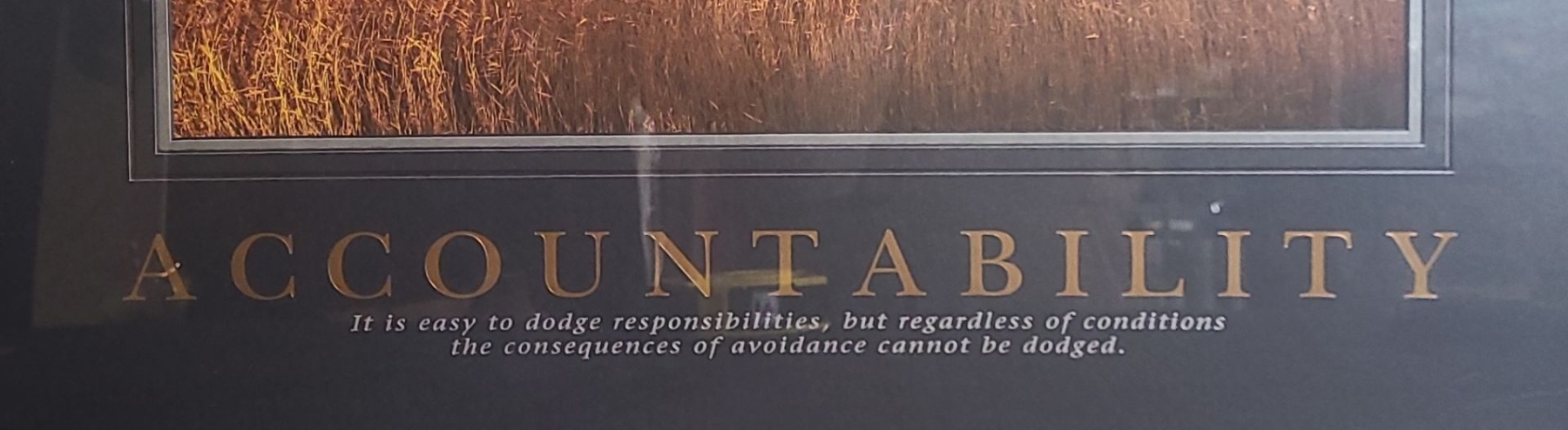 "Accountability" Inspirational Message, 33 X 27 Print Framed Under Glass