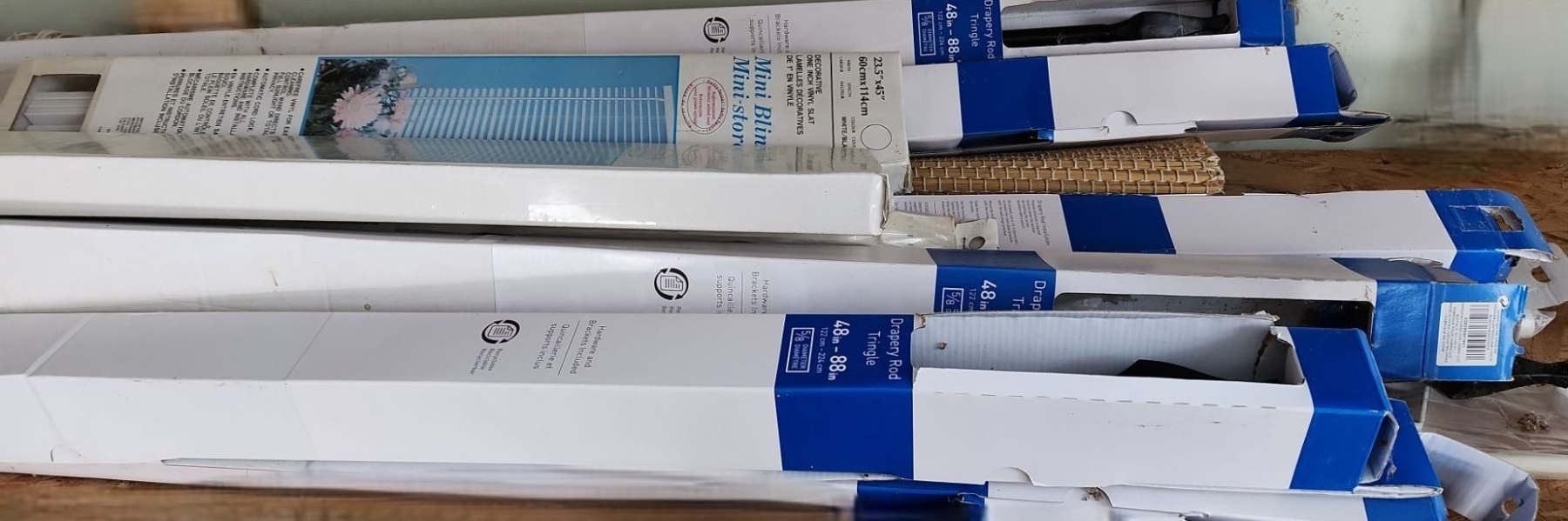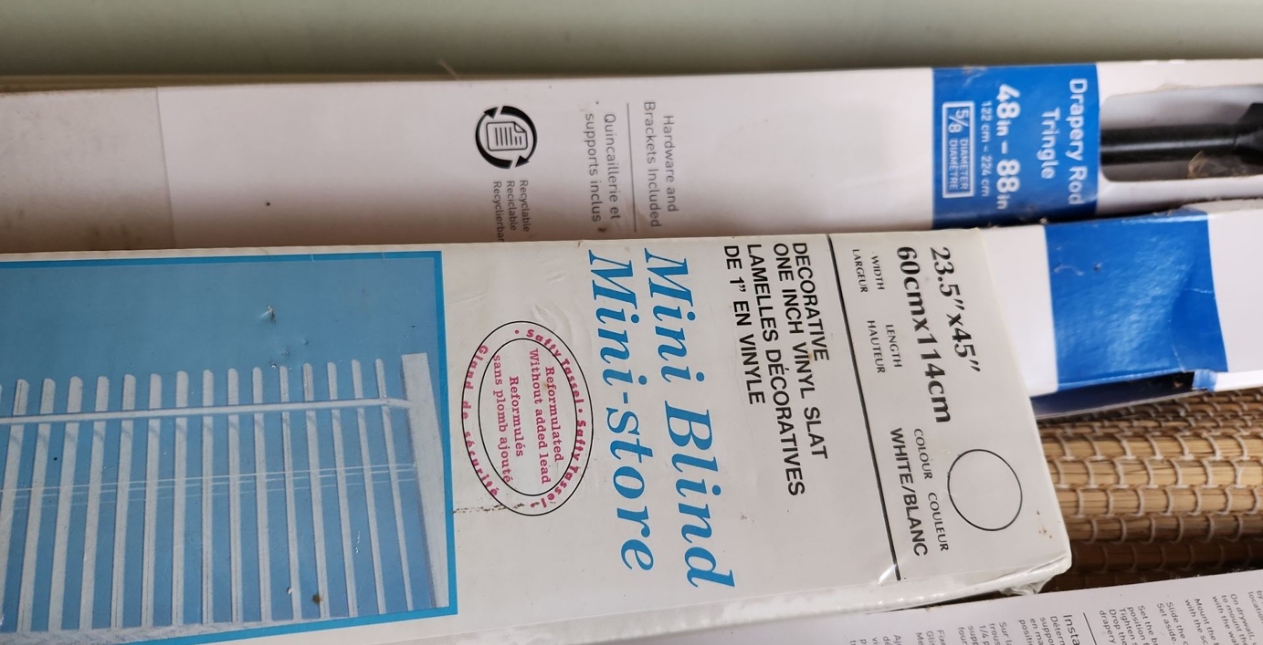 Adjustable Curtain Rods 48-88 Inches, White Mini Blinds 23.45 x 45, Straw Shade and More!