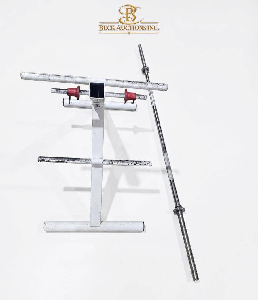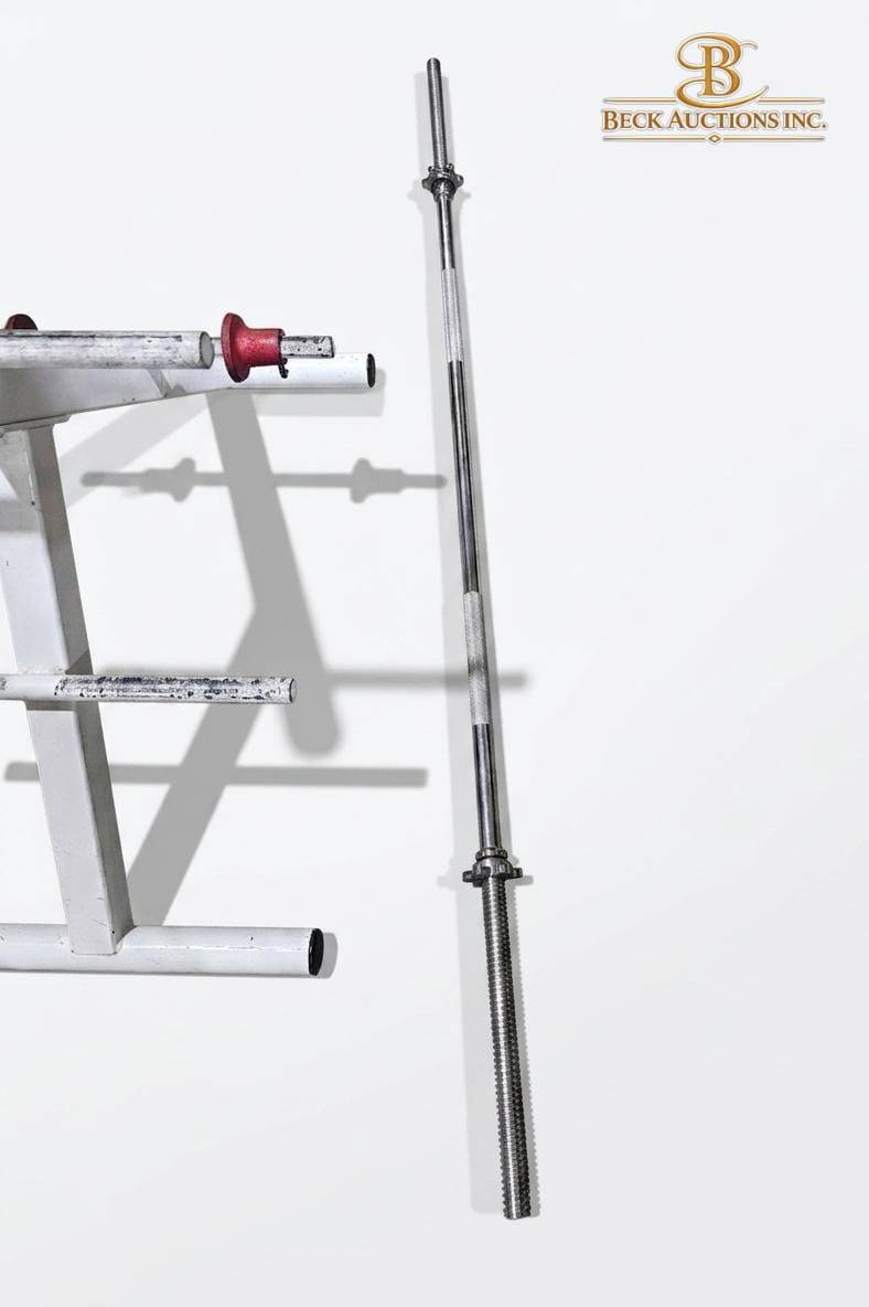 This sturdy exercise barbell stand, constructed from durable metal, is adjustable for customization in weightlifting routines. Included is a 7-foot weight bar designed for various workout needs. The stand measures approximately 36 inches in height, 30 inches in width, and 20 inches in depth, ensuring stability during use. The unit is an excellent choice for home or gym-based fitness setups.