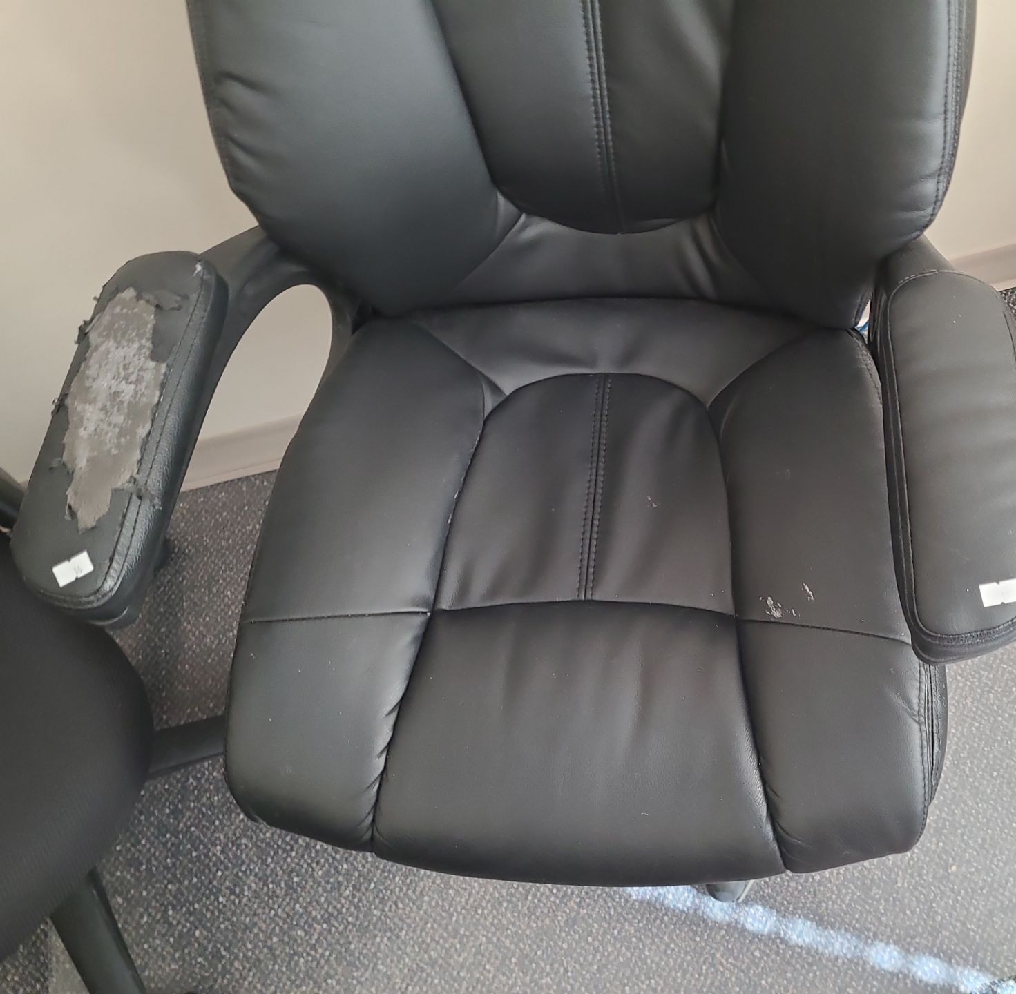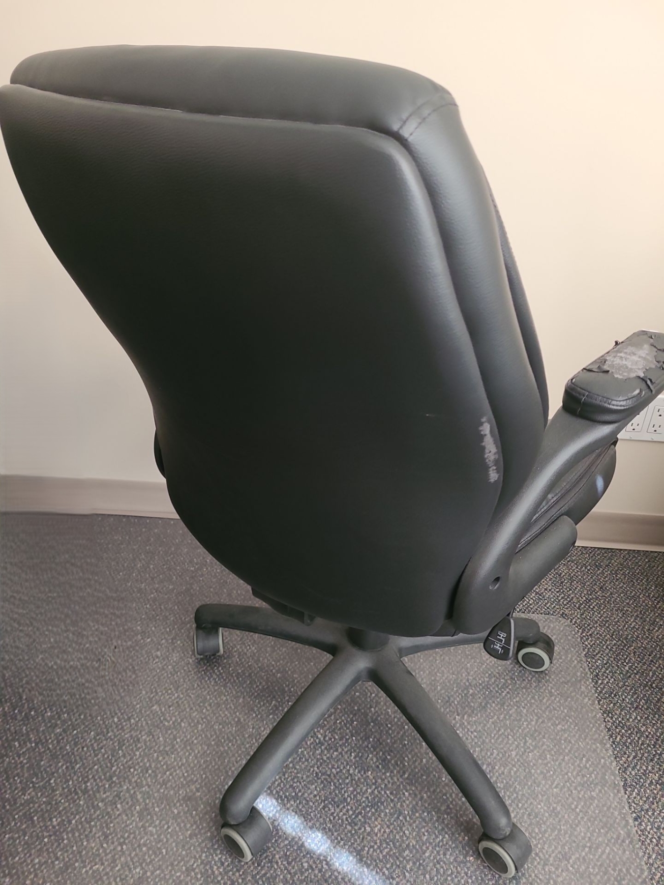 Executive Chair has Ripped Arm Rest and Scuff on Back as Shown, Also Includes Chair Protection Pad