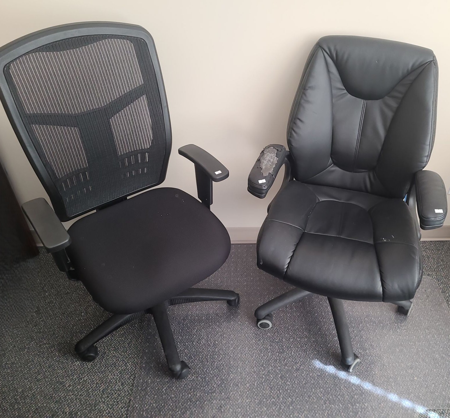 Adjustable Office Chair w/ Mesh Back: 24 W, 26 D, 44 T and Executive Chair 25 W, 23 D, 42 T