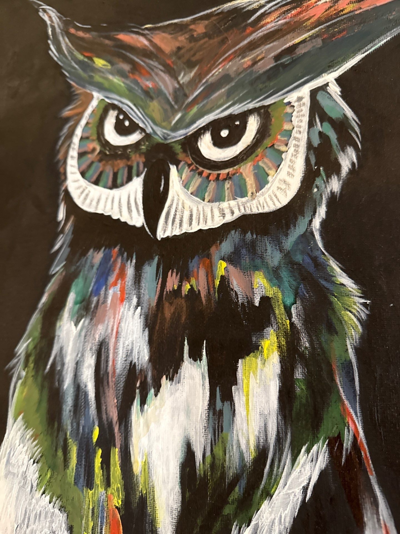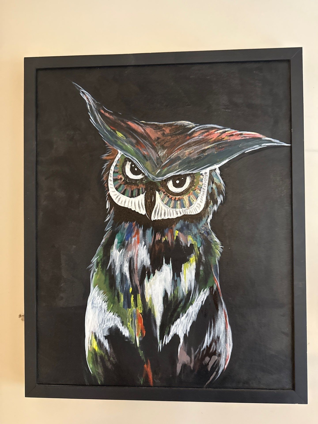 Adorable Owl Painting on Canvas, Unsigned - 17x21