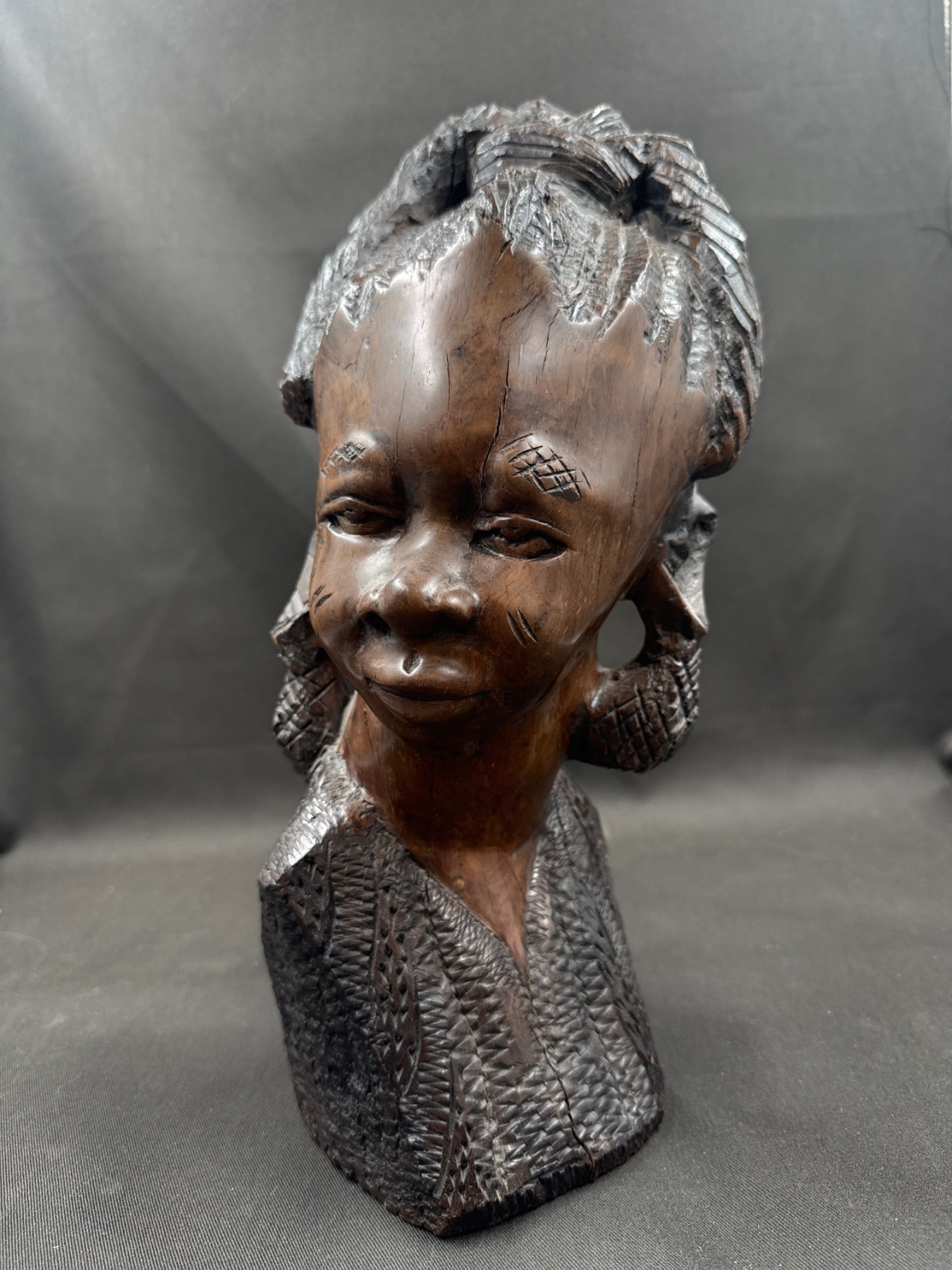 African Hand Carved Ebony Female Bust 13T