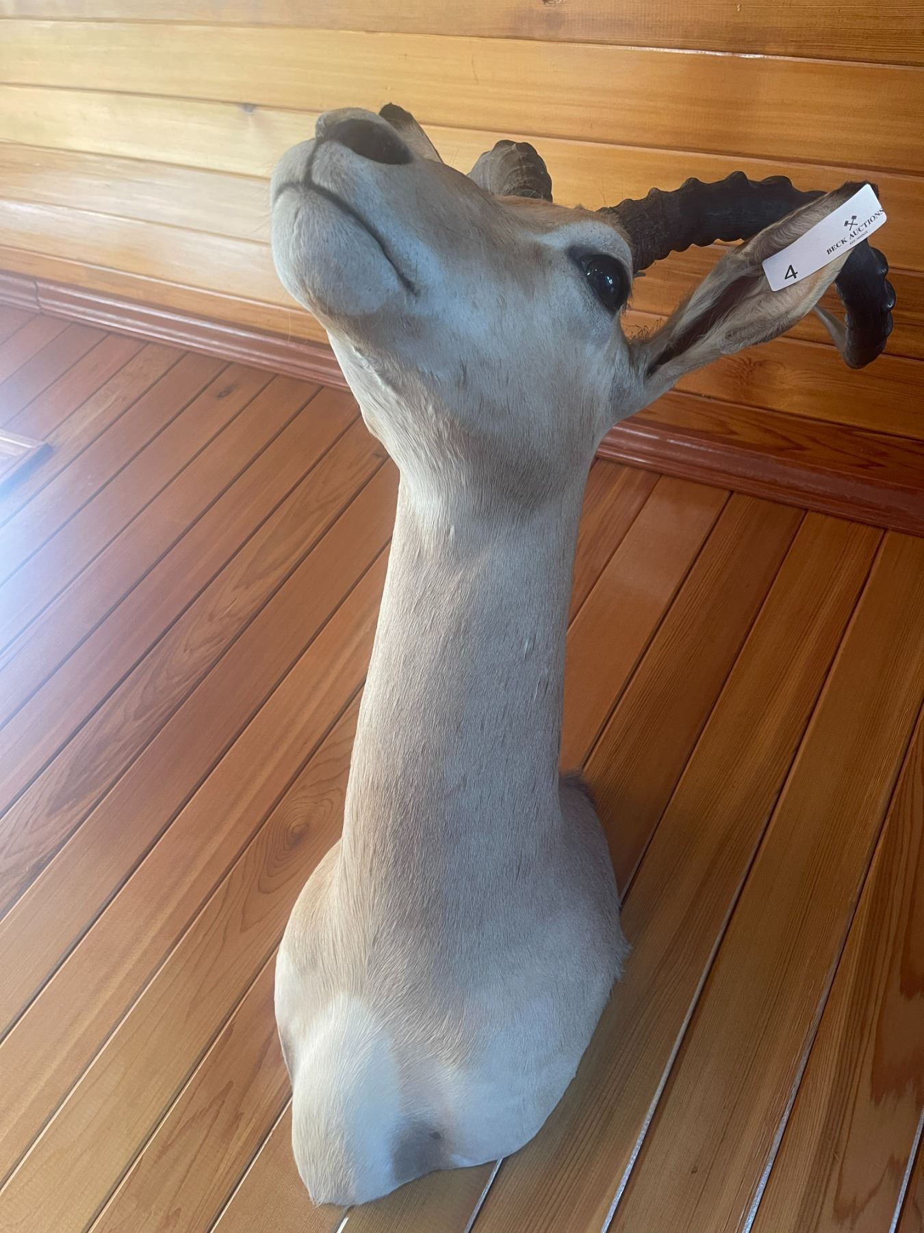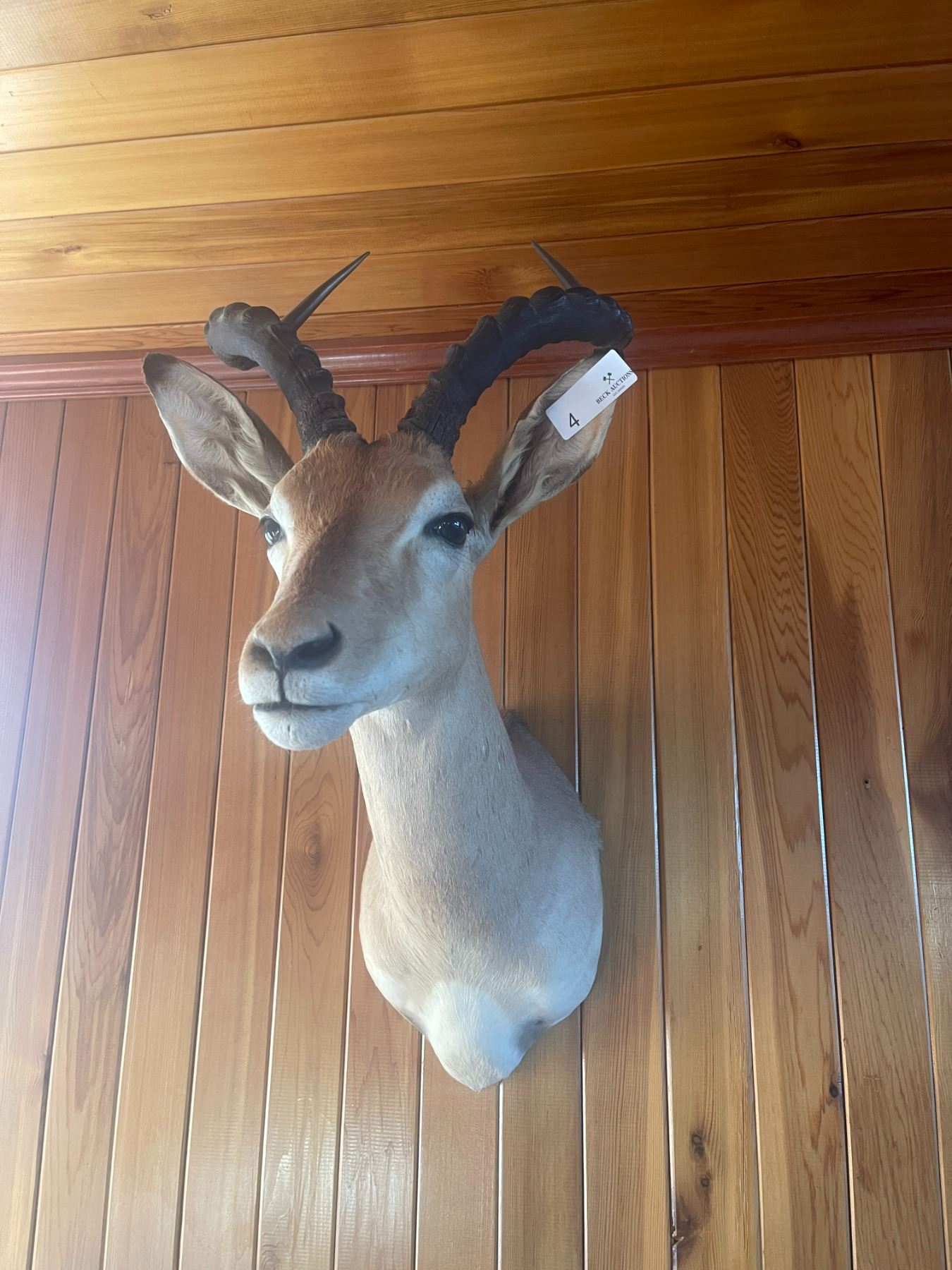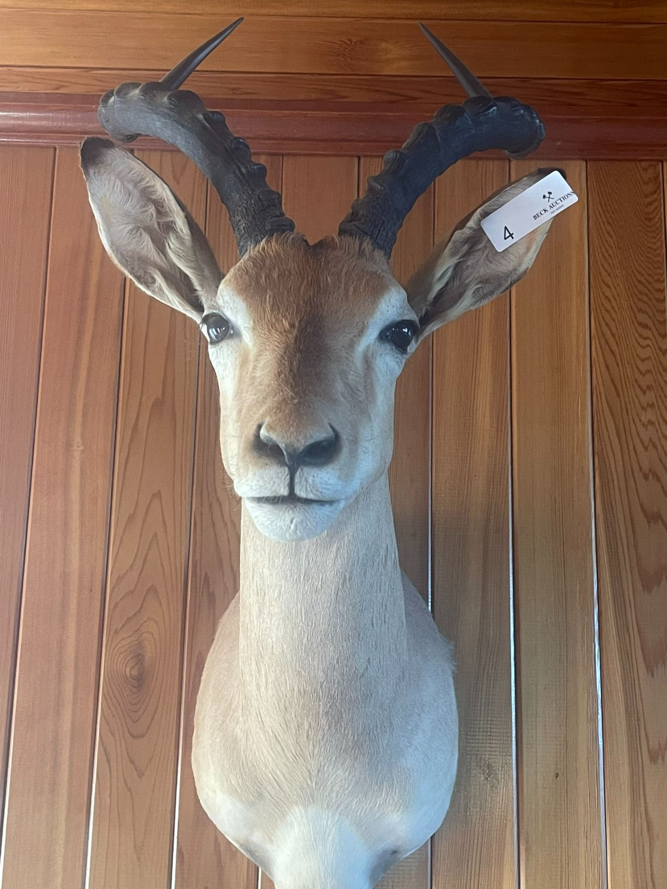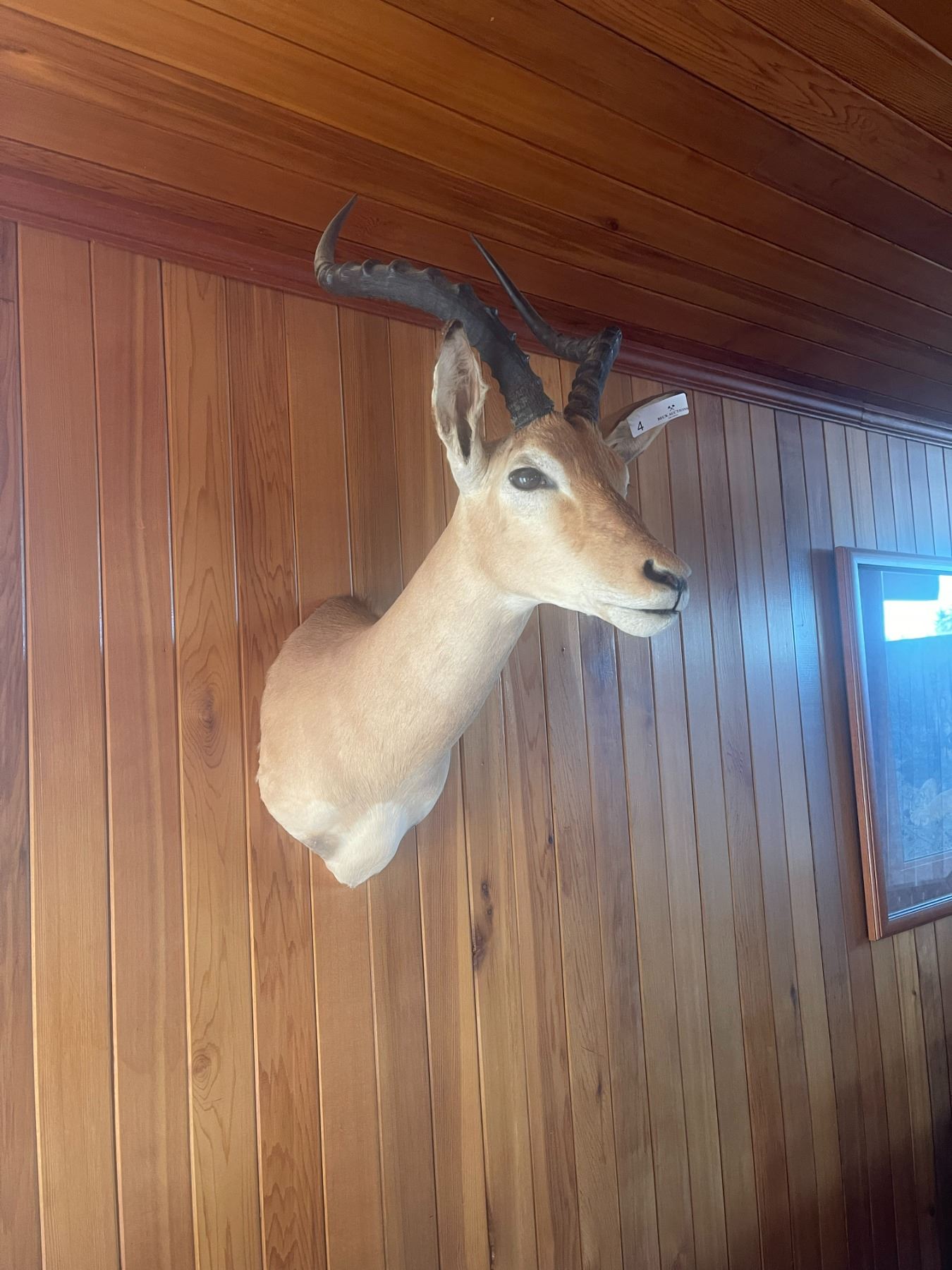 The impala or rooibok (Aepyceros melampus) is a medium-sized antelope found in eastern and southern Africa. The only extant member of the genus Aepyceros and tribe Aepycerotini, it was first described to European audiences by German zoologist Hinrich Lichtenstein in 1812. Two subspecies are recognised—the common impala, and the larger and darker black-faced impala. The impala reaches 70–92 cm (28–36 in) at the shoulder and weighs 40–76 kg (88–168 lb). It features a glossy, reddish brown coat. The male's slender, lyre-shaped horns are 45–92 cm (18–36 in) long.