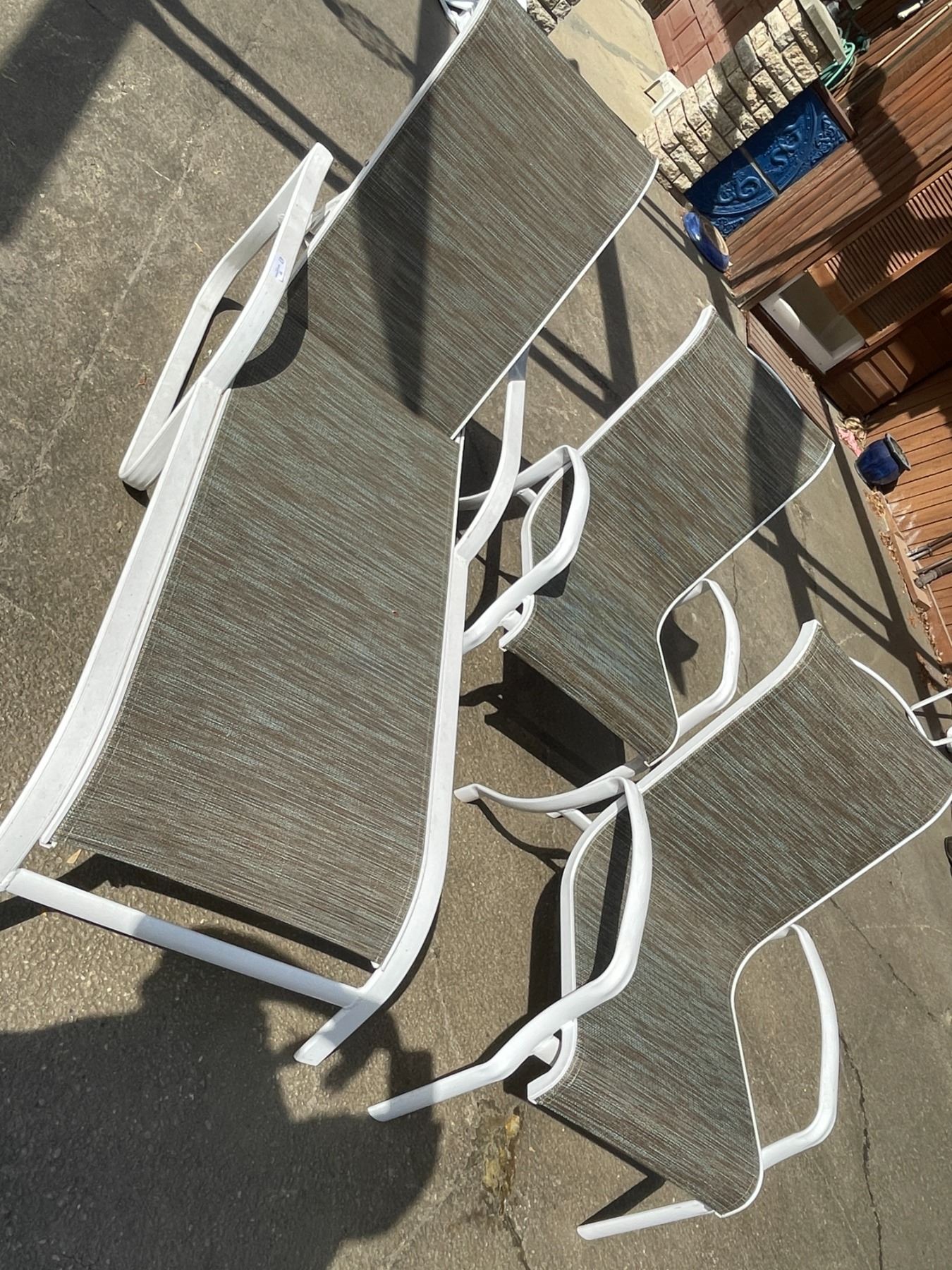 Aluminum and Frabric Patio Lounger and Two Patio Chairs