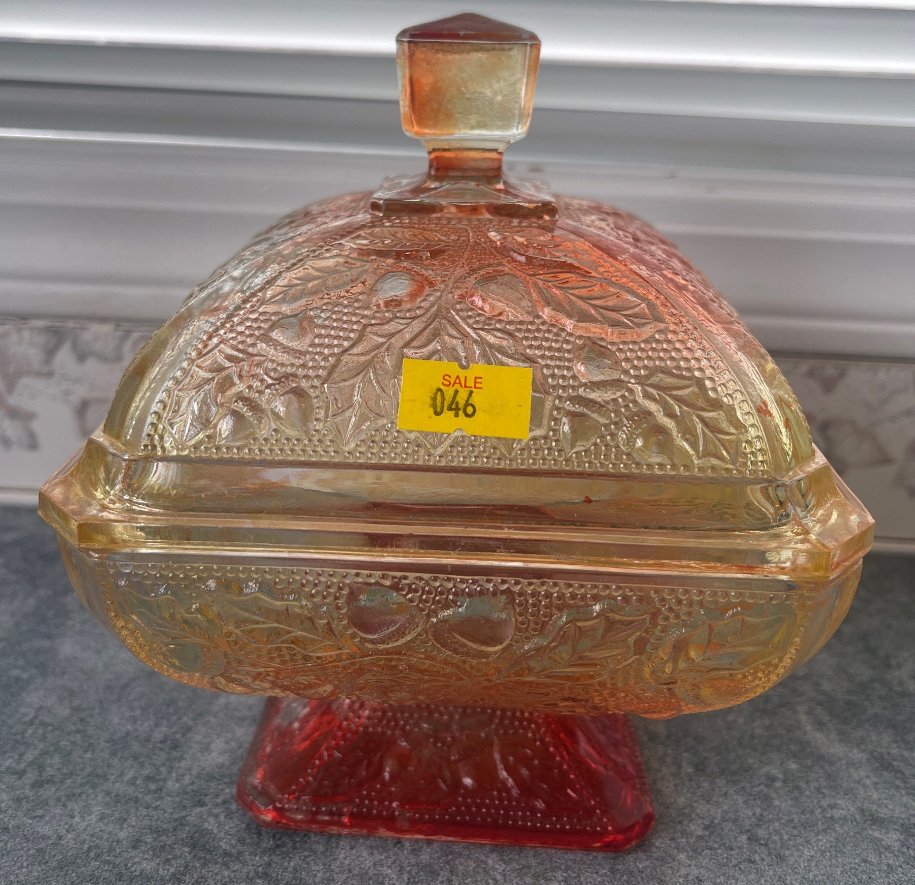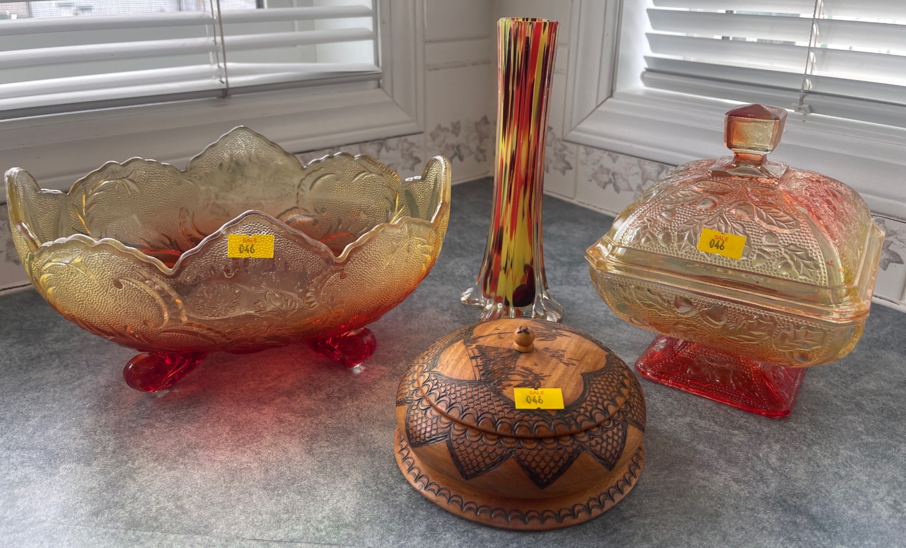 Ambre Art Glass w/ Hand Carved Trinket Box & More 9W