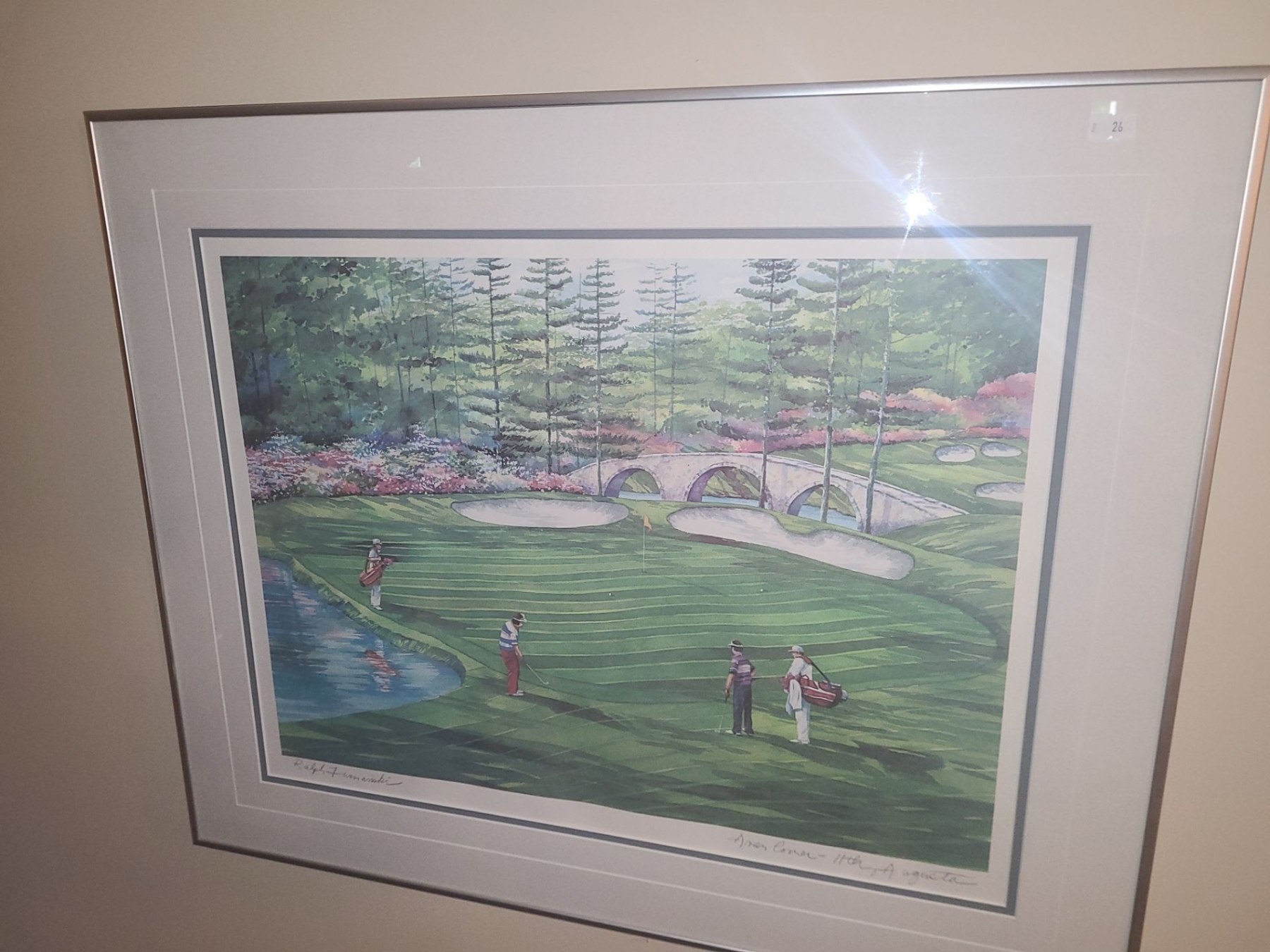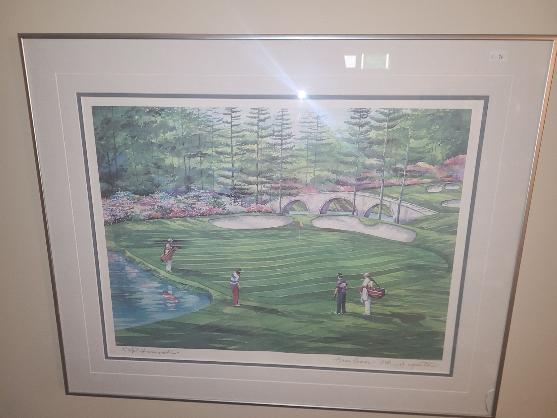 "Amen Corner, 11th Augusta" Watercolor, Artist: Ralph Farmanski, 28 X 22.5, Framed Under Glass