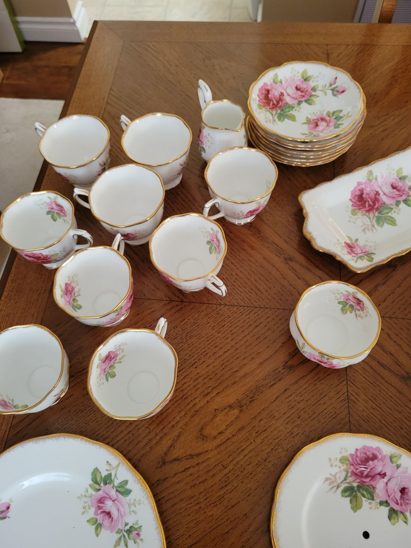 American Beauty Royal Albert Bone China England - Floral Pattern with Gold Trim