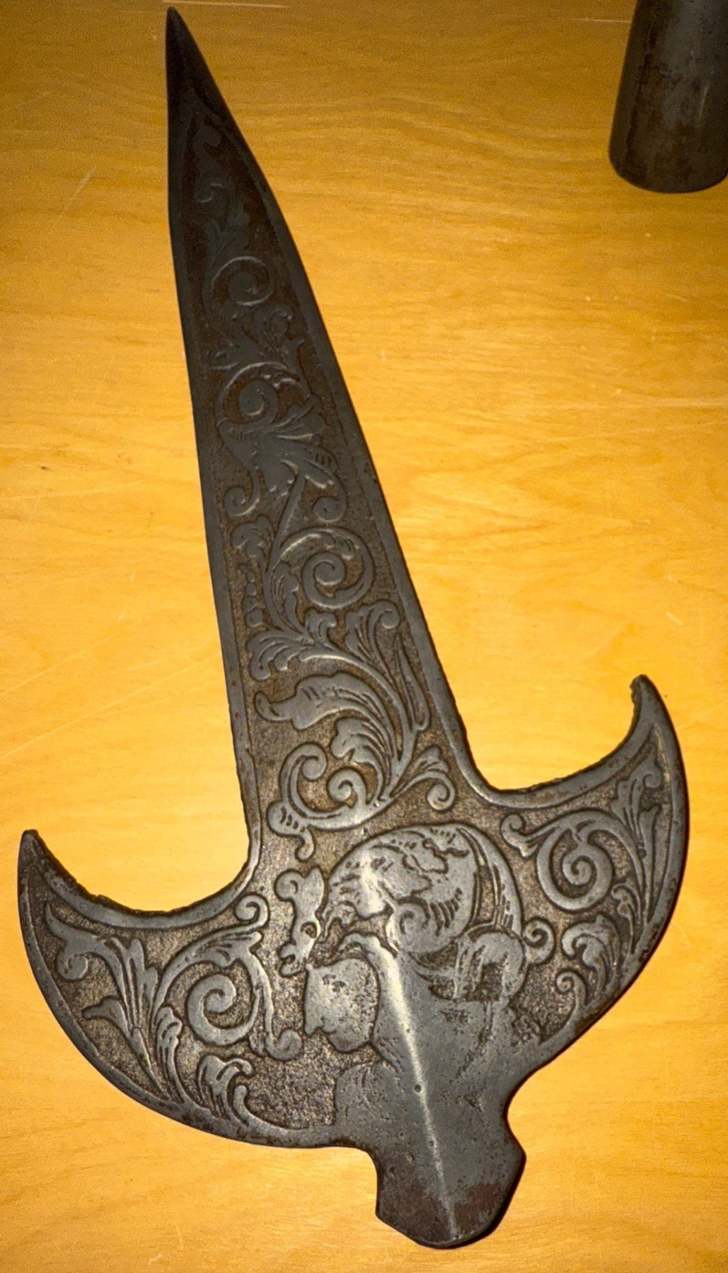 American French Colonial Polearm Spearhead w/ 16th Century Etched Halberd 8.5T