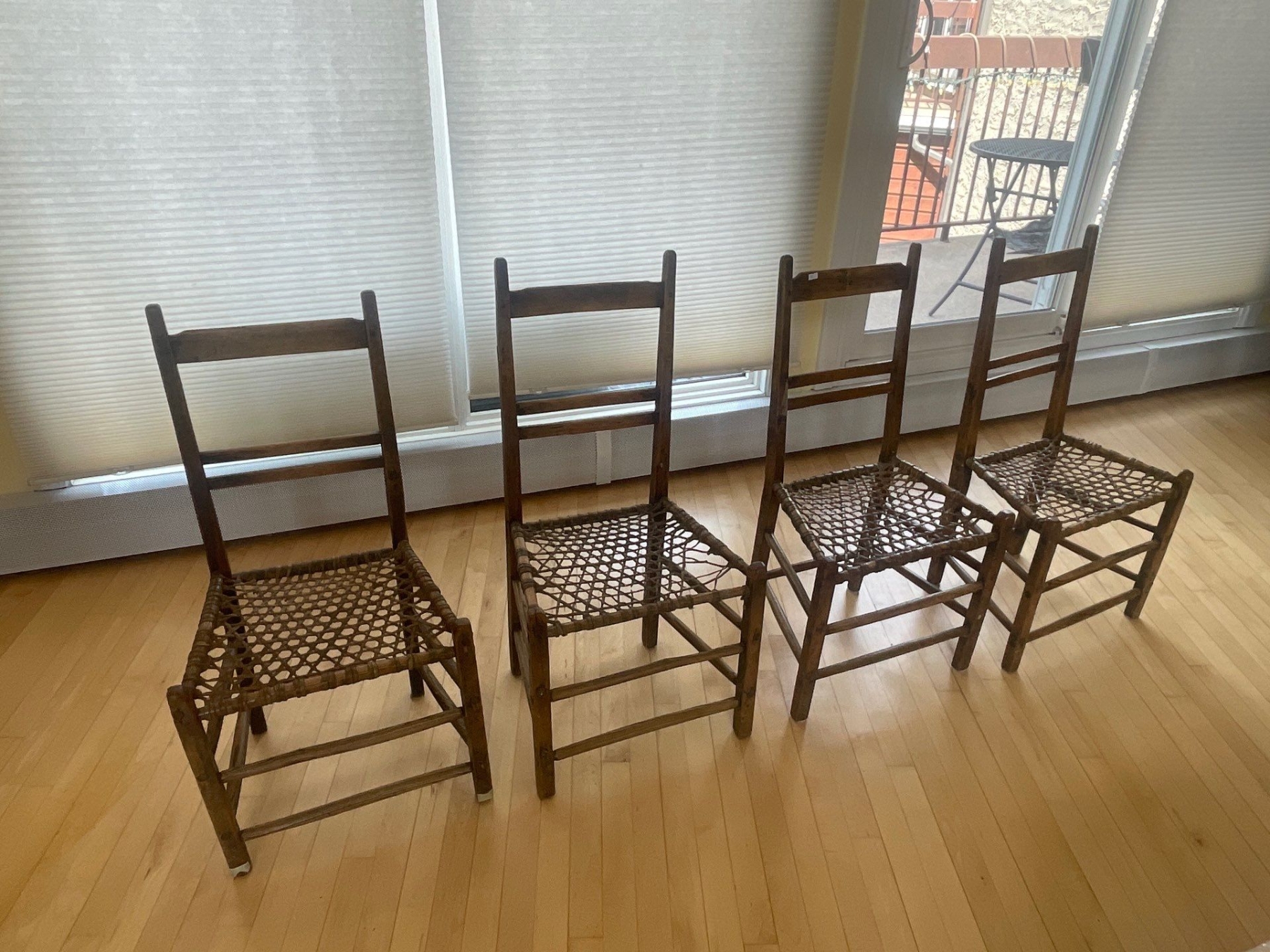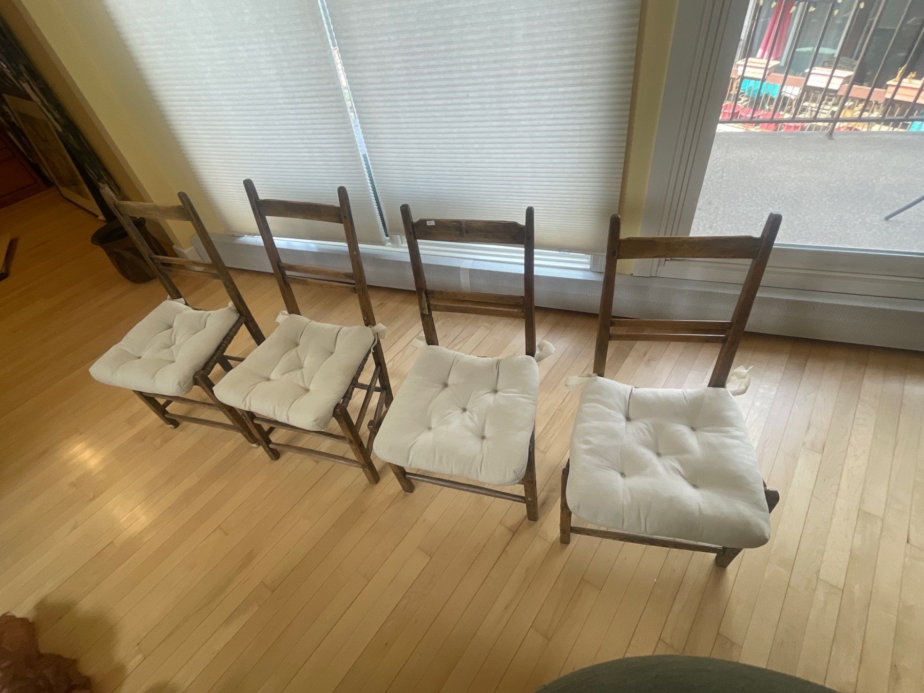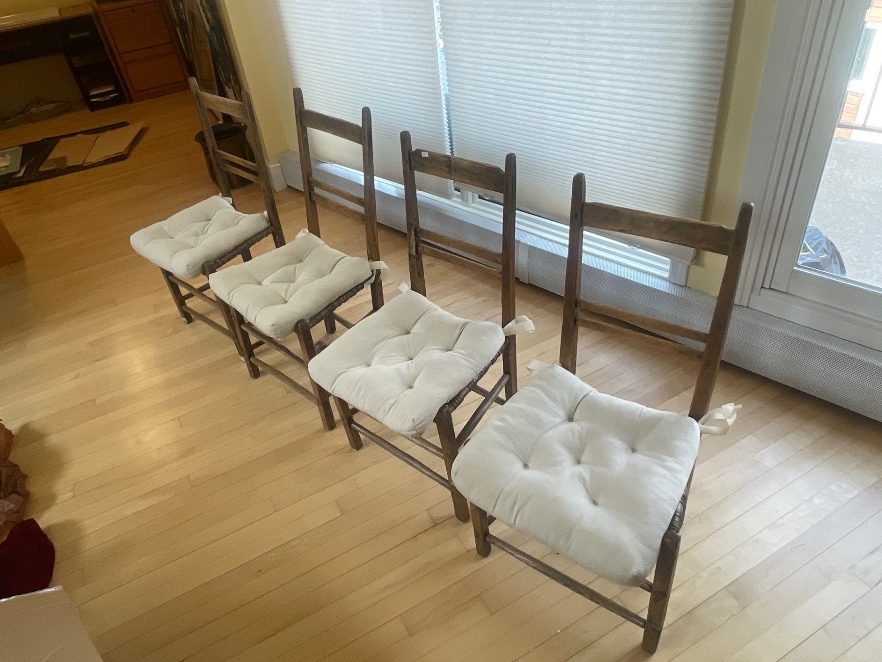 Antique, 19th century Quebec Pine Handmade chairs with seat cushions x4