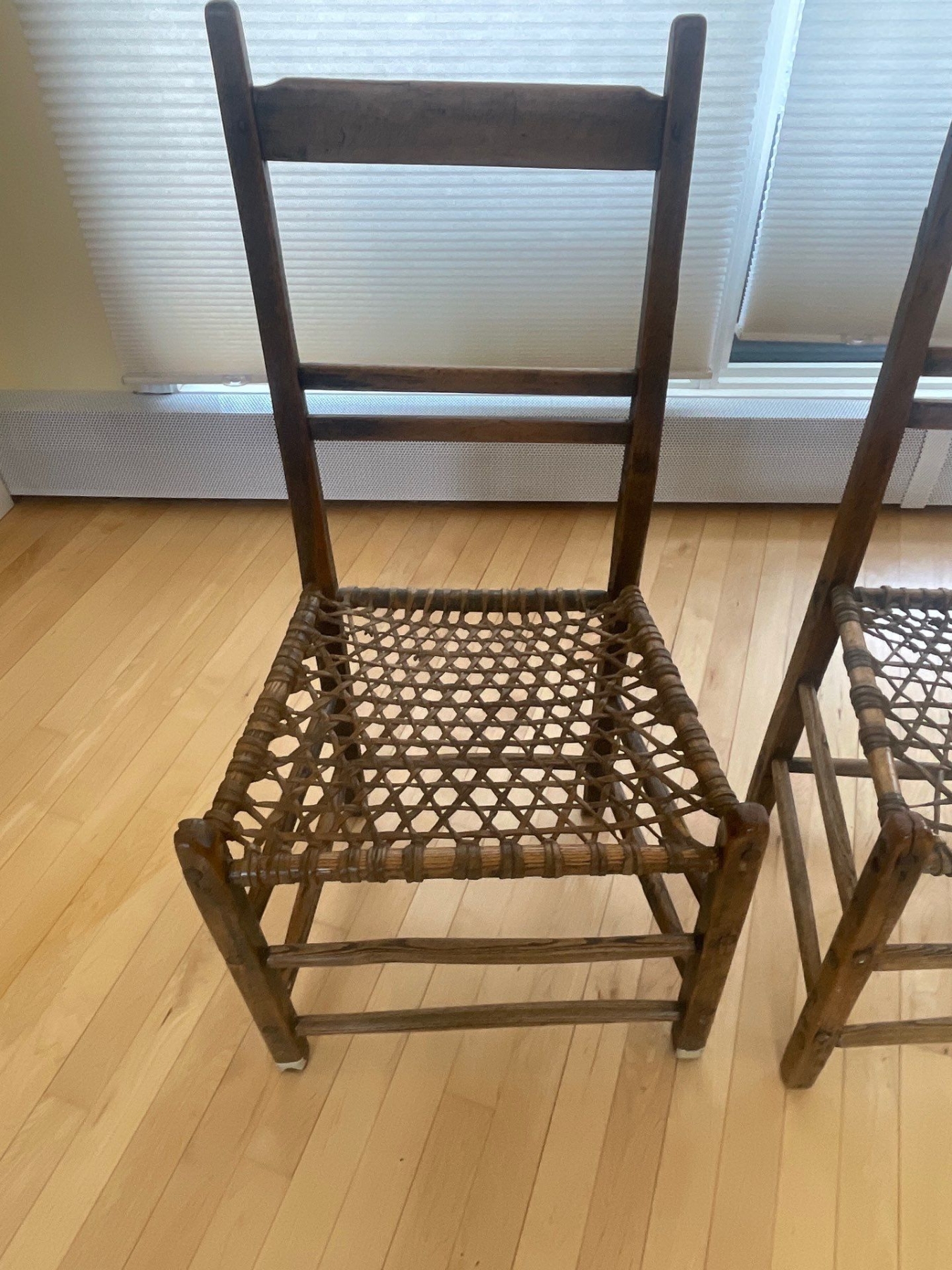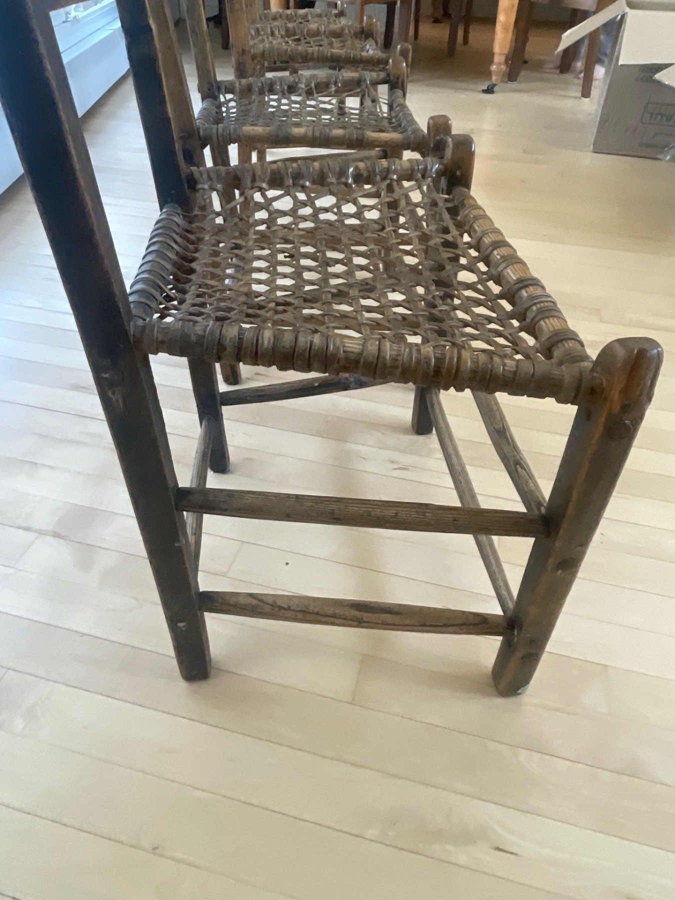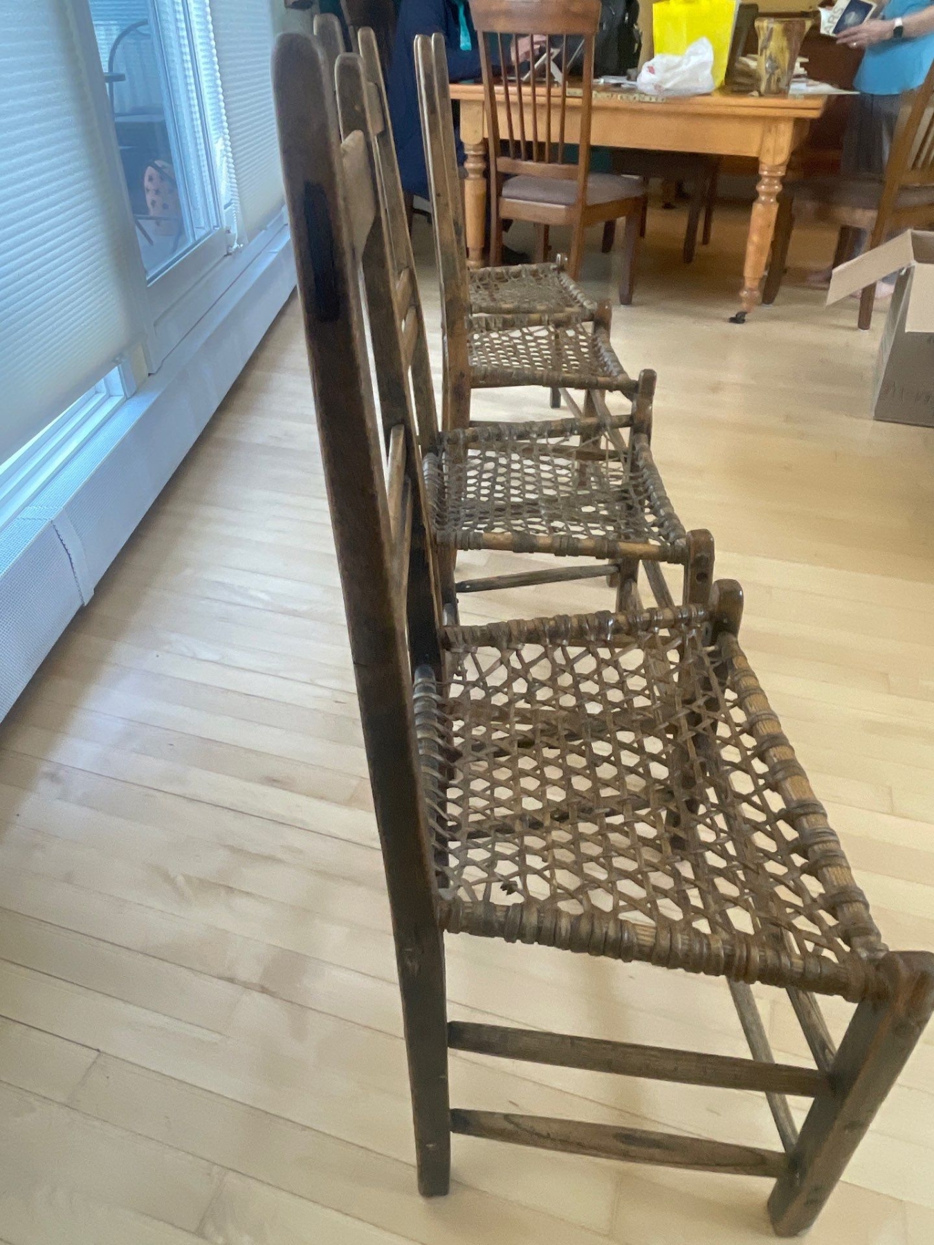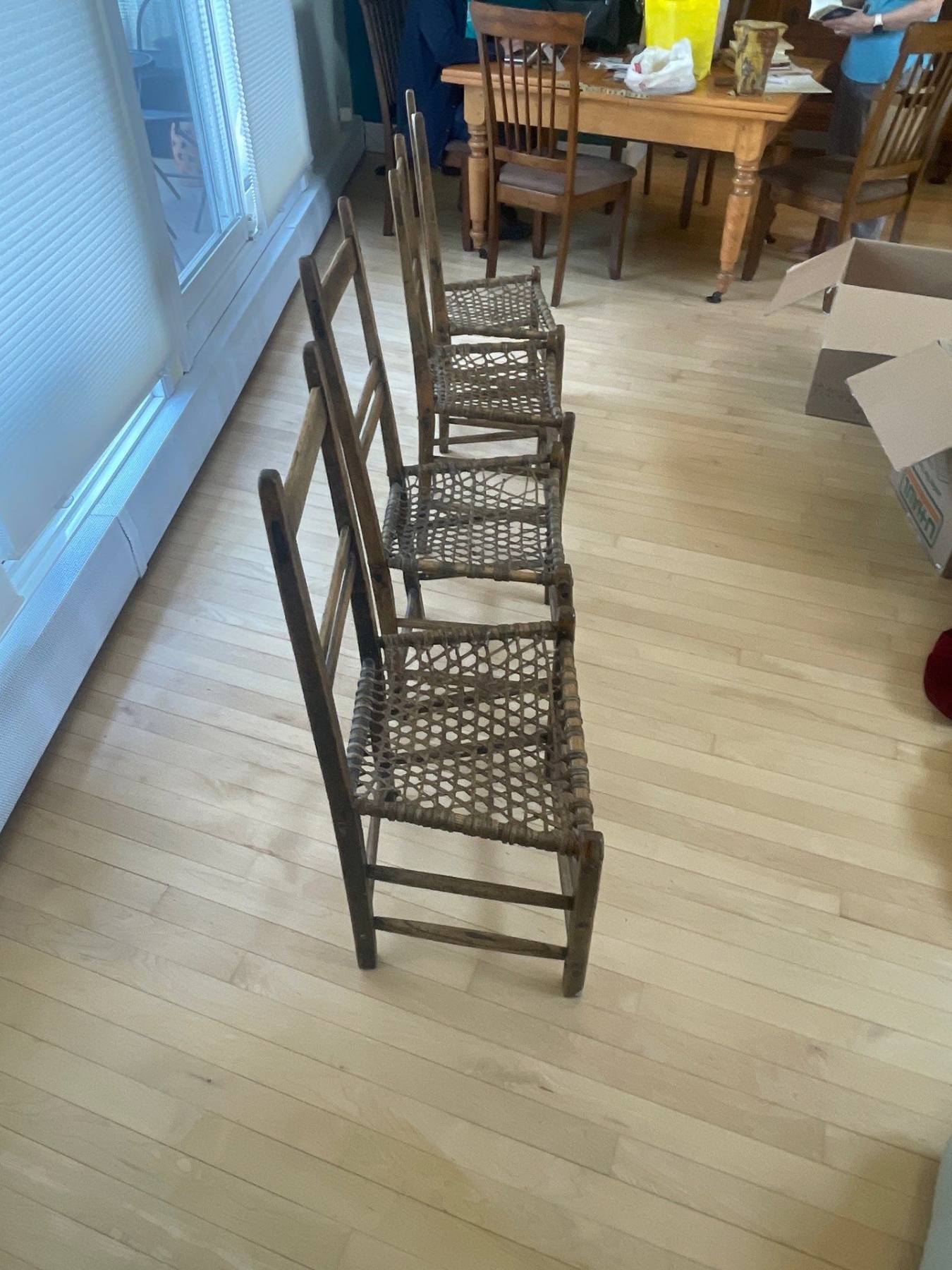 Antique, 19th century Quebec Pine Handmade chairs with seat cushions x4