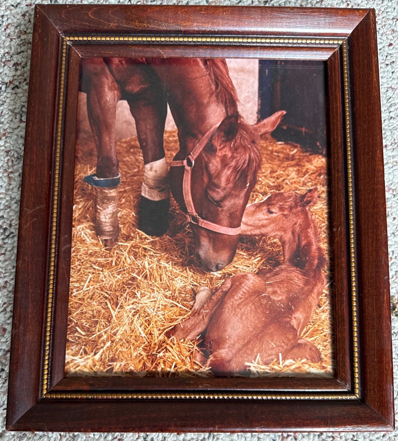 Antique Aneroid Barometer 17T w/ Western Equestrian Print &  Burlwood Coin