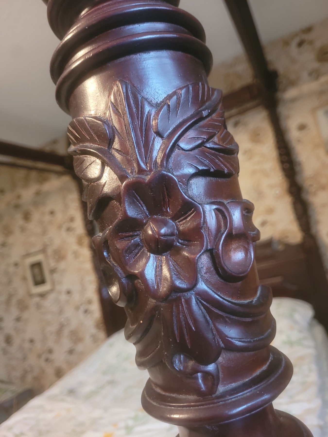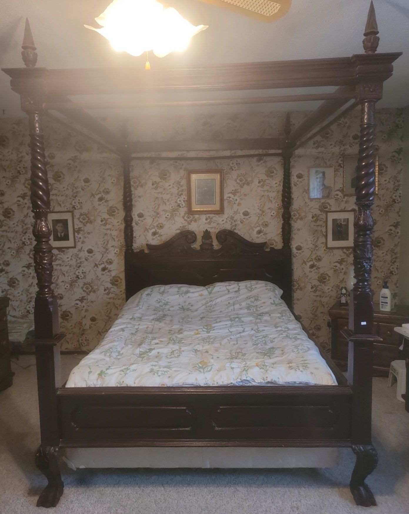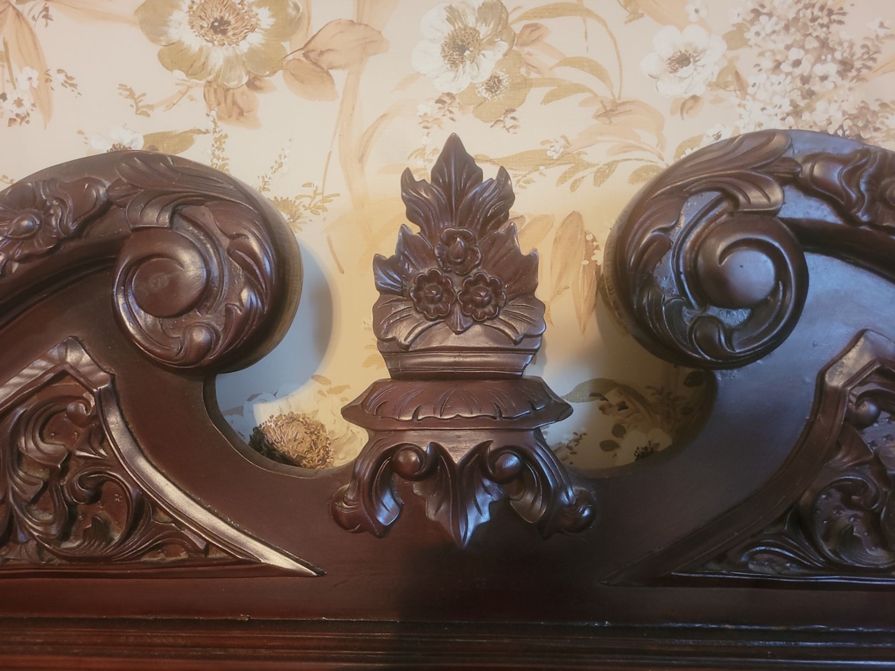 Antique Art Nouveau Ornate Wooden Bed Frame w/ Bed - 68W, 91D, 94T