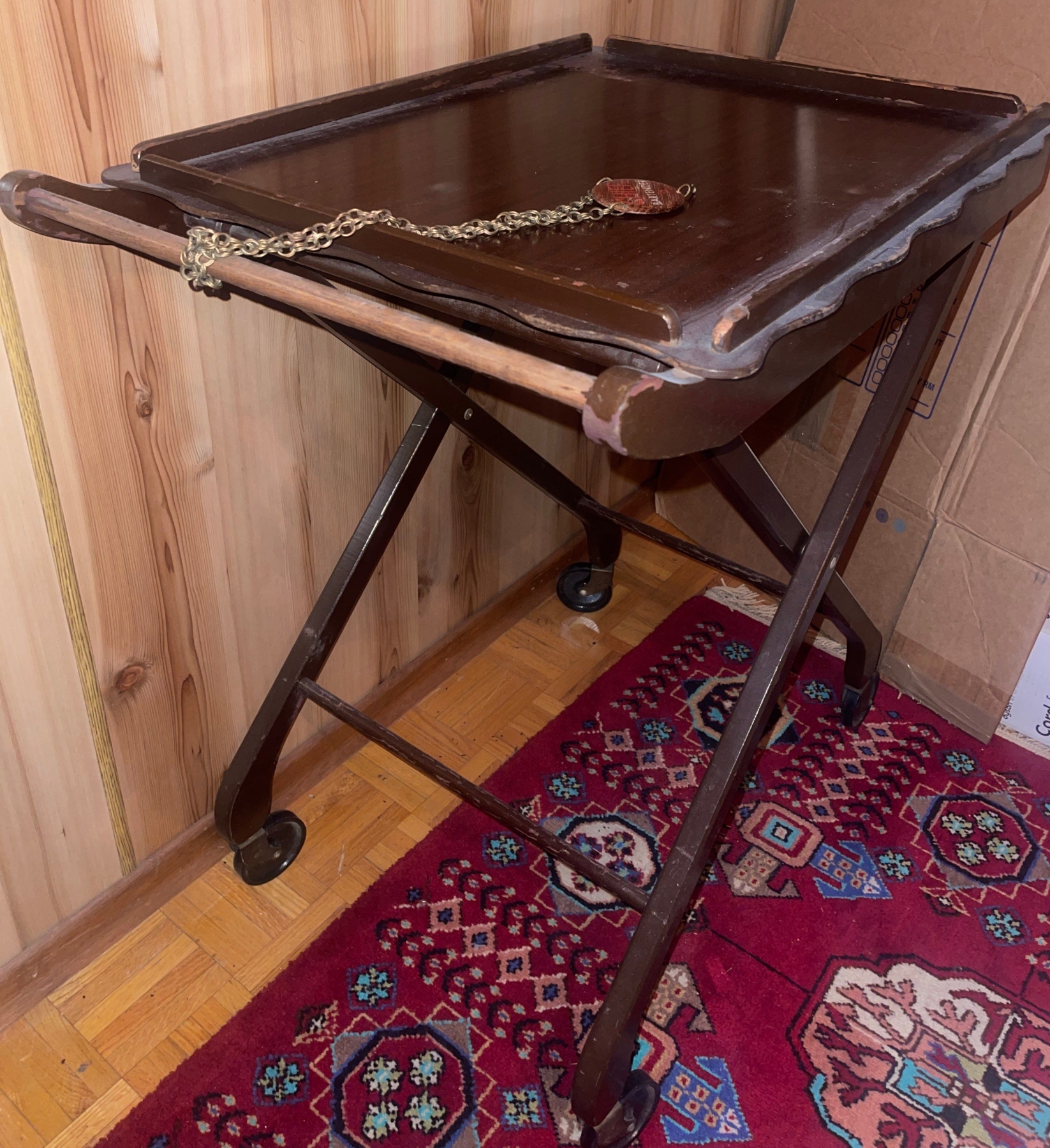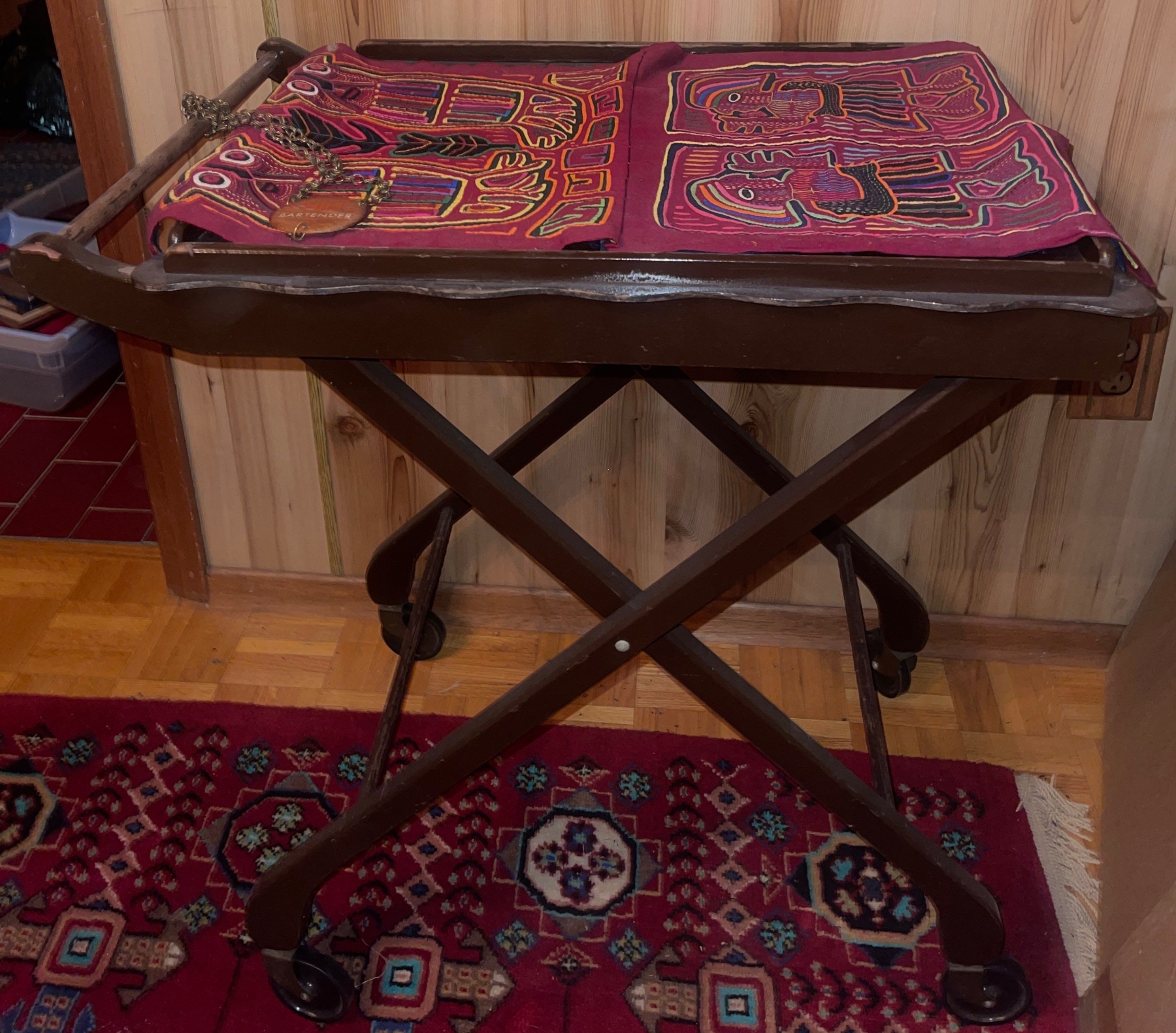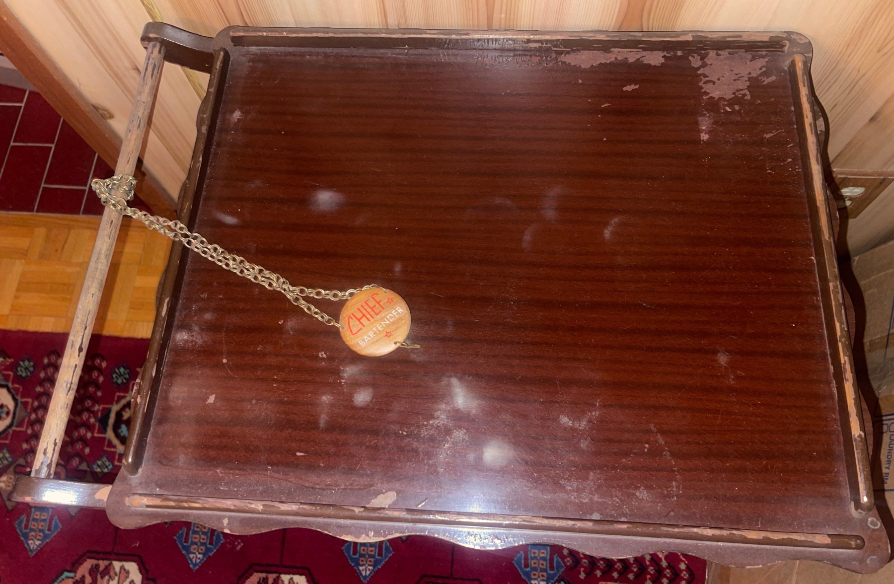 Antique Bar Cart English Butler Trolly Rolling Wooden Trolley For Servant