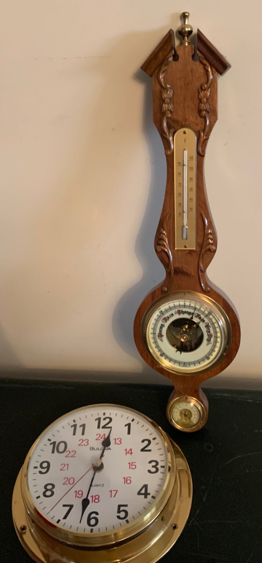 Antique Barometer w/ BULOVA Captains Clock Made In Germany 19T