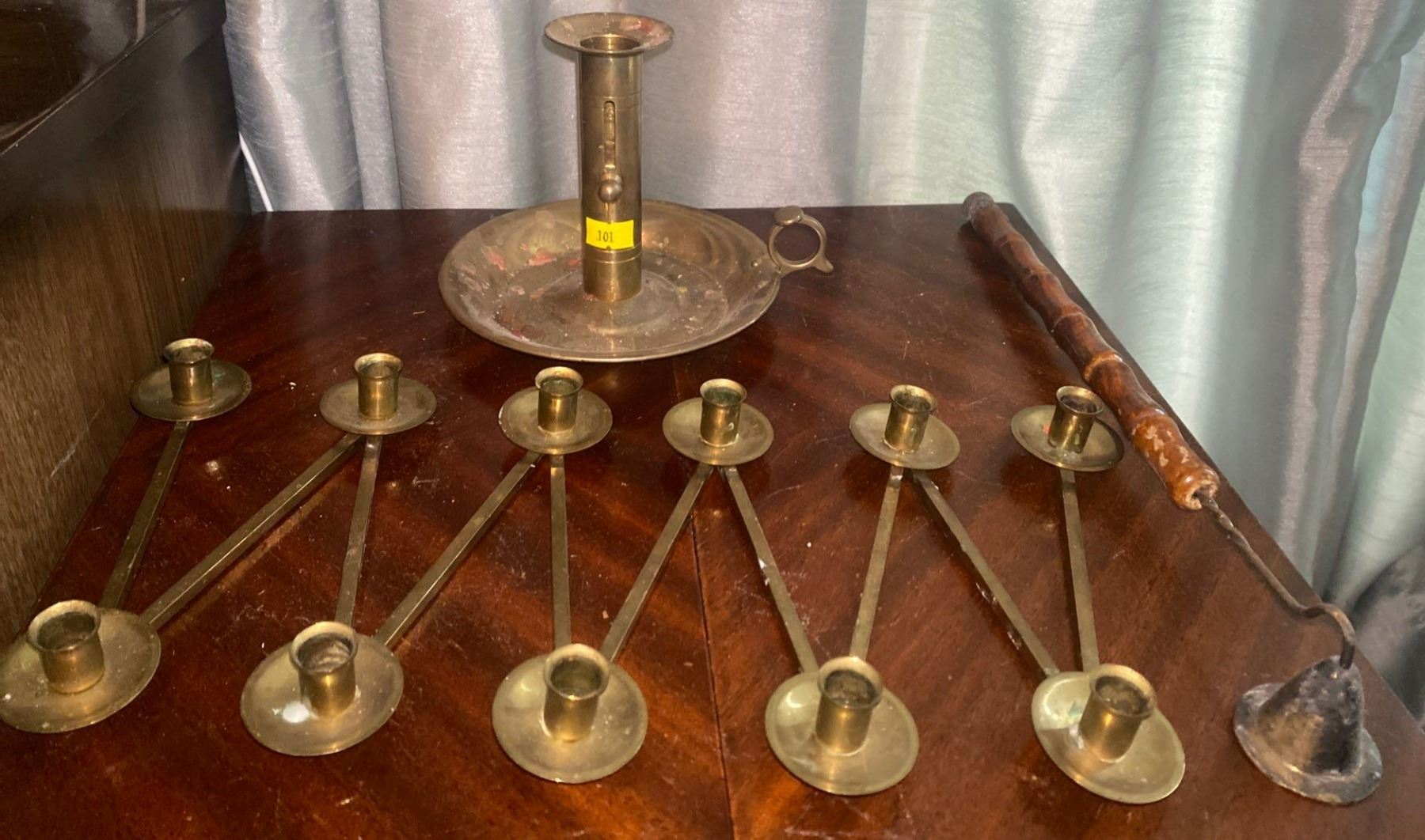 Antique Brass Candle Holder And Accordion Fold Candle Holder With Candle Snuffer