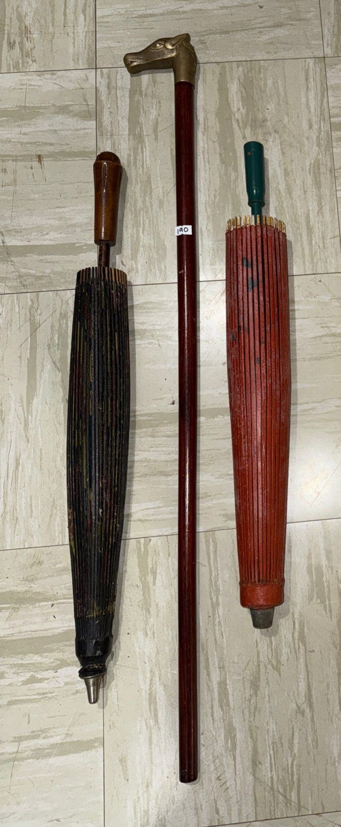Antique Brass Horse Head Cane And Antique Umbrellas