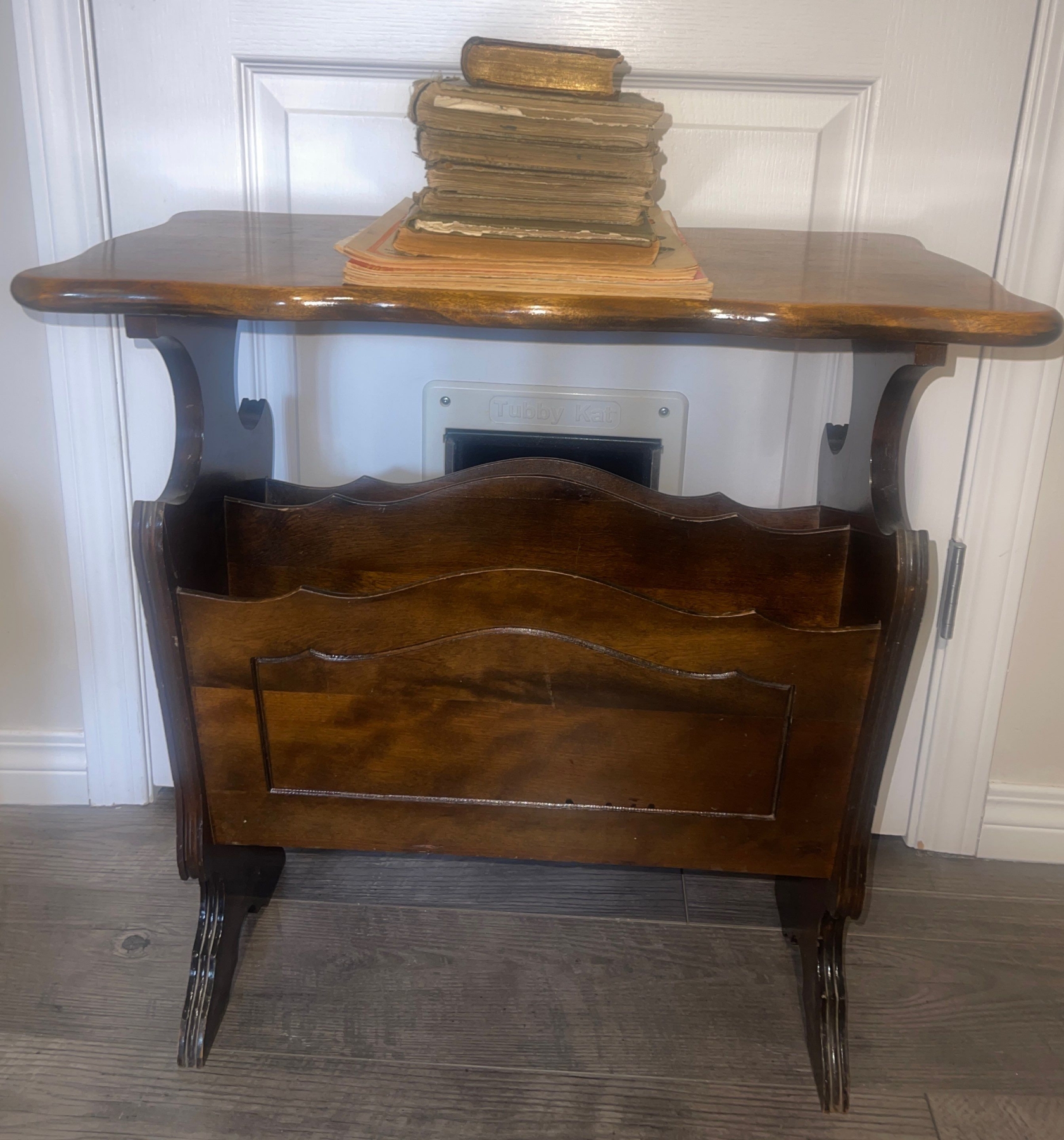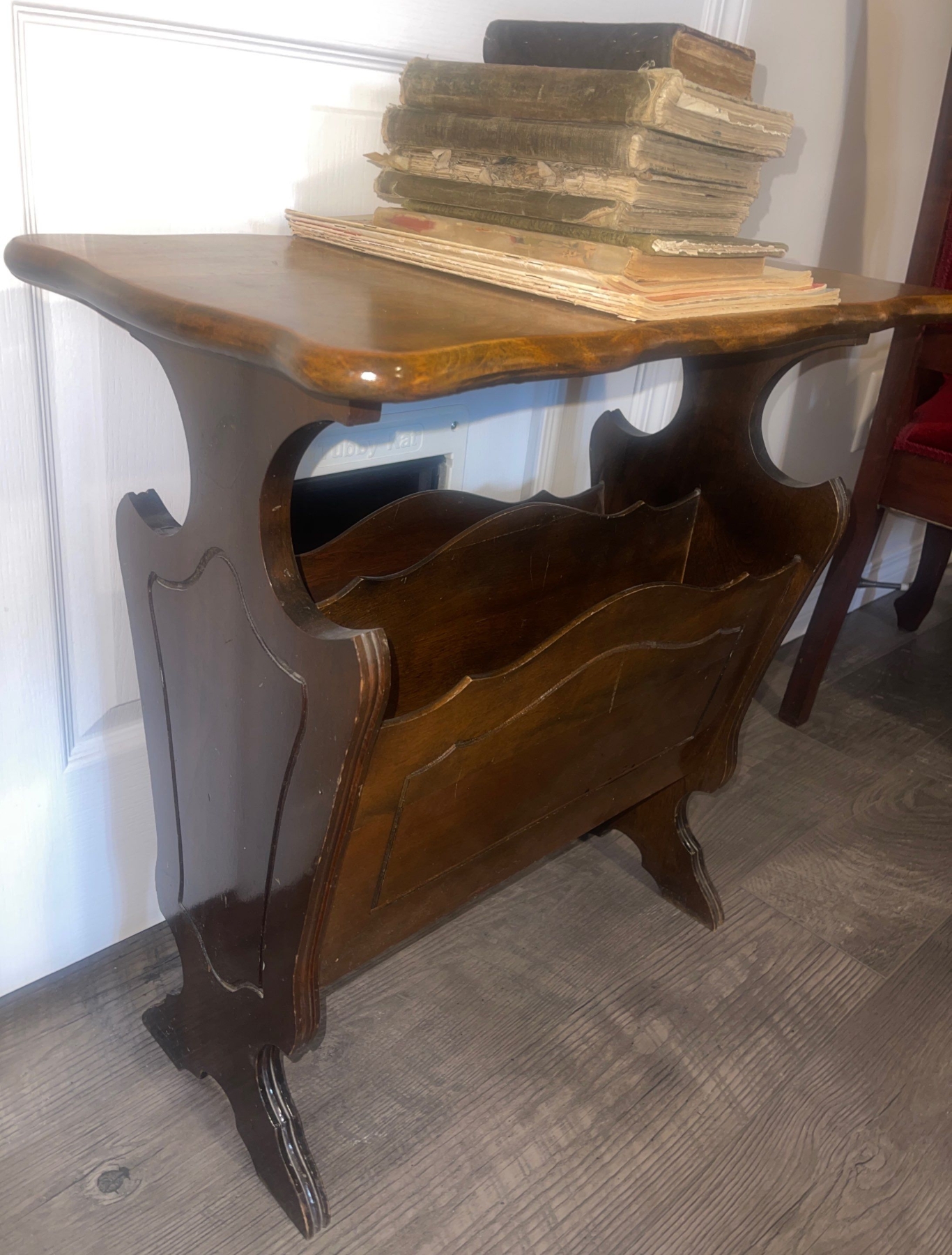 Antique British Walnut Chairside Magazine Rack w/ Antique Academic Reads 24x13x24