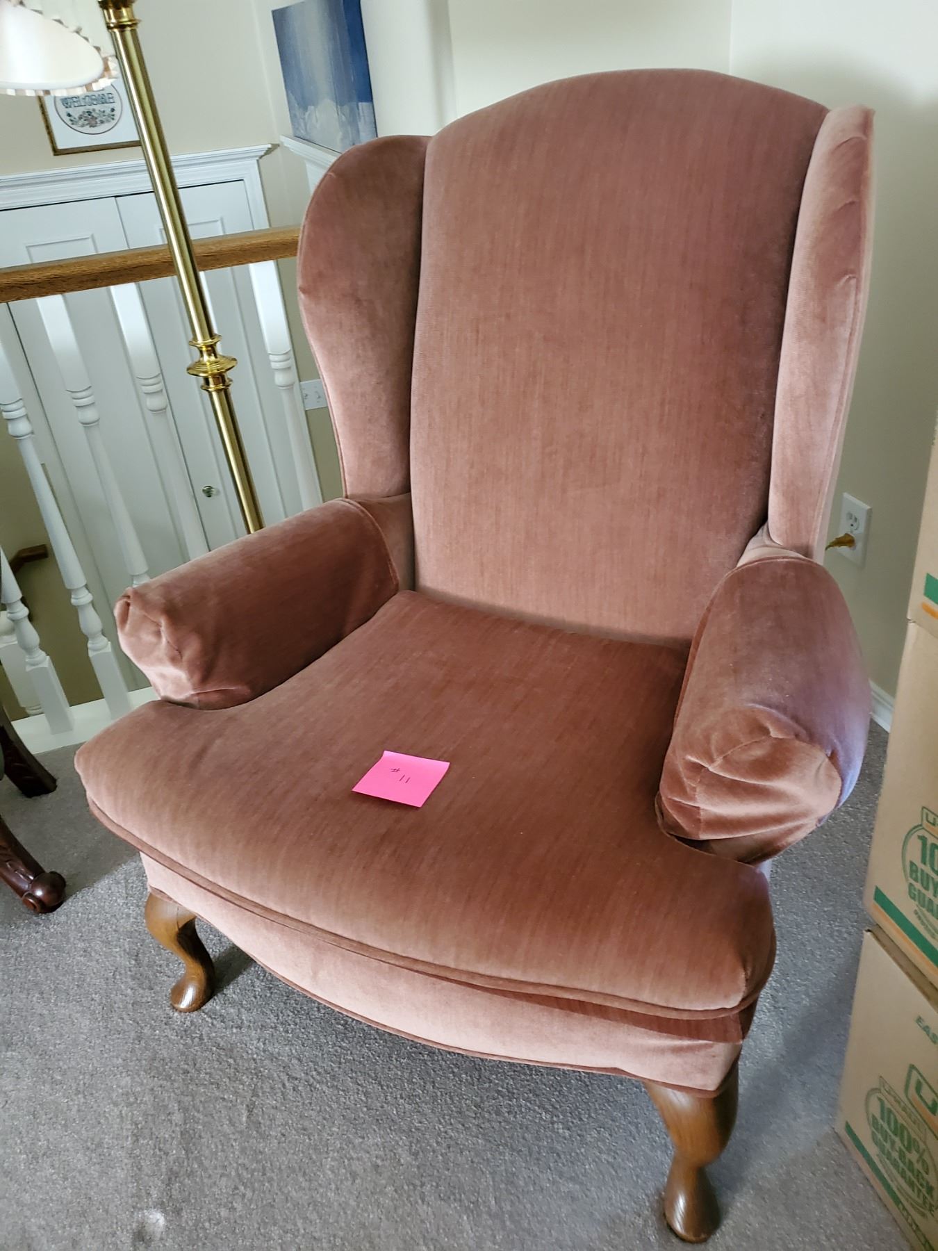 Antique CROEHLER Wing Back Rose Pink Velvet Chair 34.5" w x 31" d x 40.75" h