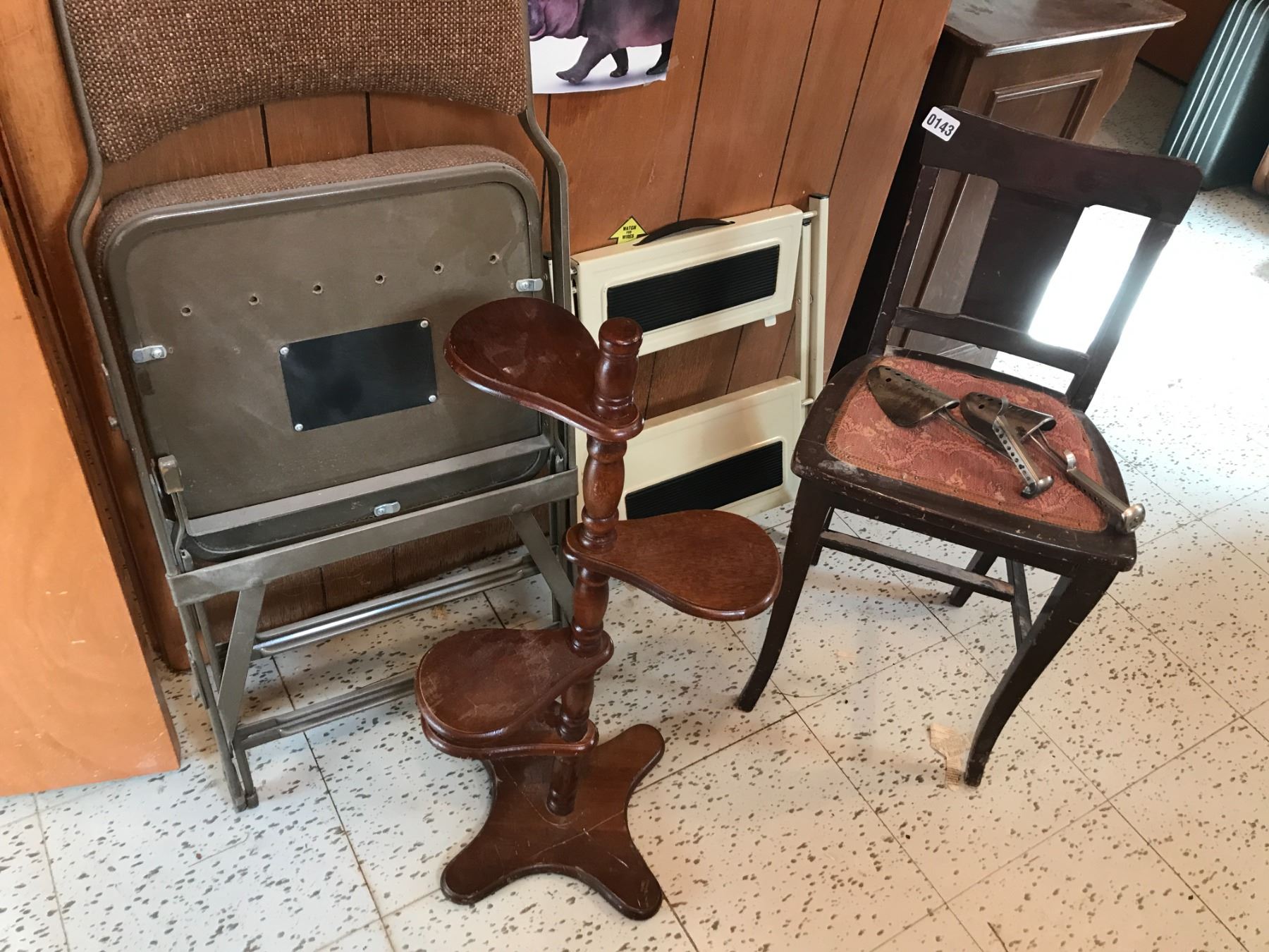 Antique Chair, Step Stool, Card Table & Plant Stand