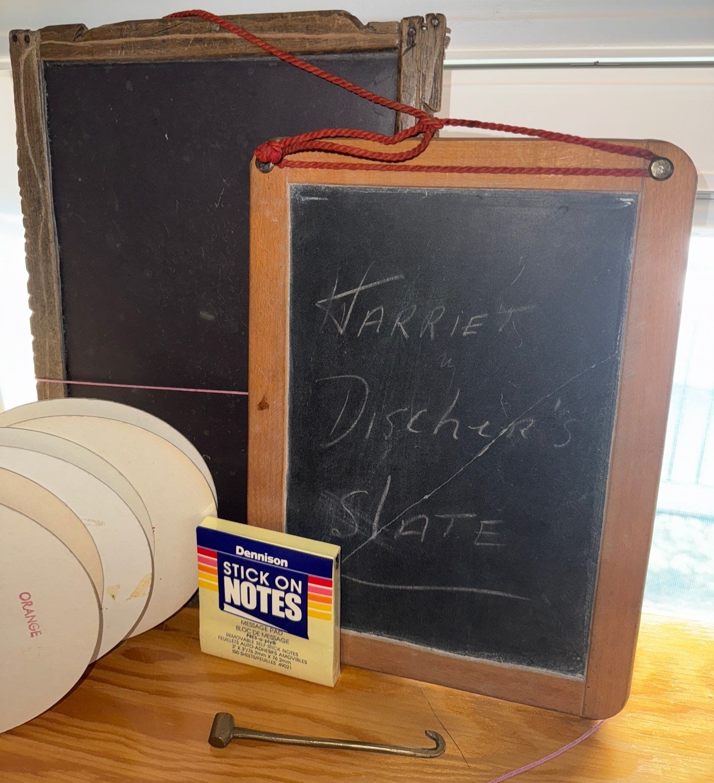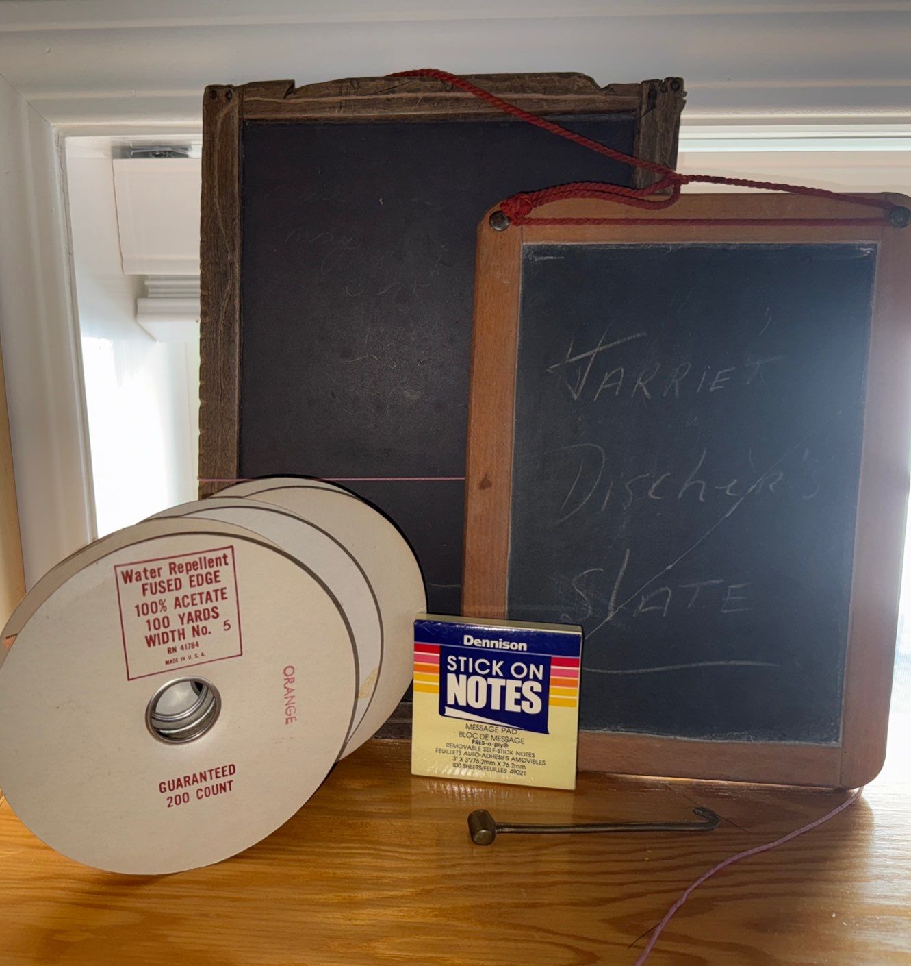 Antique Chalkboards 10T w/ Stick On Note Pad & Vintage Ribbon Reels