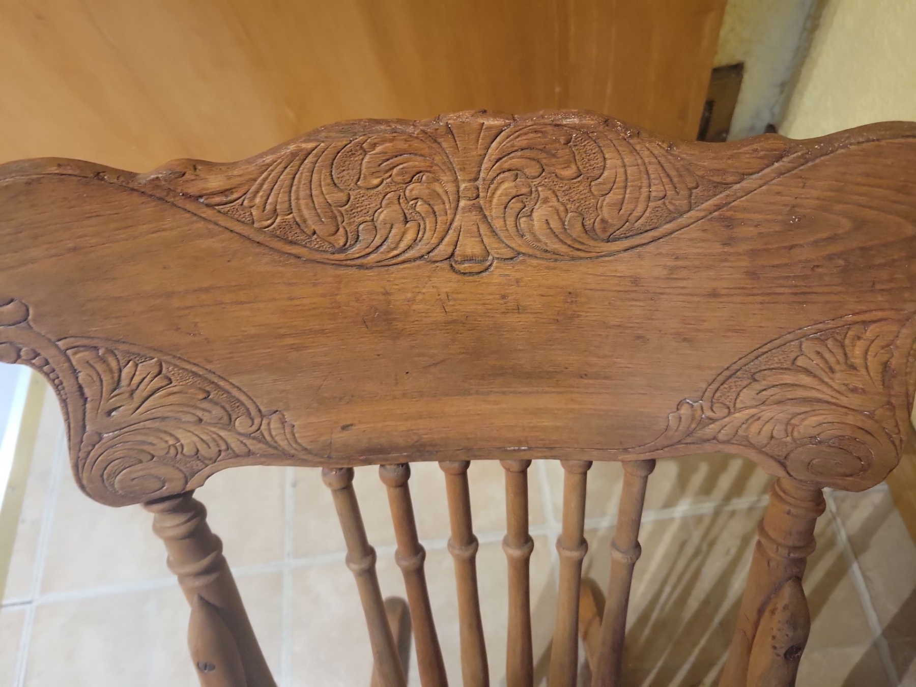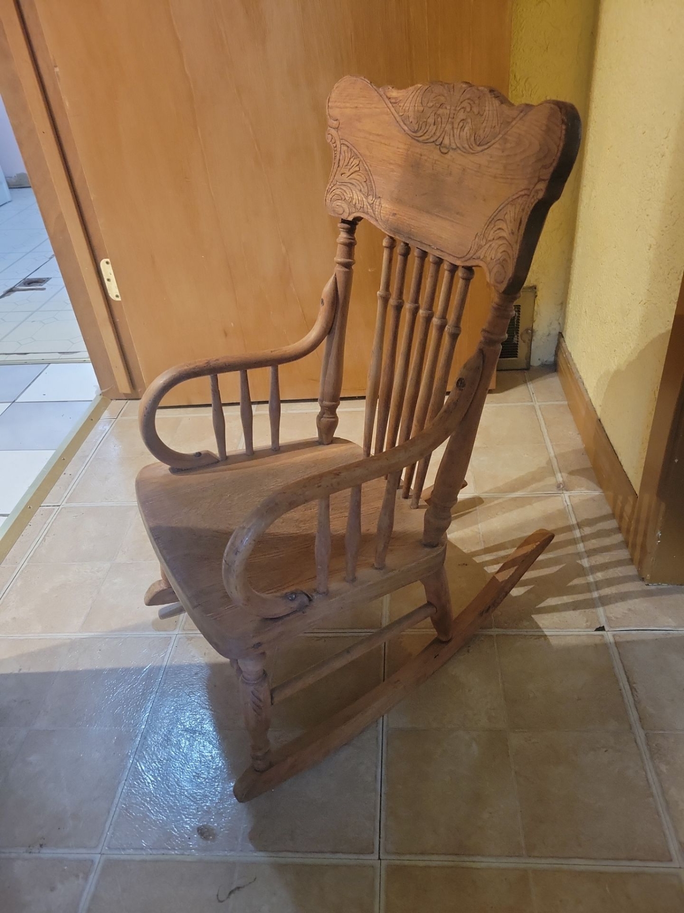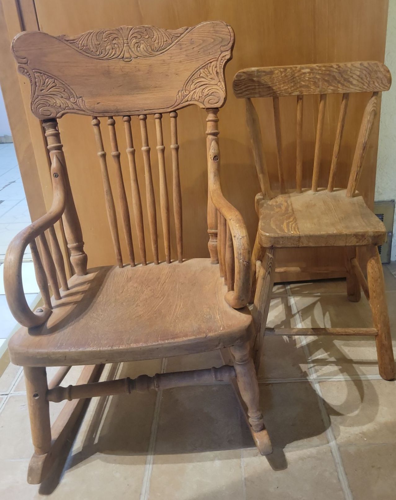 Antique Child Size Hand Carved Rocking Chair w/ Shakers Style Small Seat