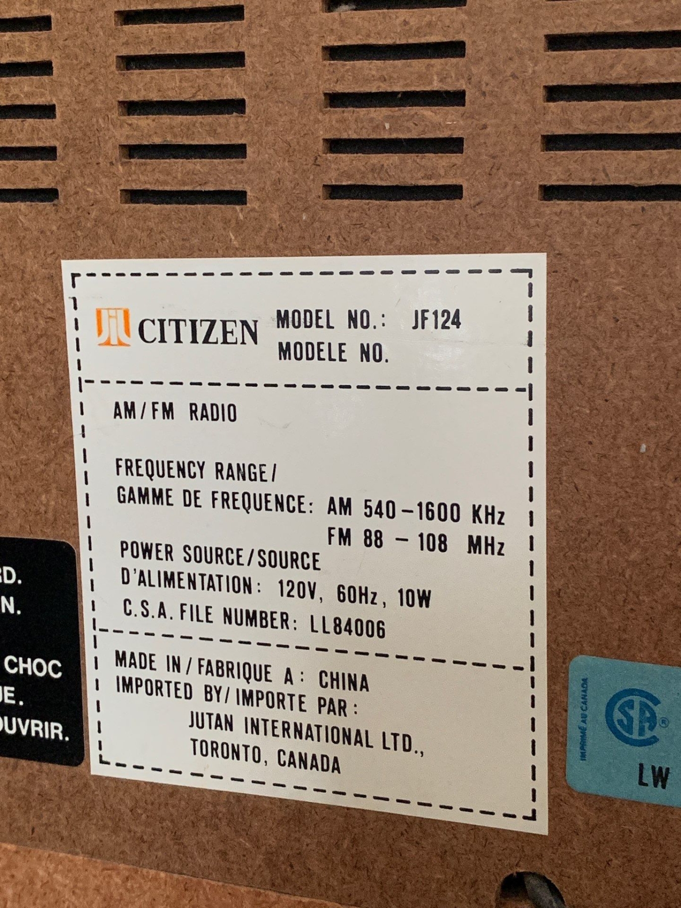 Antique Citizen Radio Mo.JF124
