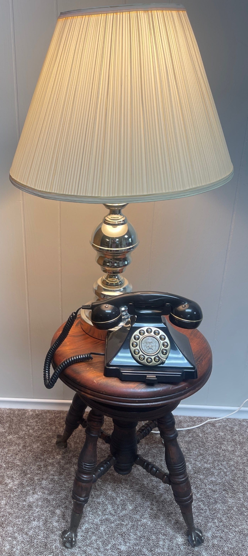 Antique Clawfoot Adjustable Piano Seat w/retro Phone & Lamp