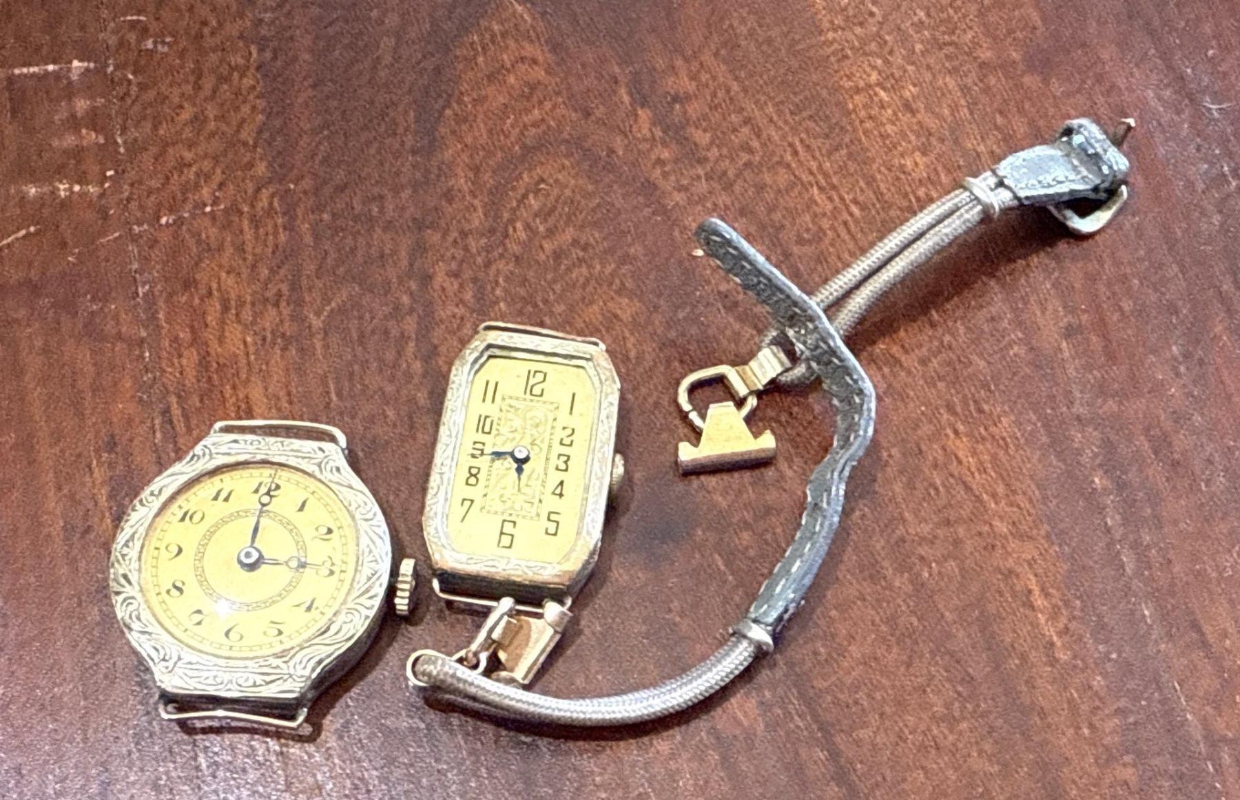 Antique Derby M.W.C. Co. Case, Canada 15 Jewels Swiss A530 A689 Pair of Watches, Damage, As Pictured