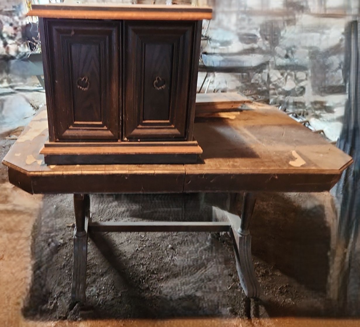 Both Pieces Scratched/ Need Refinishing, Top Loose on Table/ Easily Lifted Off, Very Heavy, Bring Assistance