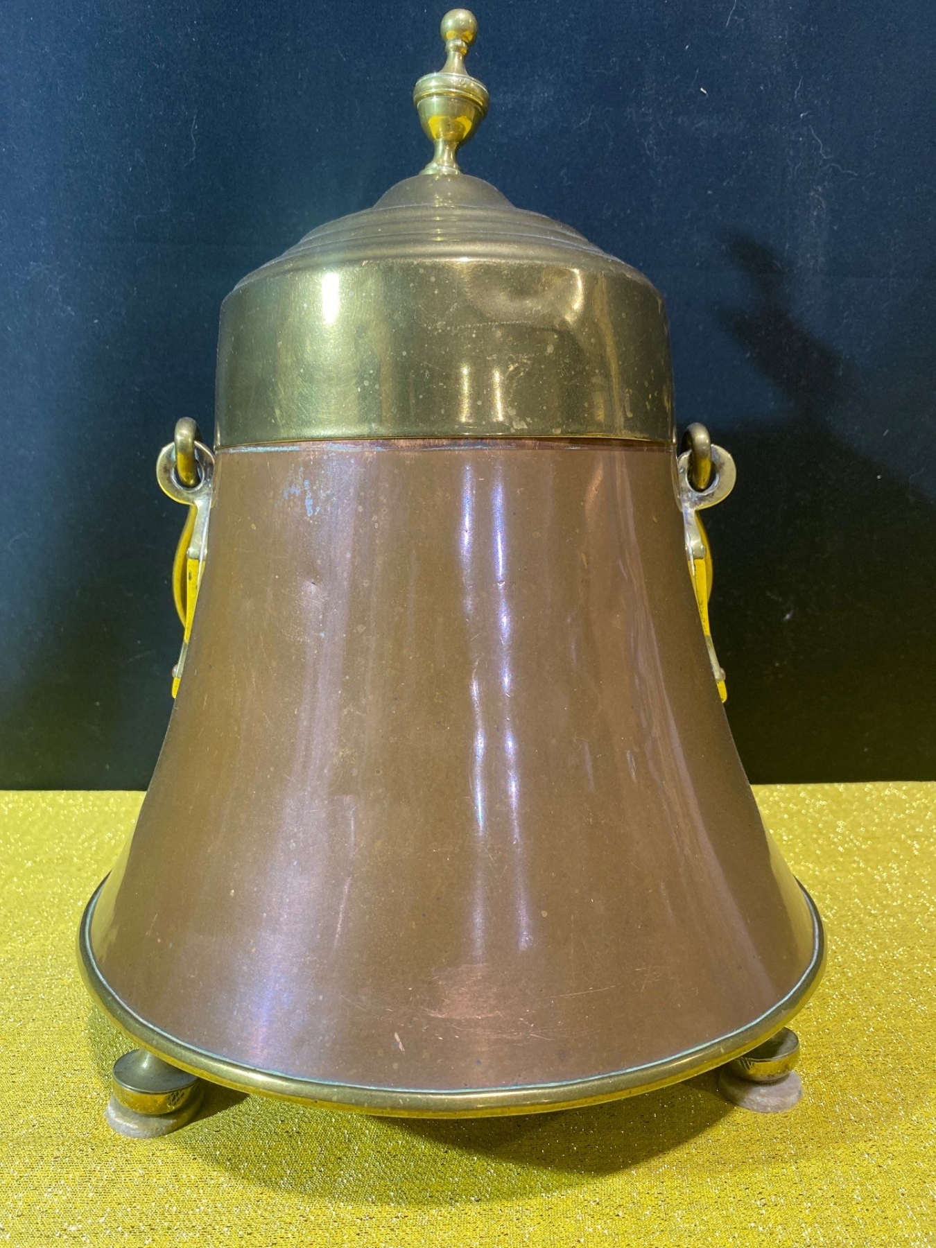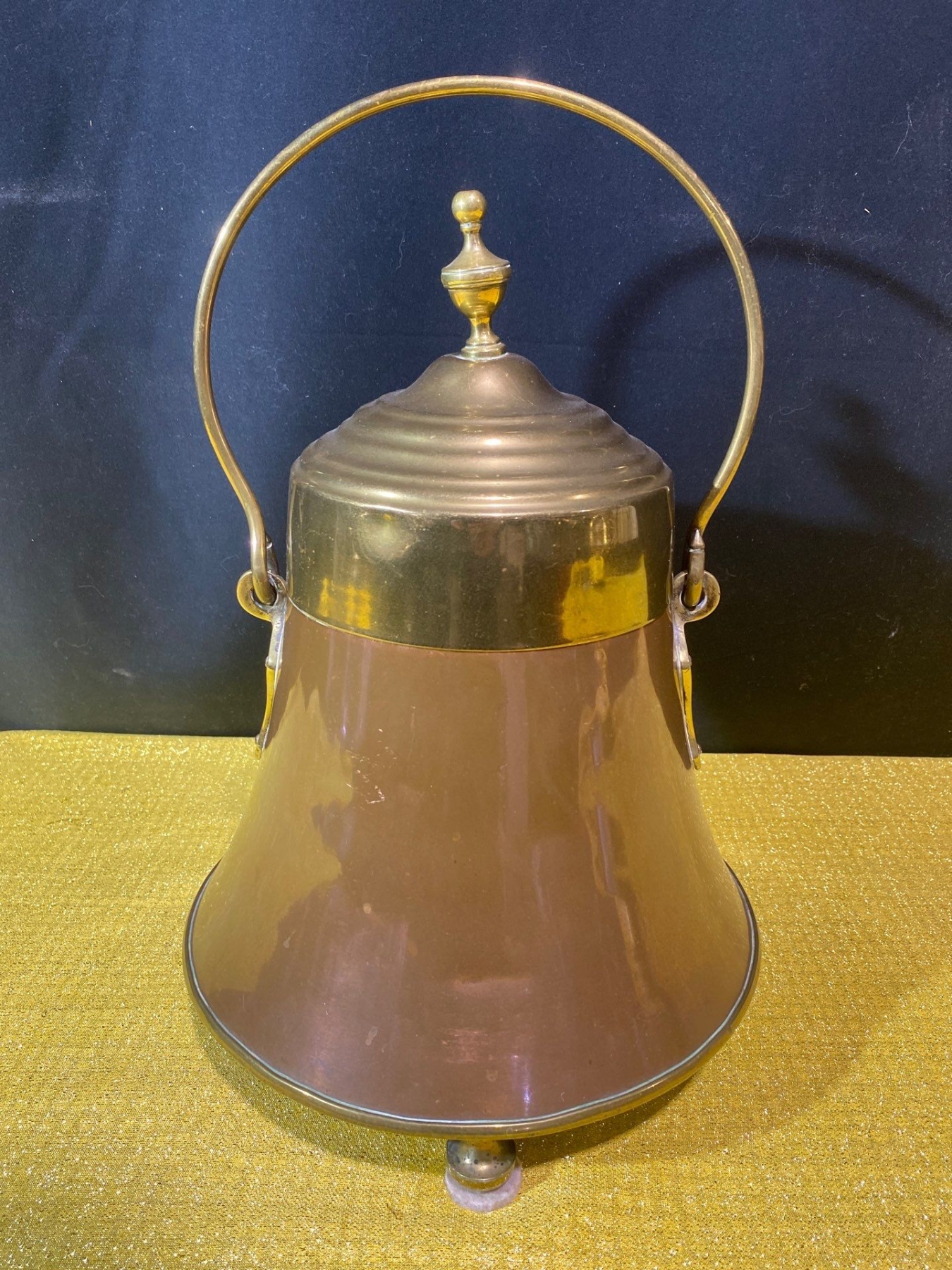A beautifully crafted antique Dutch ember pot, combining warm copper with brass accents. Designed for holding embers or small fires, this piece reflects traditional European craftsmanship and patina, making it both a functional antique and a charming decorative accent for any collection or hearth display.