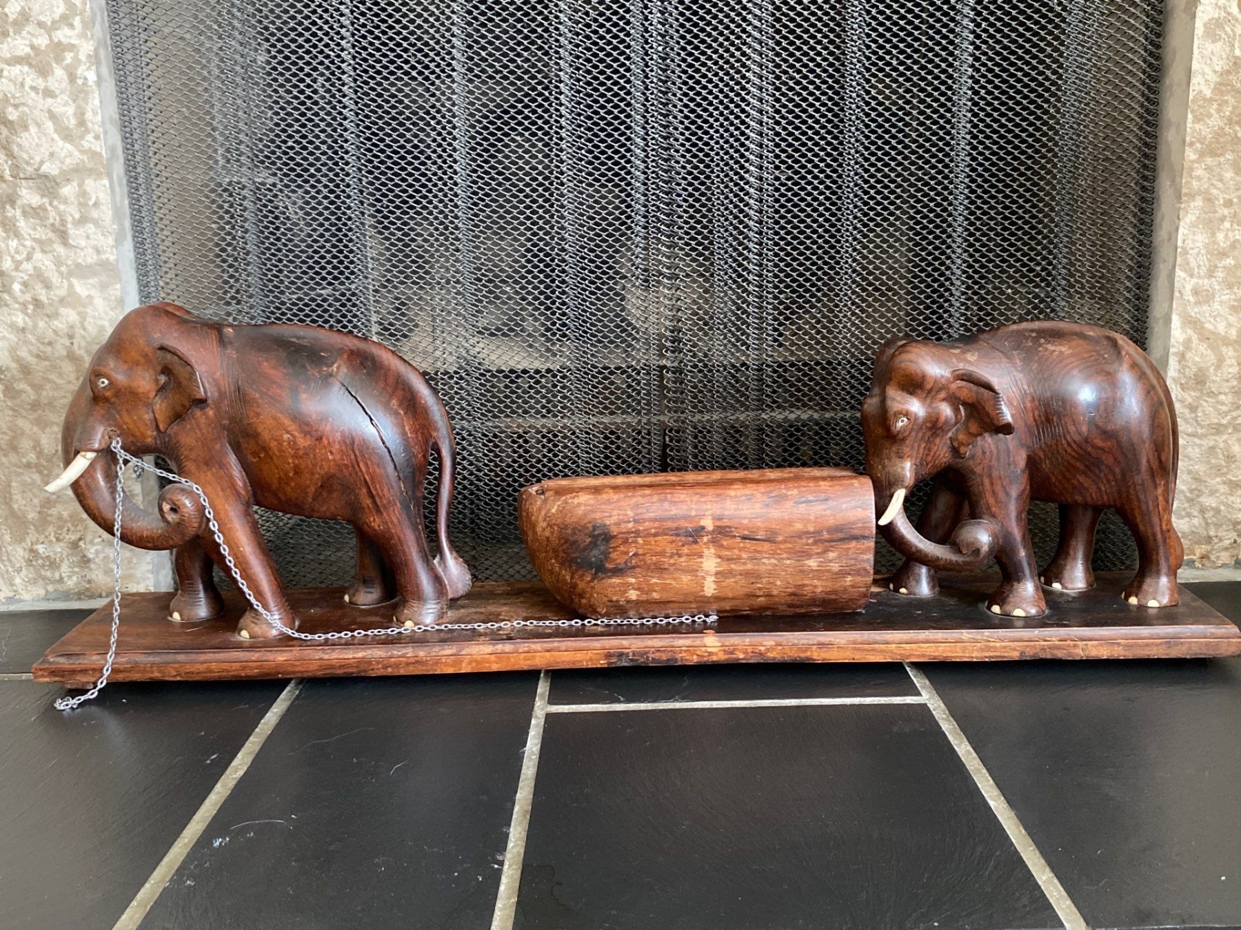 Antique Elephants At Work Carving Ivory Inlays 28L