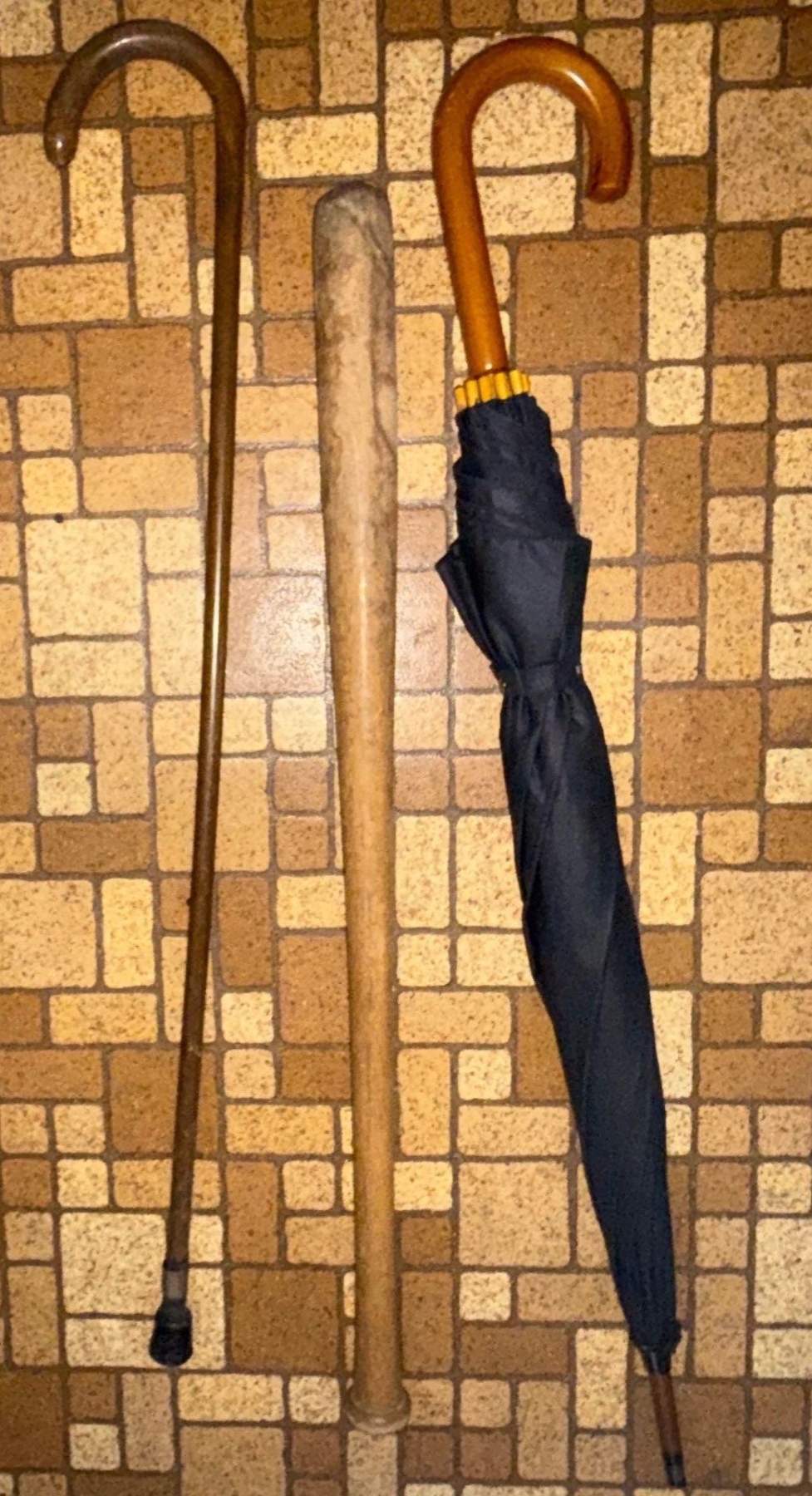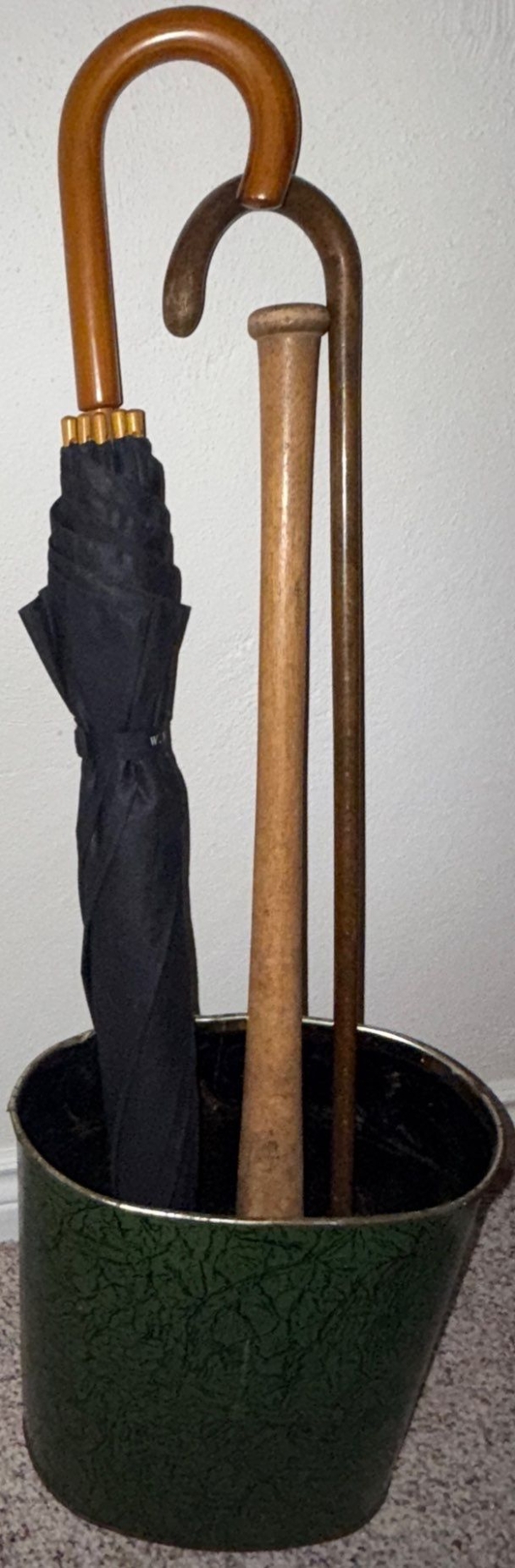 Antique GP Walking Length Blk Canopy Umbrella Bat Cane & Storage Stand
