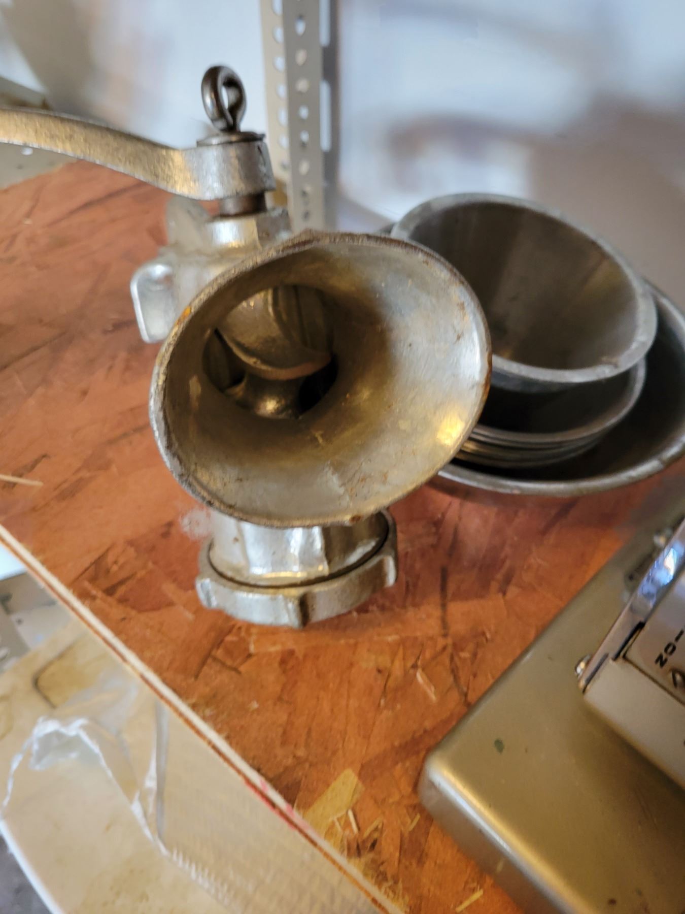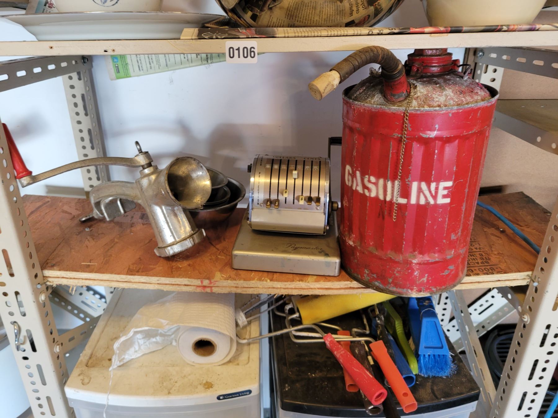 Antique Gas Can - Meat Grinder - Antique Paymaster - Pottery