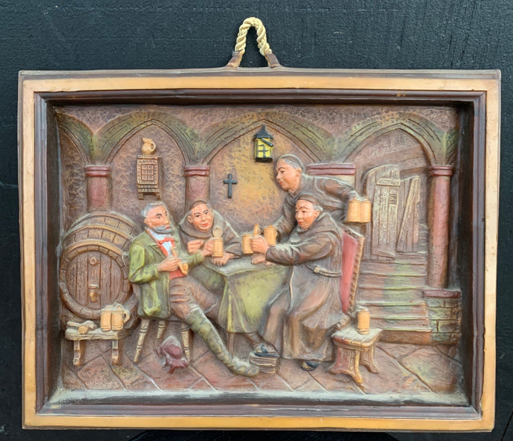 Antique Gunter Kerzen Wax Picture Pub Scene w/ Monk - 13.5W, 10T