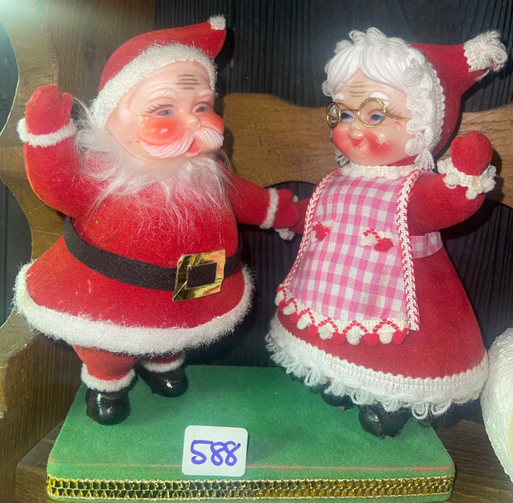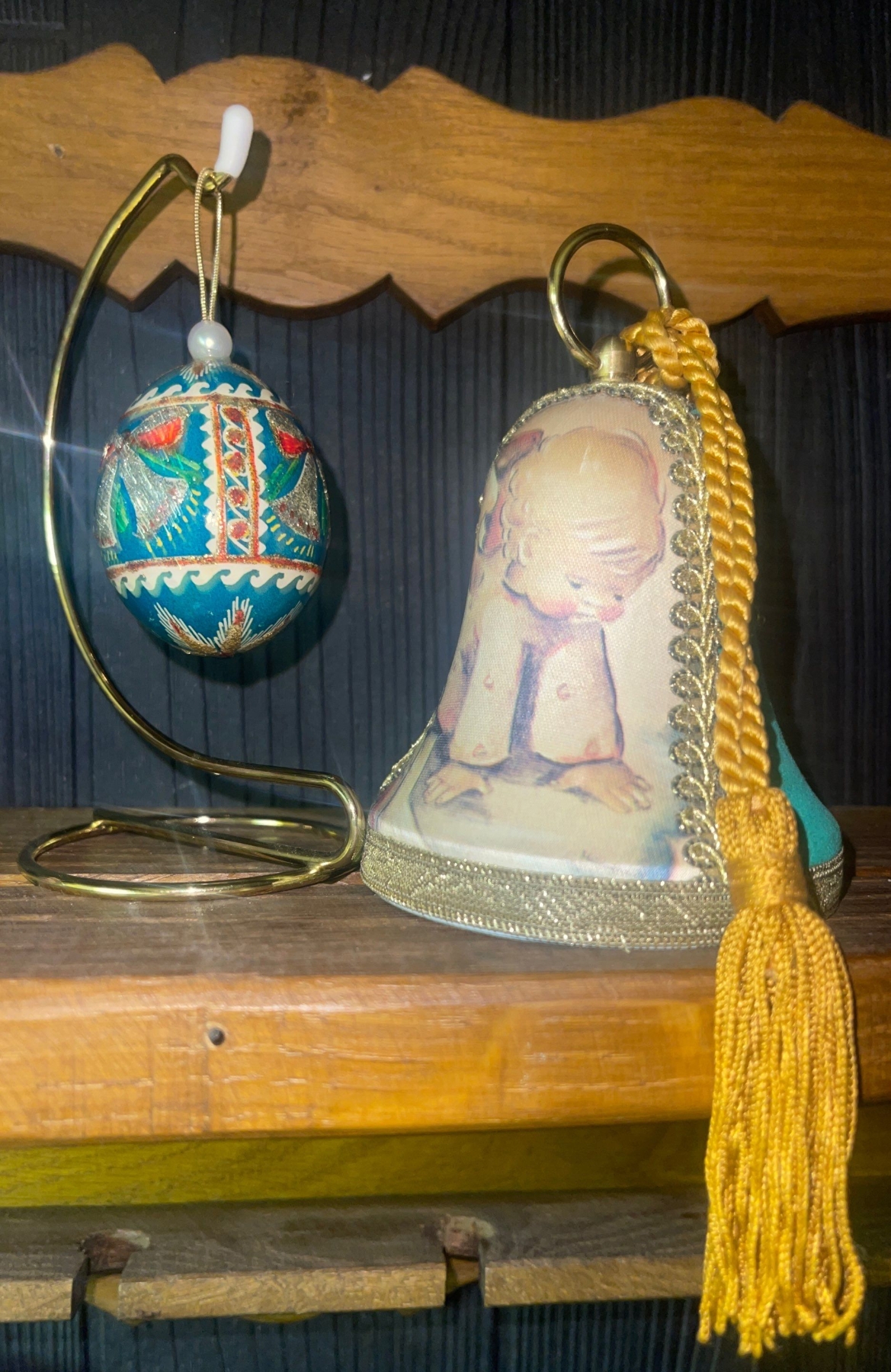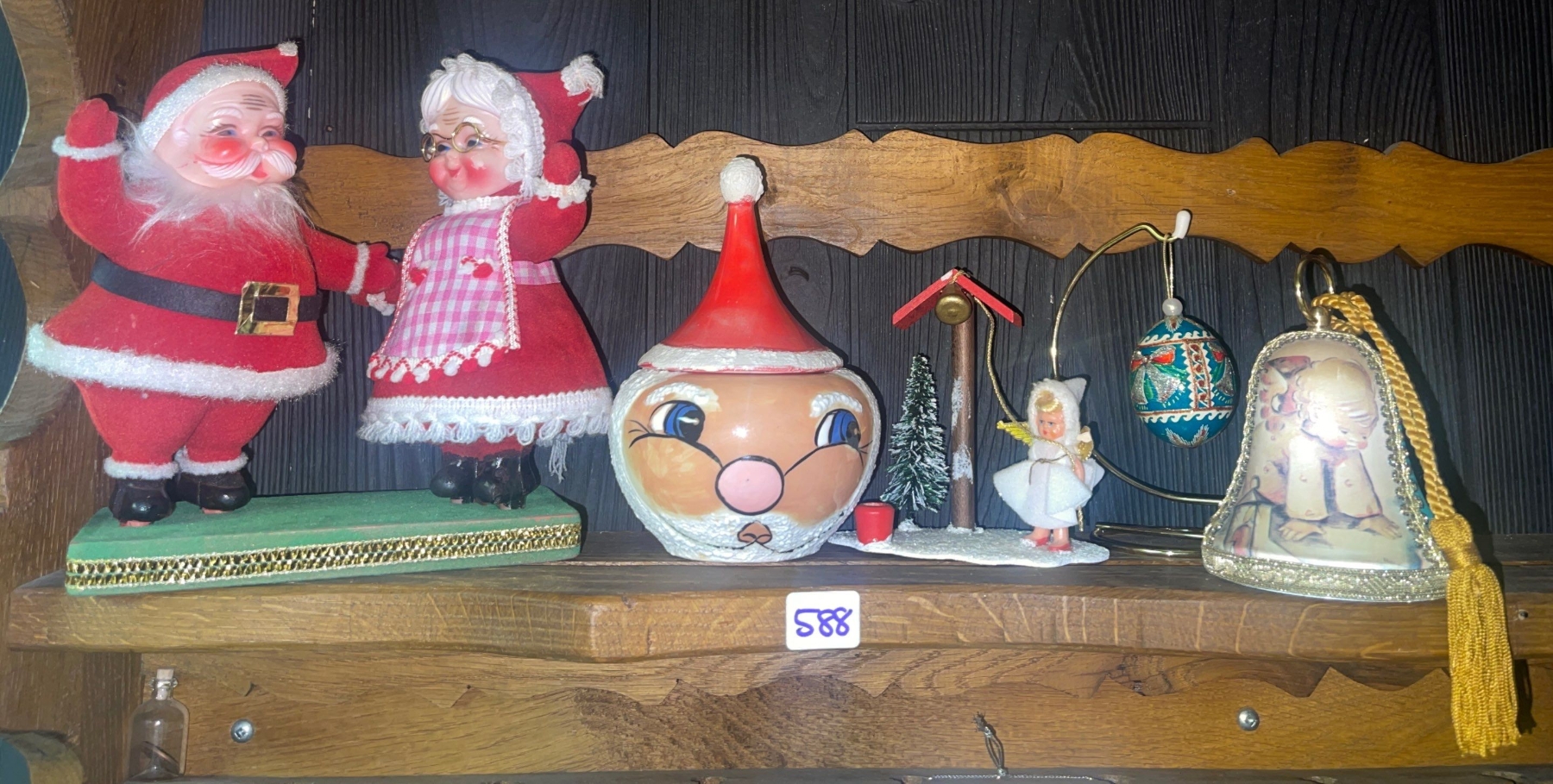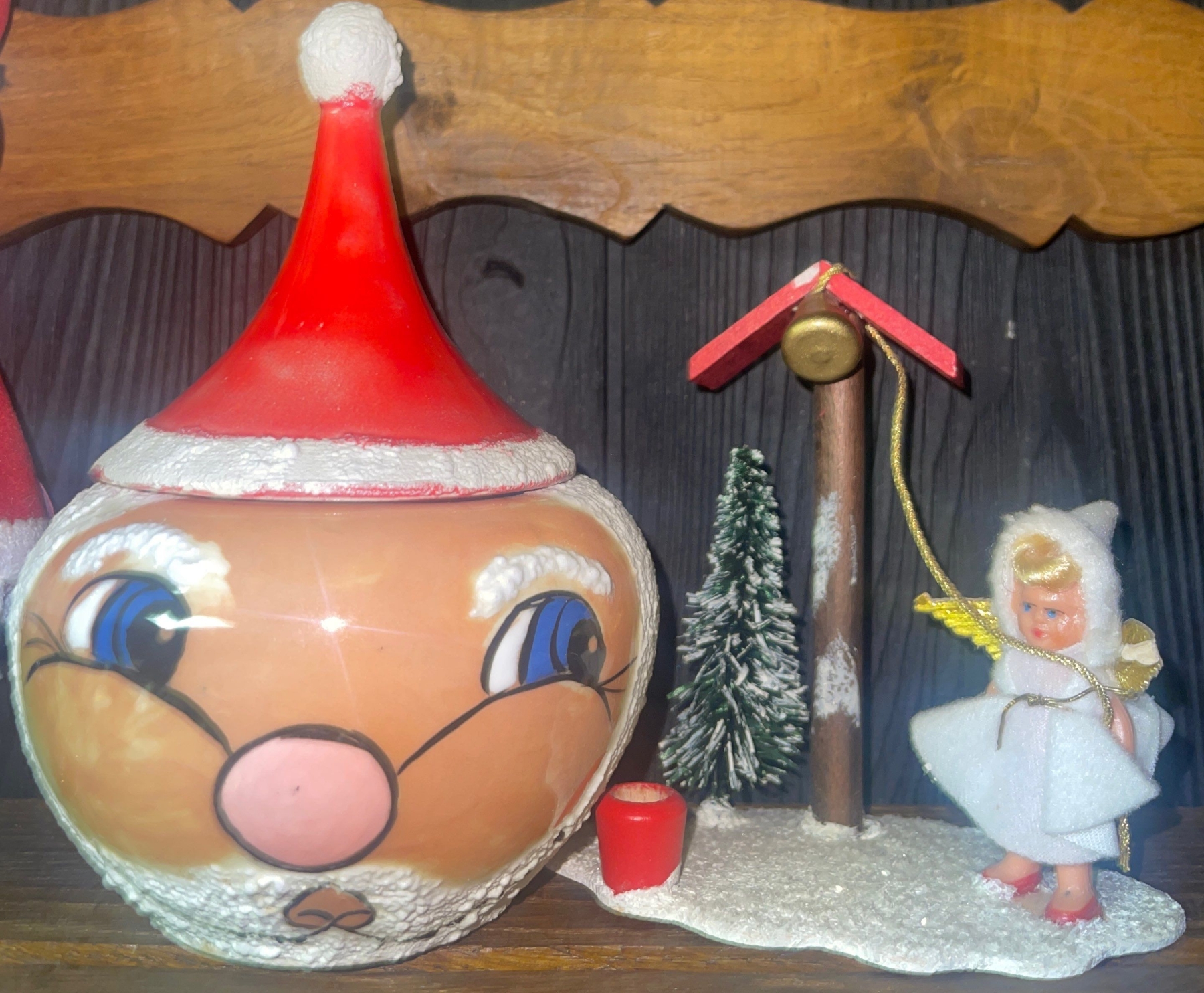 Antique Holiday Novelties Santa Trinket Box Velvet Wind UP Music Box/Bell w/ Hand Painted Egg & More