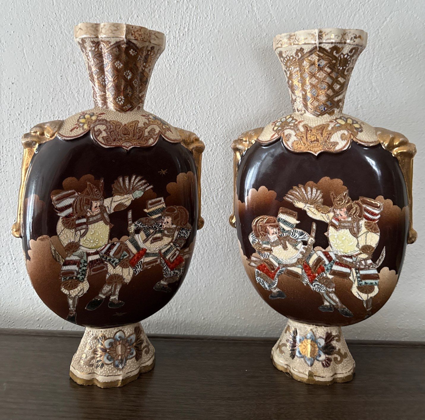 Antique Japanese Satsuma Vases 11T - Very Heavy