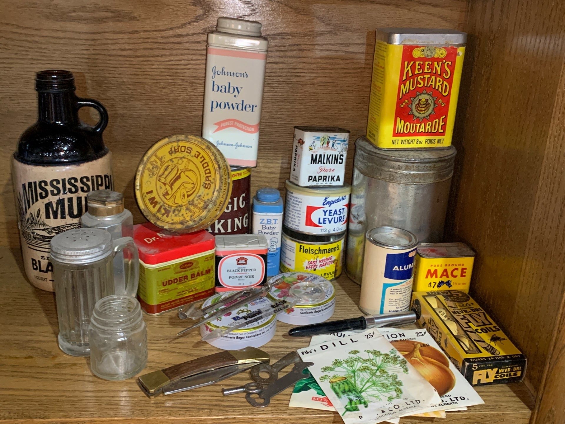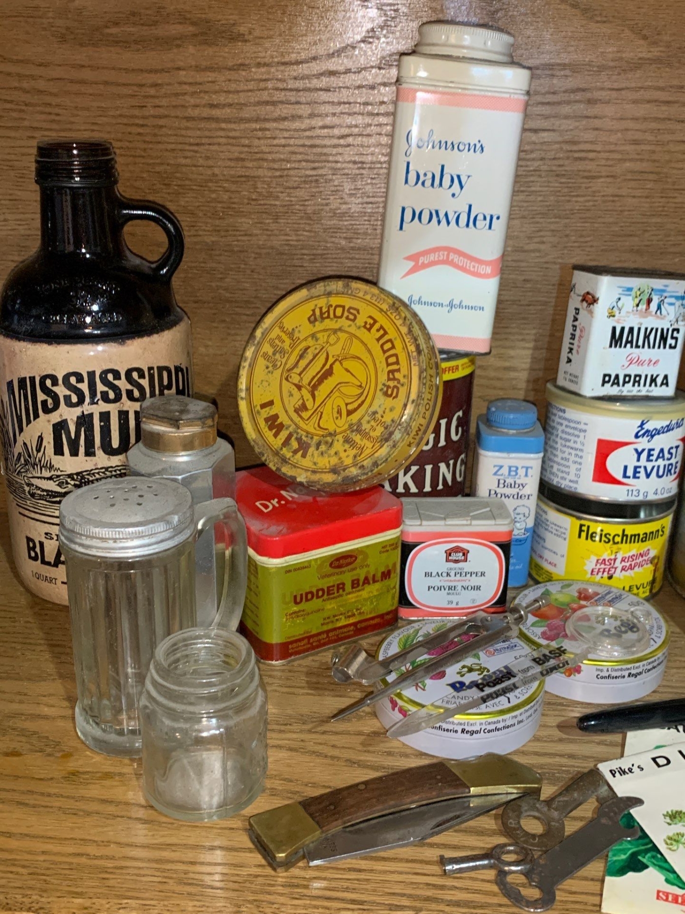 Antique Kitchen Collectables - Pocket Knife Moonshine Canteen & More