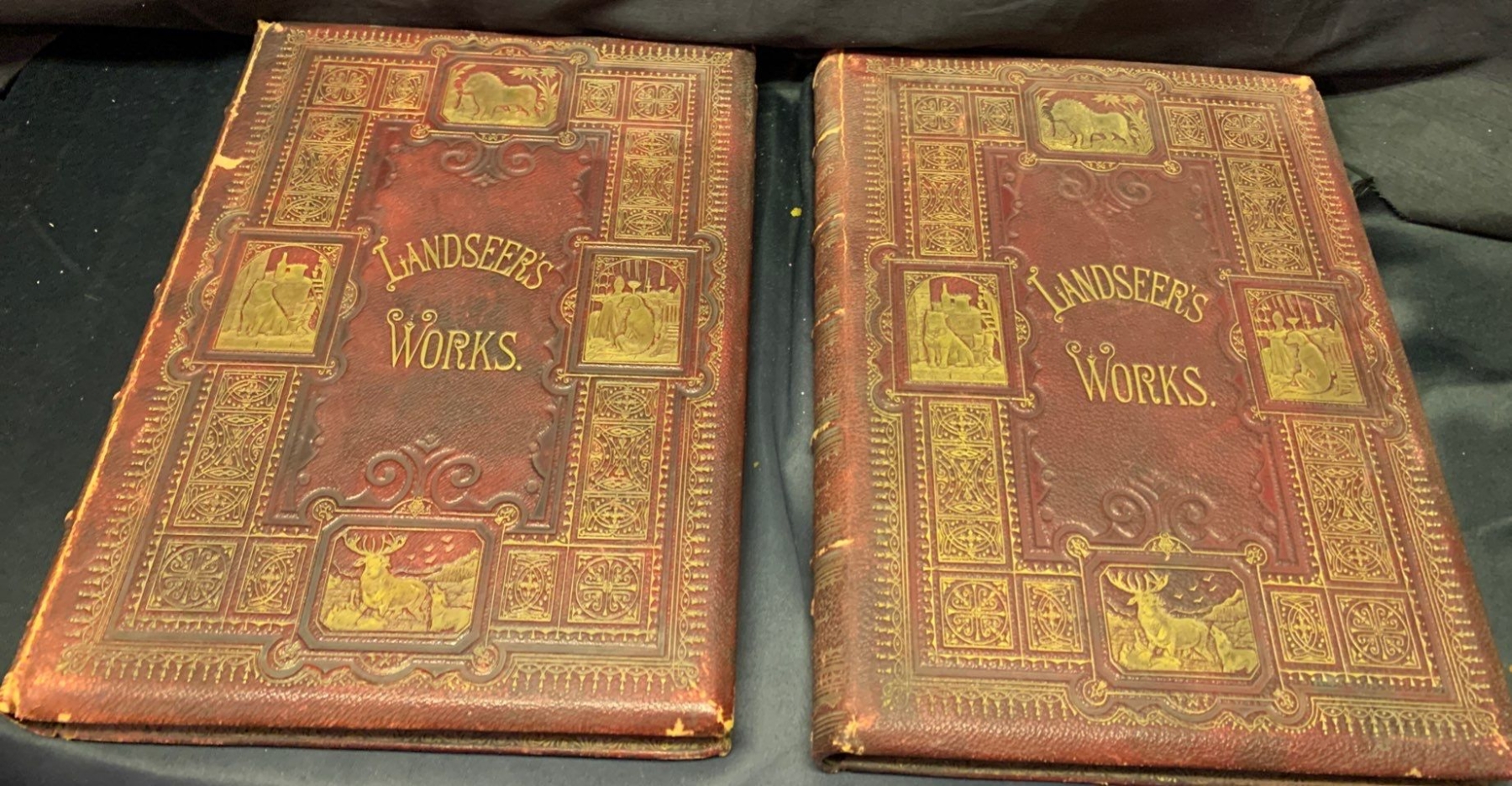 Antique 'Landseer's Works' Book Duo - Illustrated (Damaged Cover)